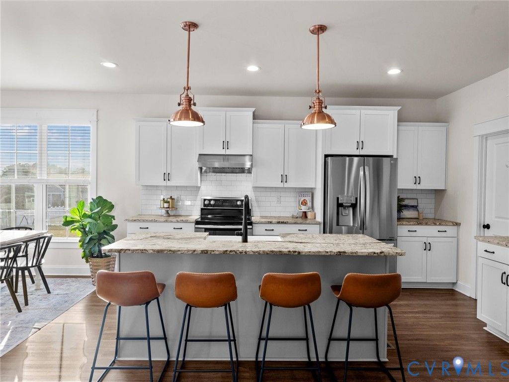 This beautifully upgraded home combines luxury, comfort, and community living in the sought-after Collington subdivision. Enjoy access to top-tier neighborhood amenities, including walking trails, a clubhouse, pool, and year-round social events "” all just minutes from shopping, dining, and everyday conveniences. A large covered front porch welcomes you home and sets the tone for relaxed, everyday living. Step inside to a grand two-story foyer and an open, airy floor plan designed for both entertaining and daily comfort. The main level features a highly desirable first-floor primary suite, complete with two walk-in closets and an en-suite, along with bright, inviting living spaces throughout. The kitchen serves as the heart of the home with leathered granite countertops, white cabinetry, a walk-in pantry, and a large island, opening seamlessly to a cozy breakfast nook and family room with gas fireplace. Just off the breakfast nook, a rear deck provides the perfect space for morning coffee or evening gatherings. Upstairs, you'll find four additional bedrooms and two full baths, including a Jack-and-Jill layout. One of these bedrooms is a versatile space that can serve as a fifth bedroom, bonus room, or media room, and there's also a walk-in attic providing plenty of storage. Additional highlights include an underground electric fence, irrigation system, energy-efficient features, and thoughtful updates throughout, making this home truly move-in ready. Beautifully maintained and located in one of Midlothian's most loved communities "” this Collington home checks all the boxes.