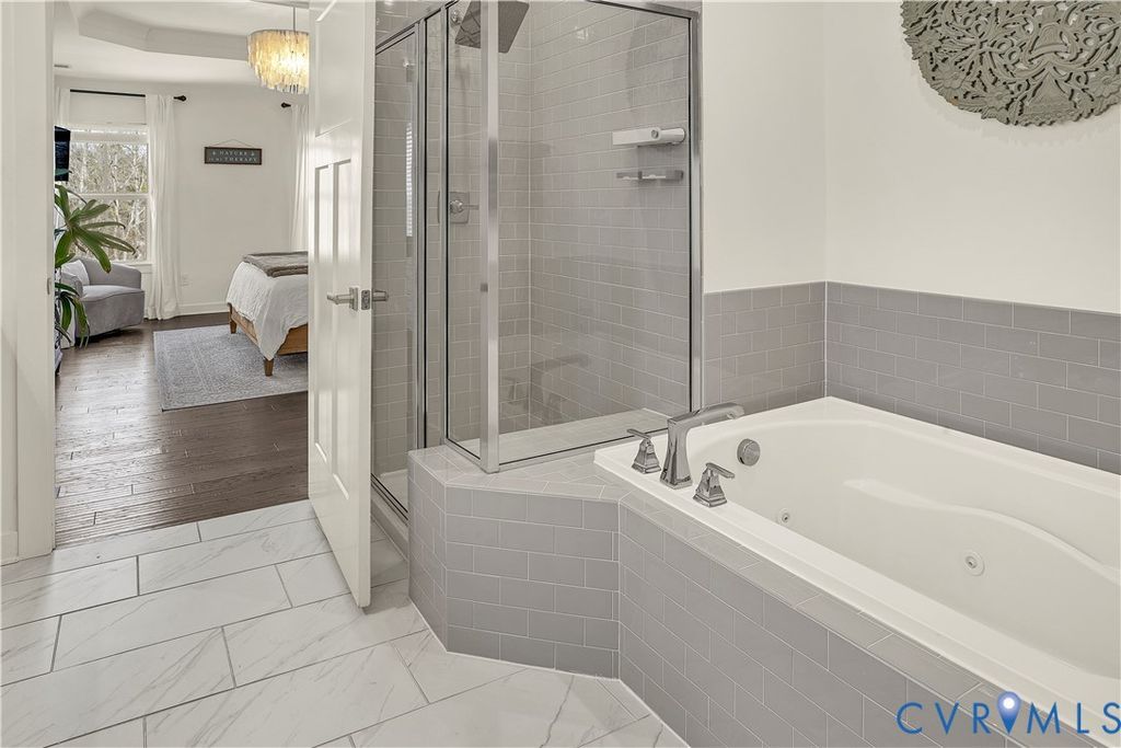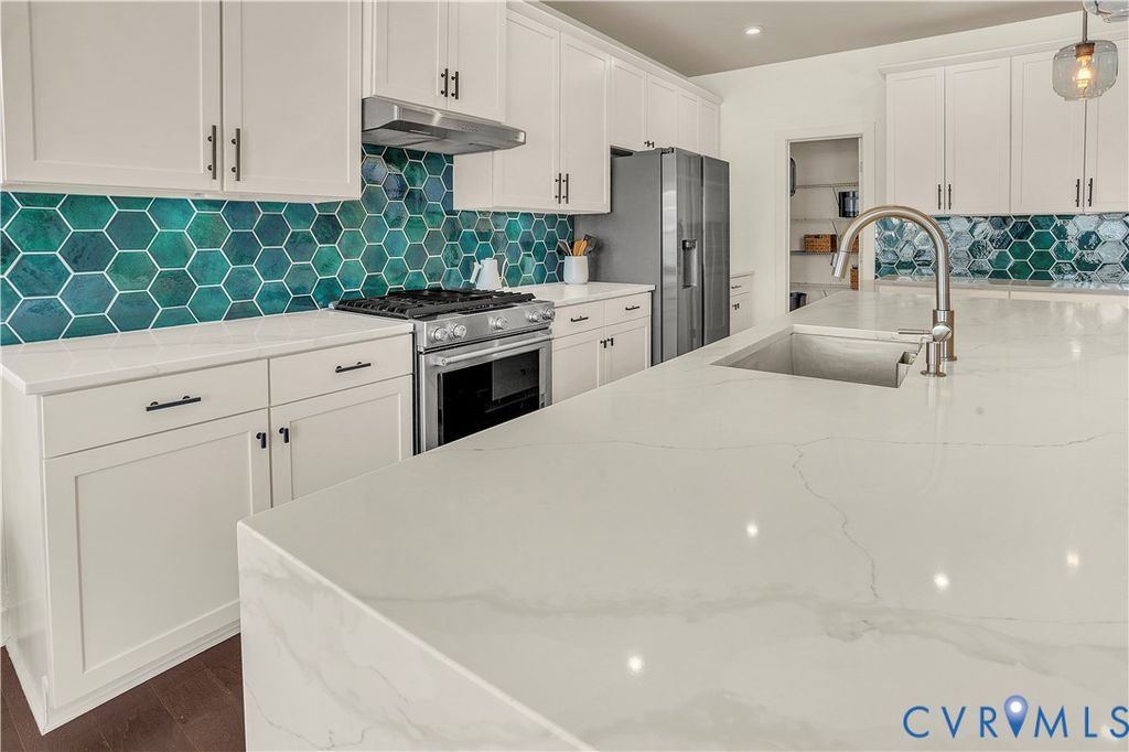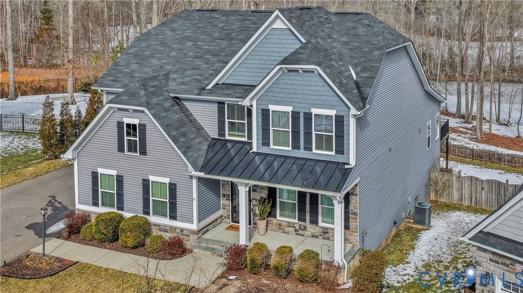 SPECTACULAR Swift Creek Reservoir WATERFRONT Home with Walk-to Water access in Midlothian! Outstanding WATERFRONT views from first floor! Fantastic 4-bedroom, 2.1 bath home in one of Midlothian's most sought after communities of Cambria Cove! Conveniently located and easily enjoy everything Midlothian has to offer! Spacious lake front home with open floor plan! Large eat-in kitchen with an enormous (10' x 3'9") quartz waterfall edge island with matching kitchen countertops and an abundance of cabinetry. Stainless Steel appliances with gas cooking range. Wood flooring throughout first floor. Office/study just off the foyer with built-in soft close cabinets with wainscoted walls. The Kitchen flows seamlessly into a relaxing family room (wired sound speakers) with gas fireplace with endless water views. Dining area opens up to generous outdoor deck with wired sound speaker for entertaining. 1st floor Primary bedroom with en suite including walk-in shower, jetted tub and walk-in closet. Includes a corner, wall hung TV. Fabulous water and nature views from the Primary bedroom, even spotting a bald eagle from time to time! Upstairs, you'll find 3 generously sized bedrooms, one with walk-in closet and one with fabulous lake views. Large, afternoon sun-filled family, recreation or kids room just up the top of the stairwell. Unfinished, mechanical room with ample storage. Irrigation system ready for use on front and front sides of yard. Large garage with overhead storage racks installed. 30 AMP Generator Outlet in garage and is ready for your generator when the lights go out. A stamped concrete walk-way leads out back to a large fenced-in backyard complemented by a 19' x 14' screened-in porch with ceiling fan for enjoying the outdoors and adjacent to a stamped concrete 11' x 11' patio. HOA provides crushed stone walking/jogging trails along the water, Splash pad and Playgrounds for the kids along with trash removal and recycling. DON'T FORGET TO LOOK AT THE 3-D VIRTUAL TOUR!