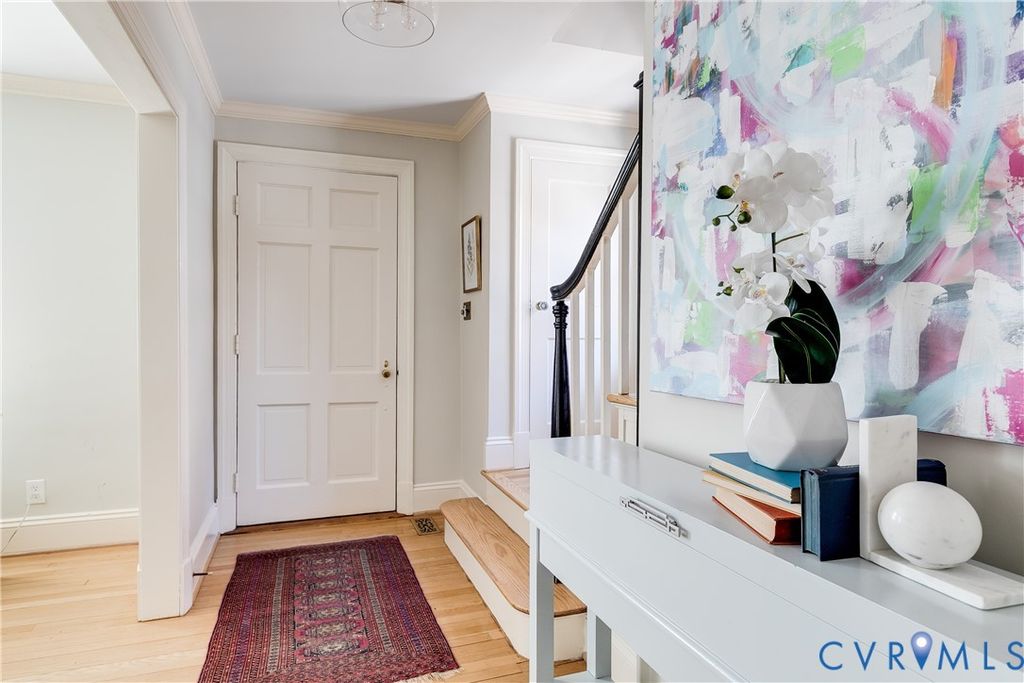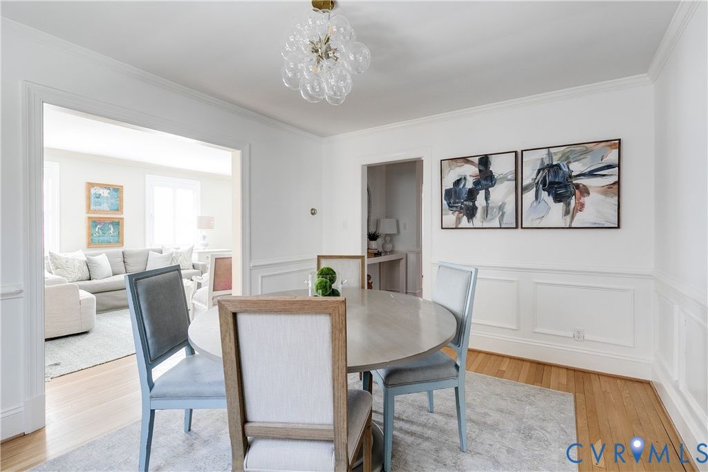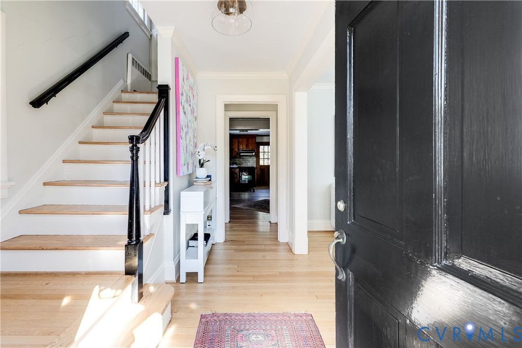 Welcome to 5502 Grove Avenue in Glenburnie! This classic Colonial is located just blocks from Libbie and Grove, right in the heart of the Near West End. Step into the welcoming foyer, where recently refinished light wood floors create a bright, airy feel throughout the main level. Off the foyer is a spacious living room featuring a wood-burning fireplace, and dental moulding. An adjoining office provides an ideal work-from-home space. The formal dining room showcases beautiful chair rail molding, adding to the home's classic elegance. The rear of the home opens to a generous family room and kitchen area, offering wonderful everyday living and entertaining space. A convenient side entrance from the shared driveway leads into an adjacent sitting room that could serve as additional living space or offer potential for kitchen expansion. A convenient half bath completes the first floor. Upstairs, you'll find a large primary bedroom with an en-suite bath, two additional bedrooms, and a full hallway bathroom. The third floor features a finished recreation room or potential fourth bedroom, offering flexible living options. The home also includes a large unfinished basement b-dry system laundry and ample storage. Outside, enjoy a covered back porch, bluestone patio, and a nicely sized yard "” all in an incredibly walkable and sought-after location.