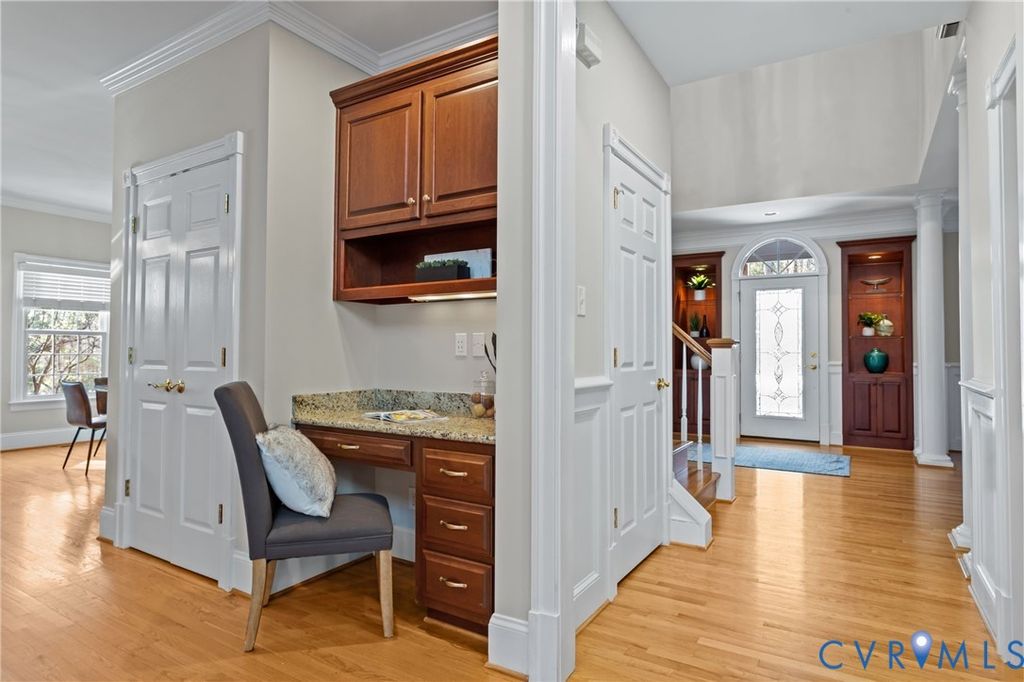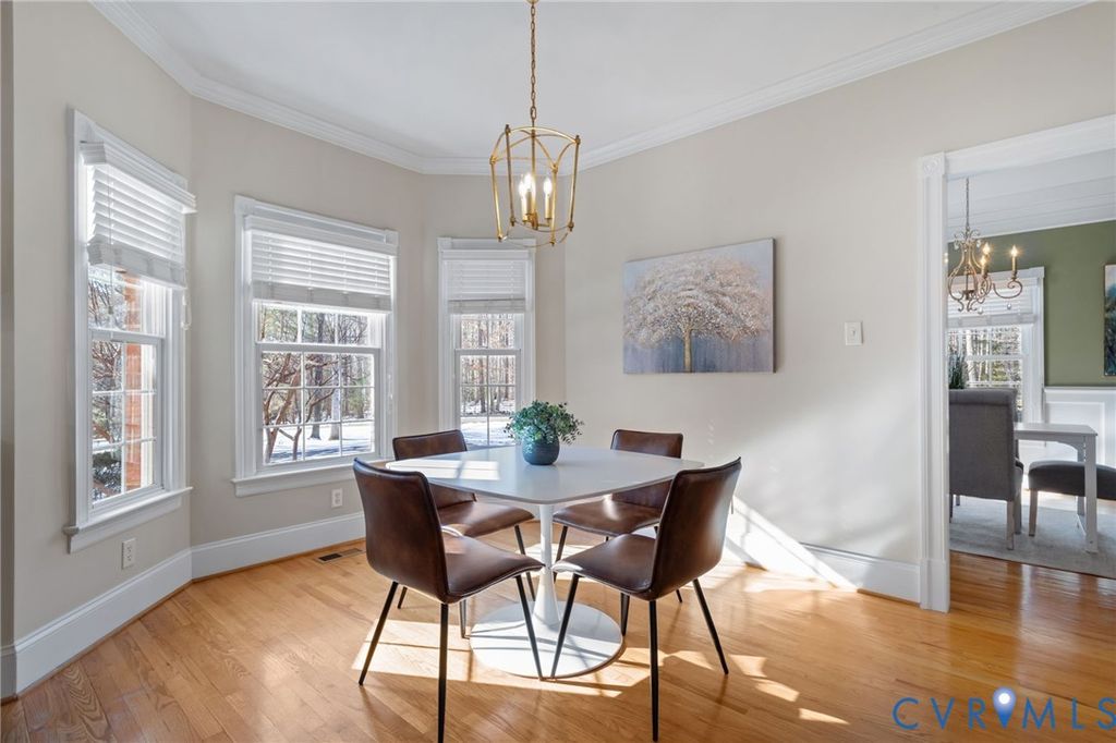 Welcome to 13501 Corapeake Place in coveted Chesdin Landing"”where charm, modern updates, and lifestyle come together beautifully. This inviting home features fresh neutral paint and updated light fixtures throughout, creating a warm, contemporary feel and a blank canvas ready for your personal touch. A bright, sun-filled foyer sets the tone. To the left, a refined living room; to the right, a formal dining room with wainscoting and crown molding"”perfect for gatherings. Straight ahead, the heart of the home awaits: a spacious eat-in kitchen with a large island, granite countertops, gas cooking, and stainless steel appliances. Just off the kitchen, a well-appointed laundry/mudroom with custom cabinetry and a utility sink adds convenience. The kitchen flows seamlessly into a stunning family room with soaring ceilings open to the second level and oversized custom windows that flood the space with natural light. A butler's pantry between the family and living rooms makes entertaining effortless. Tucked away on the main level is the sought-after primary suite, offering a peaceful retreat, complete with a large walk-in closet and spa-like ensuite bath. Upstairs are two generously sized bedrooms with ensuite baths, plus two additional large bedrooms connected by a Jack-and-Jill bath. A back staircase leads to a large attic space above the garage (476 sqft), offering numerous possibilities for a home office, guest suite, or recreation room. Outdoor living is just as impressive. A spacious deck overlooks the lush backyard, ideal for relaxing or hosting gatherings. Life in Chesdin Landing means access to Chesdin Lake for boating, fishing, and kayaking, along with walking trails, a clubhouse, pool, and golf course. Convenient to schools, Pocahontas State Parkplenty of outdoor space, and parks, this home blends tranquility with accessibility. 13501 Corapeake Place isn't just a home"”it's your opportunity to enjoy exceptional living in one of Chesterfield's most desirable communities. Schedule your showing today!