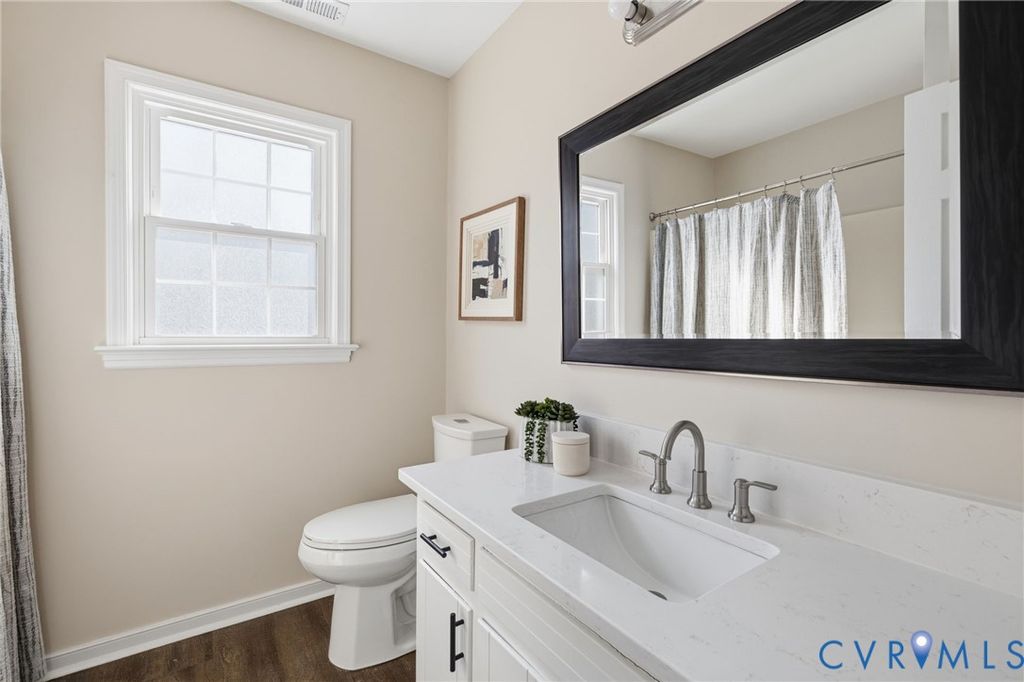 Welcome to 2513 London Road in the Retriever Ridge Subdivision off Church Road! This 4 bedroom, 2 bath Cape has 1,644 square feet and is move-in ready. Kitchen has quartz countertops with stainless steel appliances and luxury vinyl plank flooring. Large living room with fireplace and lvp flooring. 2 bedrooms on the first floor with full bathroom. Second level has primary bedroom with new carpet and a second bedroom with another full bathroom. New roof and gutters just installed! Large fenced in backyard with front porch and large rear deck. Gayton Elementary, Pocahontas Middle and Godwin High School. You don't want to miss this home.