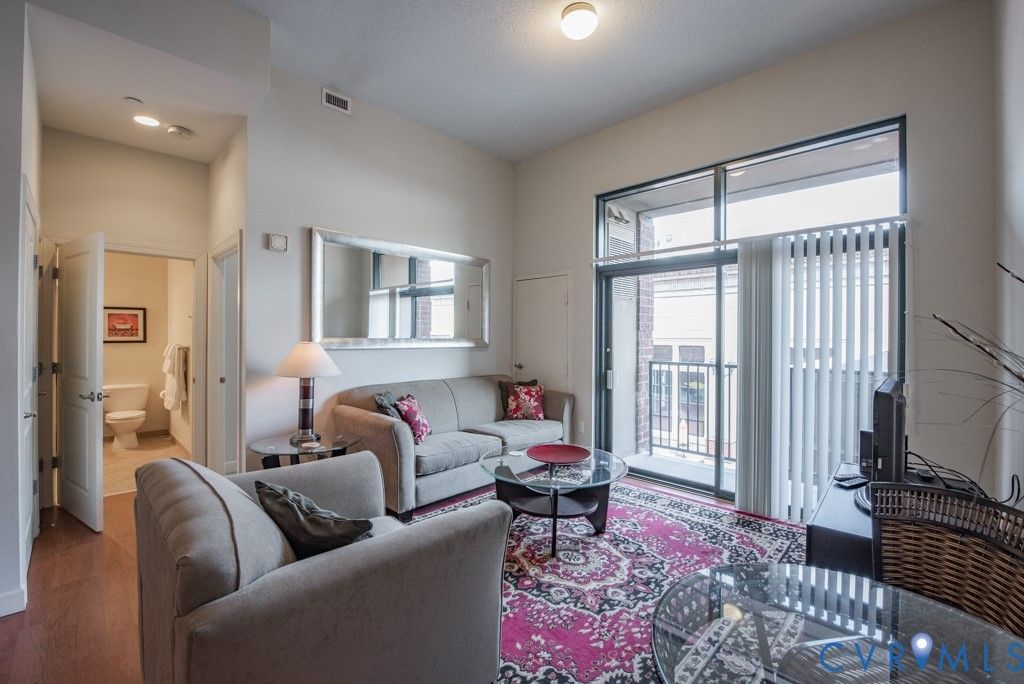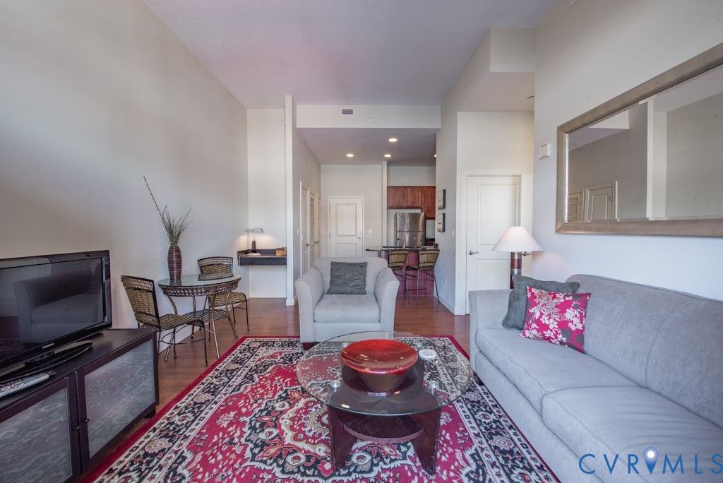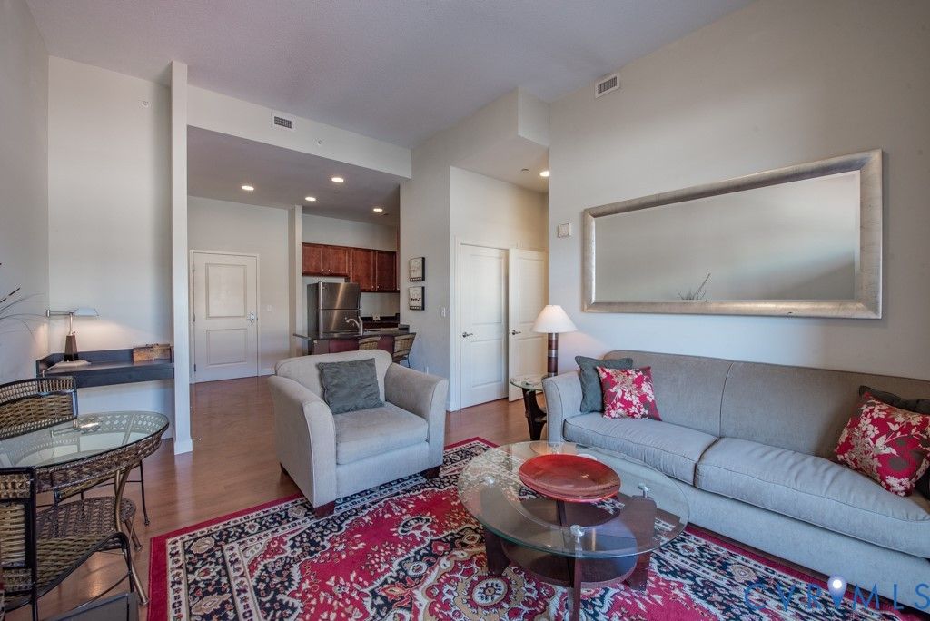 Simple and Elegant; 1101 Haxall Point U205. This fully furnished unit is completely turn key with furniture, housewares and linens to convey. For investors, it is perfect for rentals. This one bedroom, one bathroom on the 2nd floor of Riverside on the James overlooking the courtyard, the canal walk, the Padel Plant (renovation of Old Power Plant in to padel courts) and Casa de Barco. The kitchen has SS appliances; refrigerator, stove, dishwasher and microwave. Laminate floor in LR, carpet in BDR and tile in the bathroom. A designated parking space #3. A stackable washer/dryer in the condo. Rented as an All Inclusive Fully Furnished Corporate Condo for $1,950 - $2,550. Sit back and relax on the balcony in the evening, and watch the city skyline come to life. See last picture. You have access to the community Club Room and Fitness Room and there is a daytime M-F manger. Just a 10 minute walk to a multitude of fun (Brown's Island, Padel Plant, Tredegar 7500 seat amphitheater, kayaking, walking, bicycling, Capital Trail, Pipeline, downtown Christmas displays, restaurants) and 5 minutes from the Downtown Expressway. What are you waiting for? Come see Riverside on the James U205.