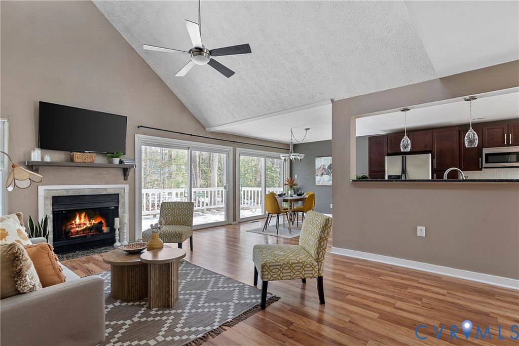 Welcome home to this beautifully updated 3-bedroom contemporary ranch tucked into a peaceful, wooded setting. Freshly painted exterior. gives this home crisp curb appeal, while major updates bring peace of mind "” including a brand new heat pump, remodeled and tiled bathrooms, and recently repaired decks ready for entertaining. YES, DECKS PLURAL! Step inside to soaring cathedral ceilings, warm hardwood floors, and natural light pouring in through oversized windows. The open-concept living space centers around a cozy fireplace "” perfect for cool evenings "” and flows effortlessly into the updated kitchen featuring granite counters, stainless appliances, rich cabinetry, and a bright eat-in area. The remodeled tiled bathrooms add a fresh, modern touch, and all three bedrooms offer comfortable, functional space. Outside, enjoy your private deck overlooking a wooded backdrop "” ideal for morning coffee or evening gatherings. Paved drive, covered parking, and exterior improvements already done for you. Updated. Move-in ready. Major systems handled. Charm, Character, Convenience and Location. If you've been waiting for that one that just feels right... This MUST Be The Place