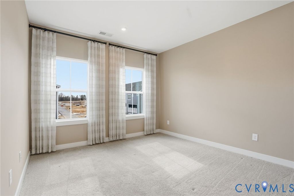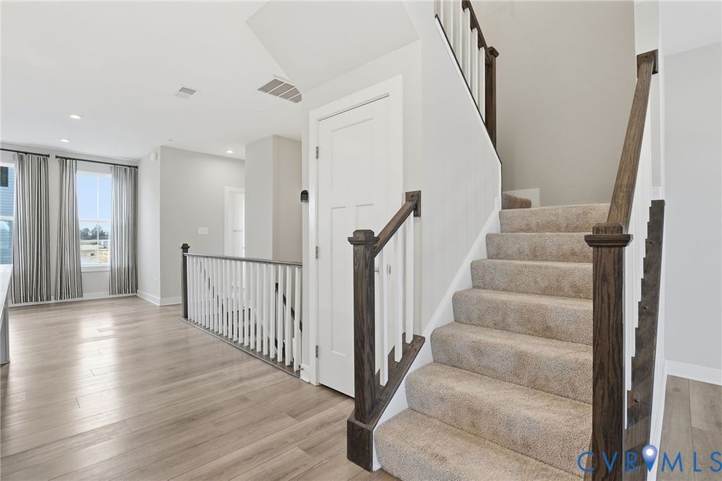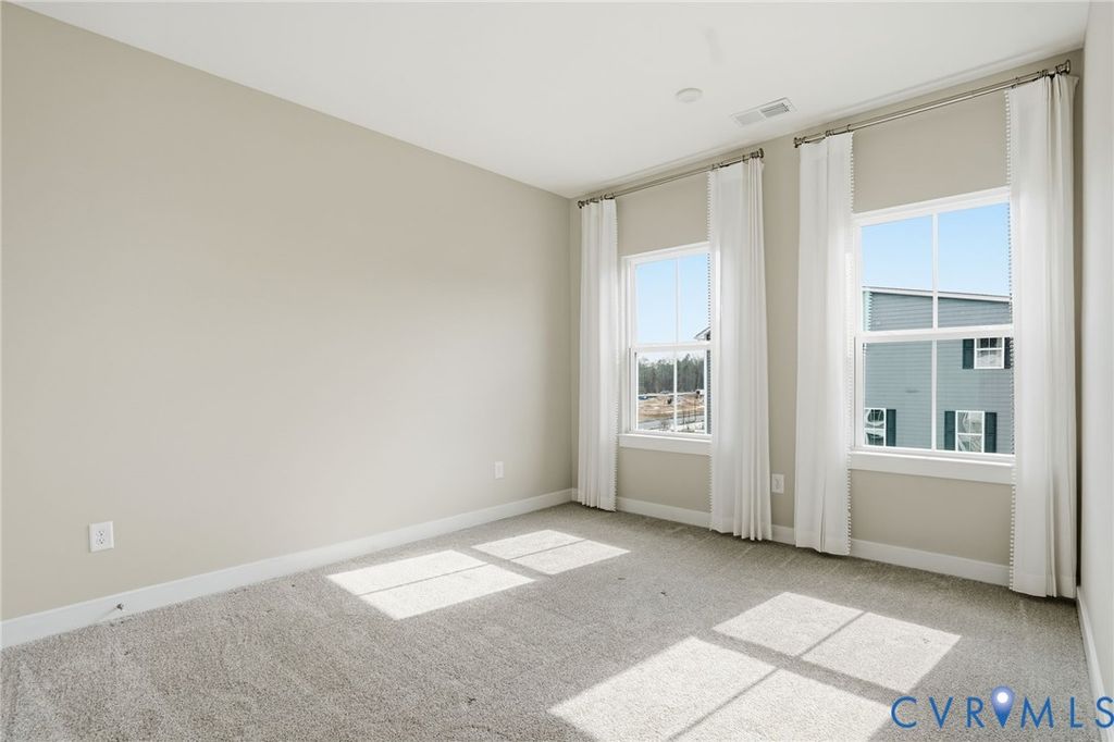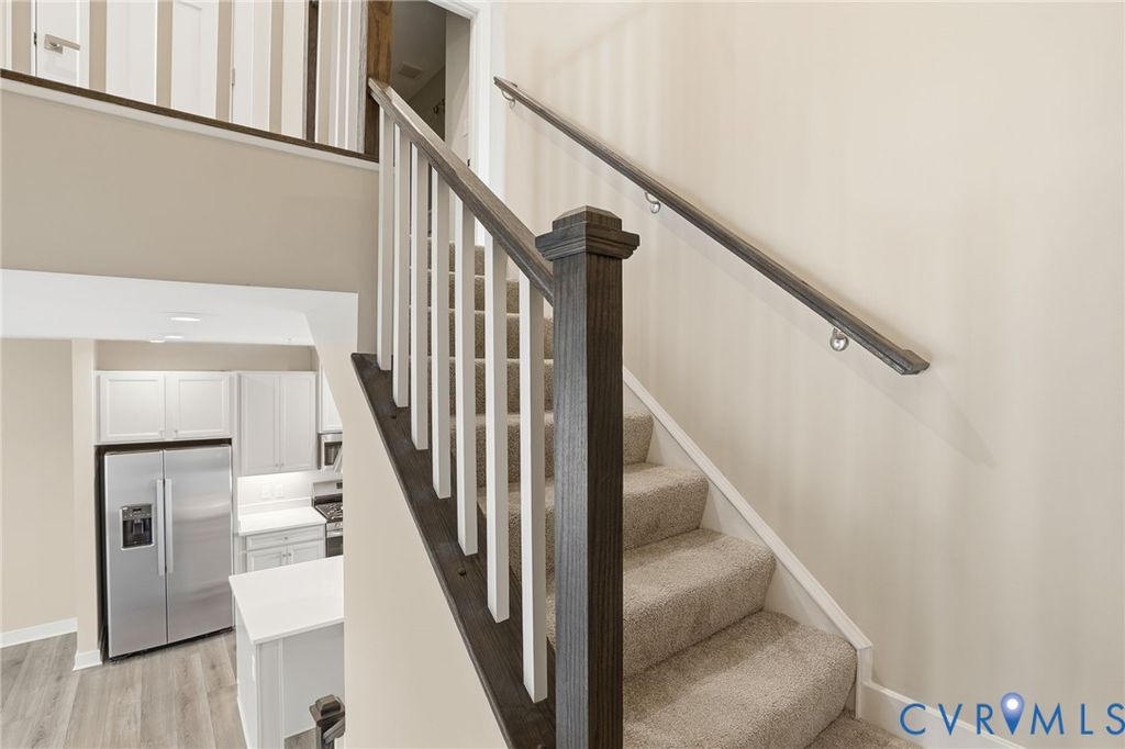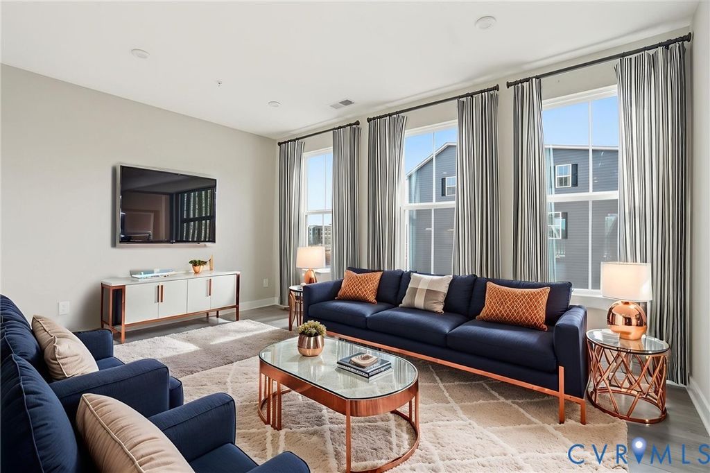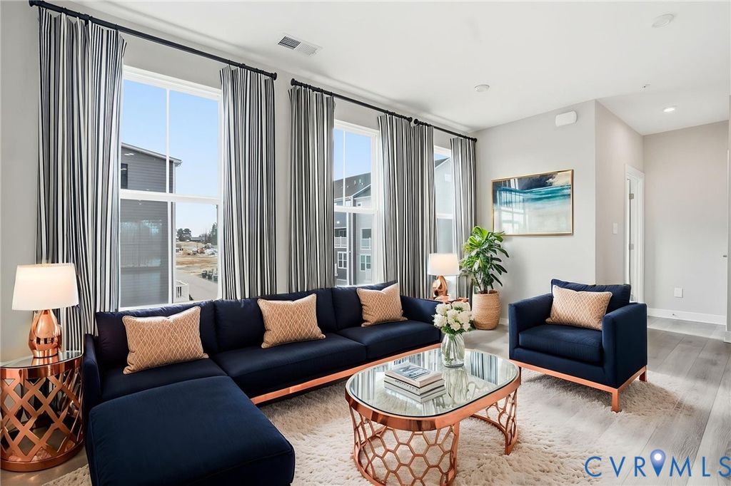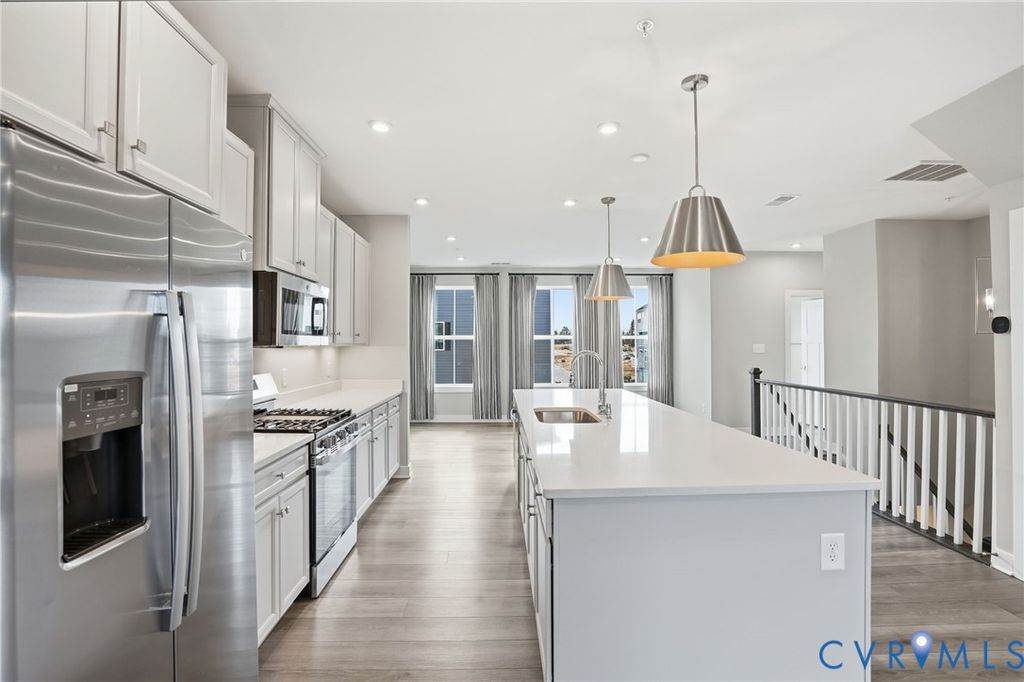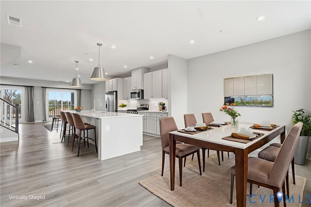 Welcome to 12006 Calgary Loop - the Former Model Picasso Floor Plan, that has never been lived in, located in the new neighborhood of Moore's Lake. Innovative, stylish, highly anticipated condo living, reimagined! Featuring almost 2,500 square feet, 3 bedrooms, 2.5 baths and a one car attached garage. The main living area offers an open floor plan, LVP flooring throughout and recessed lighting. The spacious family room has sliding glass door to you private balcony. The kitchen has stainless steel appliances including a refrigerator, gas cooking, white cabinets, pantry, a large island with breakfast bar. On the third floor you will find the luxury owner's suite featuring a walk-in closet and the en-suite bath with LVP flooring, his and hers vanity, tiled shower and water closet. There are two additional bedrooms, a full bath plus the laundry room with a stack washer & dryer and built-in cabinets. Other notable features include brick and hardiplank siding, gas heat/central air, and a one-car attached rear entry garage. Let's not forget the amenities right outside your door! You will enjoy green space, walking trails, sitting areas, pickleball courts, dog park, fire pit, grilling areas and future pool access. Quick access to Route 1 and Route 10. Less than 12 minutes from CE Curtis Elementary School, Elizabeth Davis Middle School and Thomas Dale High School. 20 minutes to Fort Gregg-Adams. 5 minutes from Kroger, Starbucks, Kohl's, Target, Panera and so much more. 2.8 miles to Chester Village Green with Grant Coffee Company, Howlett's Restaurant & Tavern and Don Papa Grande. Come and see what Moore's Lake is all about! Schedule Your Showing Today! This home is move in ready.
