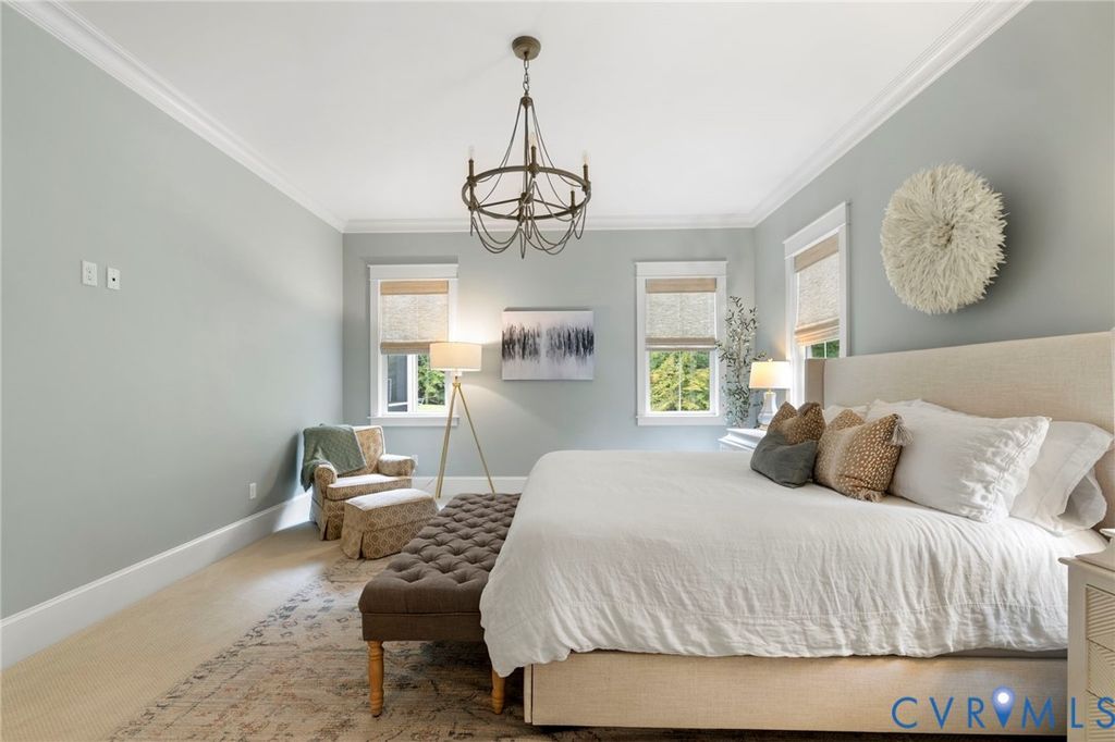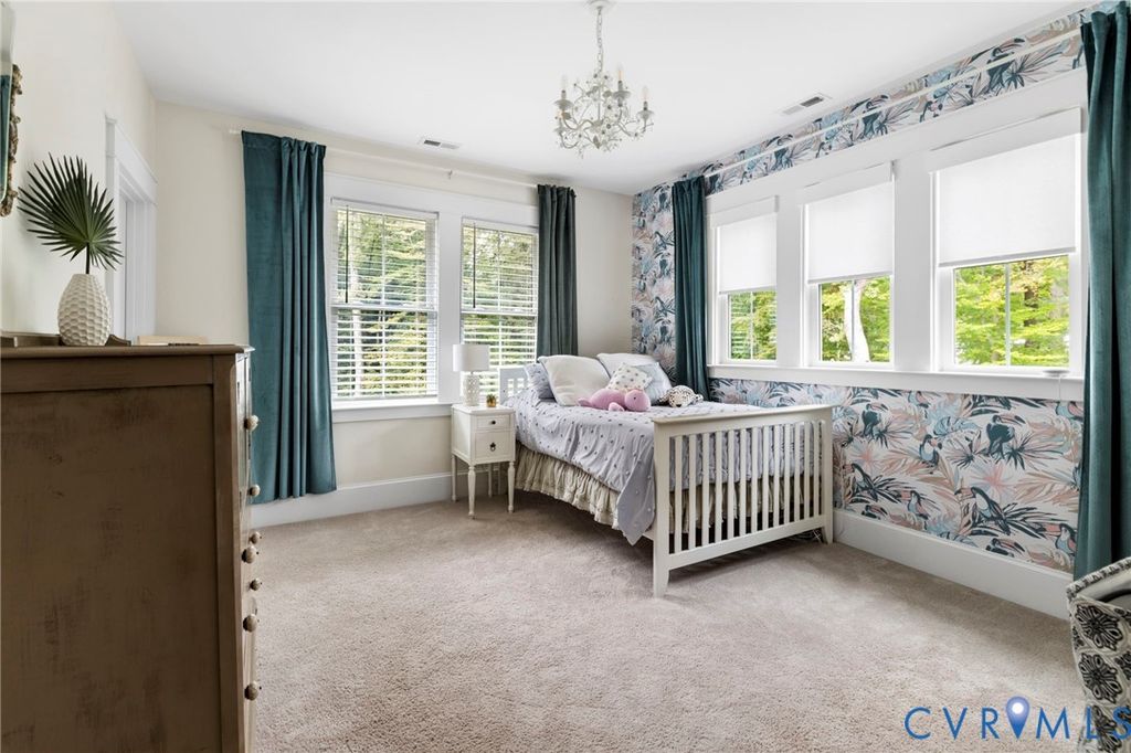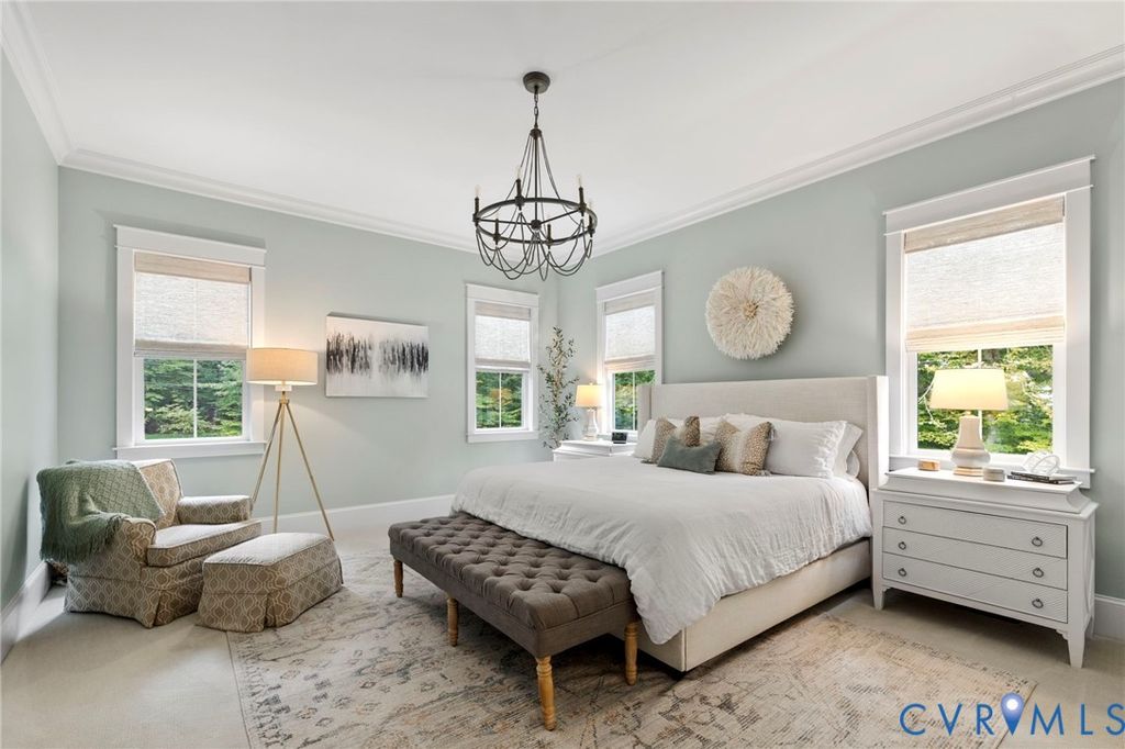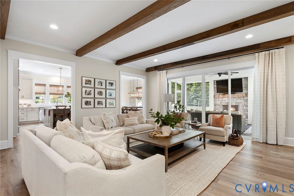 Spring welcomes you to this custom-designed farmhouse by Biringer Builders, a masterpiece of craftsmanship & design, blending elevated sophistication with everyday comfort. This home feels brand new! Situated off of historic Old Gun Road on 2 private acres, it offers the serenity of a retreat, minutes from conveniences. From the inviting front porch to the welcoming foyer, every detail has been thoughtfully curated. Soaring 10' ceilings, exquisite moldings & wide-plank wood floors establish an atmosphere of refinement. A paneled dining room & butlers pantry provides the perfect setting for gatherings, while the light-filled family room with beamed ceilings, fireplace, and built-ins flows seamlessly to a three-season screened porch with a stone fireplace, the perfect spot to relax. The chef's kitchen is a true showstopper, featuring a large quartz island with breakfast bar, floor-to-ceiling cabinetry, tiled backsplash, luxury appliances, and a sunlit dining area. A walk-in pantry, office/mudroom, powder room and laundry enhance main-level living. The primary suite is a luxurious retreat, wrapped in windows with refined crown molding. The spa-inspired bath offers a double vanity, walk-in shower, private water closet, linen storage, and a boutique-style walk-in dressing room with custom built-ins. Upstairs, a versatile loft connects four spacious bedrooms, including a Jack-and-Jill suite plus a second laundry room. An additional suite with full bath offers flexible space for a media room, office or guest accommodations with expansion potential in the wired storage area. The finished lower level provides abundant living space with a great/TV room, playroom, guest suite and direct walk-out to a private patio. An oversized two-car garage offers excellent storage. Outdoors, the property is designed for both recreation & retreat with a sports field and wooded trails and convenient second stone driveway. This remarkable residence offers a rare opportunity to enjoy elevated living in the heart of beautiful Midlothian.