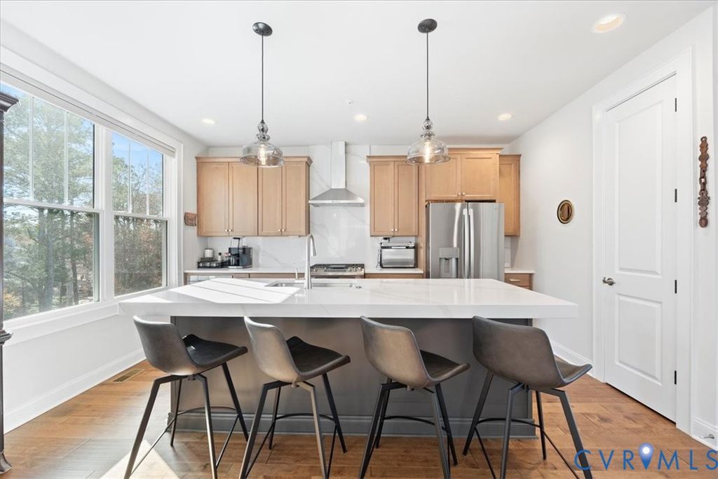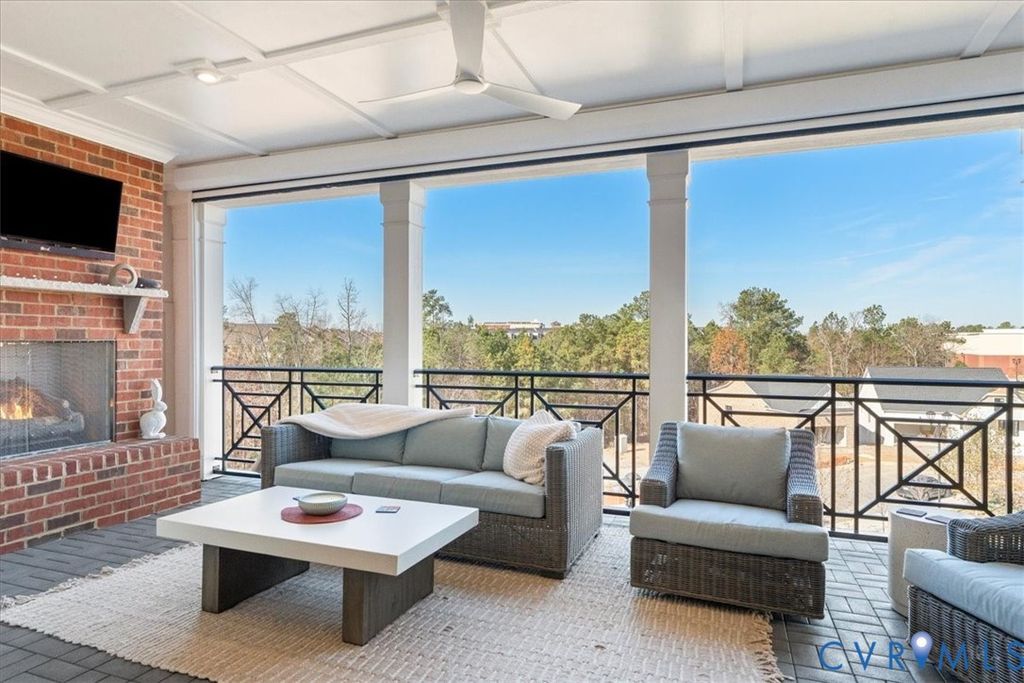 Incredible Condominium Opportunity in West Broad Village with Panoramic Views. Built in 2023, this stunning, 3-bedroom, 2.5-bath QUIET, END UNIT, loaded with high-end UPGRADES is move-in ready! Enjoy effortless living with a PRIVATE ELEVATOR one-car garage, plus a private driveway for an additional vehicle, a rare find in this sought-after community. The show-stopping feature is the fourth-floor TERRACE with gas fireplace and remote-controlled retractable screen, offering breathtaking views and an accordion style all-glass NanaWall, creating true indoor/outdoor living. Perfect for entertaining year-round, with a beautiful gas fireplace for cozy evenings. Inside, the gourmet kitchen is a chef's dream with premium finishes, ideal for both daily living and hosting. The open-concept design flows beautifully with abundant natural light, modern details, and LOW-MAINTENANCE LIVING throughout. Located steps from top-rated restaurants: Fogo de Chao, Bonefish Grill, Arilang Sushi, Foxtails Coffee, and grocery stores: Whole Foods, Trader Joe's and Tom Leonards, shopping close to Short Pump Town Center, ACAC fitness, and scenic walking paths. This home offers unmatched WALKABILITY and convenience. Enjoy all the AMENITIES West Broad Village has to offer while living in a modern, upscale setting.