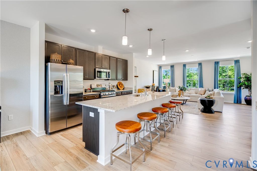 Immediate move in! Brand-new Ellington townhome with wooded backyard and 2 car garage! Walking distance to elementary school, four bedrooms, two full baths, and 3-half bath. This new three-story townhome boasts a modern and spacious layout. A first-floor guest suite makes it easy to entertain and relax throughout the week. On the second level is a flexible open-concept floorplan shared between the kitchen with a large center island with granite countertops, living, and dining areas. Enjoy the warmer weather on the large 10x18 composite deck overlooking the wooded backyard. Three bedrooms make up the third floor, including the luxe owner's suite with a spa-inspired bathroom and walk-in closet. Very short walking distance to Harpers Mill community amenities, including a clubhouse, swimming pool, recreation fields, playgrounds, dog park, walking trail, and elementary school! Images of model home, actual home may differ.