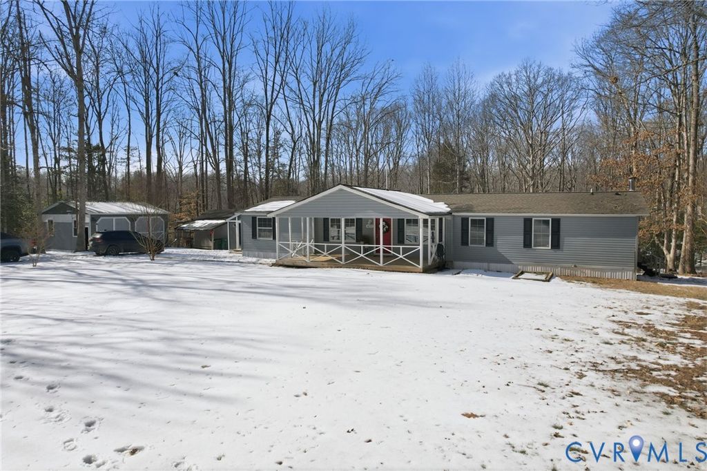 Welcome to 4632 Slippery Rock Ln in Goochland. This 4 bedroom 2 full bath home is nestled on 3.3 private acres and is move-in ready! Upon entering you will find a spacious living room with new carpet that opens to the dining room with ceiling fan. Kitchen is generous in size and features freshly painted cabinets, butcher block countertops, tile backsplash, SS appliances w TWO refrigerators, an island, and new LVP flooring. Off the kitchen is an additional dining area w new chandelier, and two very sizable cased closets that could be used as pantries, office nooks, or for additional storage. Primary bedroom has new carpet, two closets, and a private full bath with soaking tub, separate shower, linen area, vanity, and ceramic tile floor. On the opposite side of the home are three additional bedrooms, all substantial in size, with new carpet and lighting fixtures, and a second full bath with tub/shower combo, tile surround, and custom sink. A large laundry/mudroom with washer, dryer, & additional storage completes the interior features of this home. Outside are several additional structures including an oversized 2.5+ car detached garage with car lift, and a separate finished building with power. 30-year roof on the main home is only 7 years old. A private retreat in close proximity to I-64, this home is priced to sell and ready for its' new owners!
