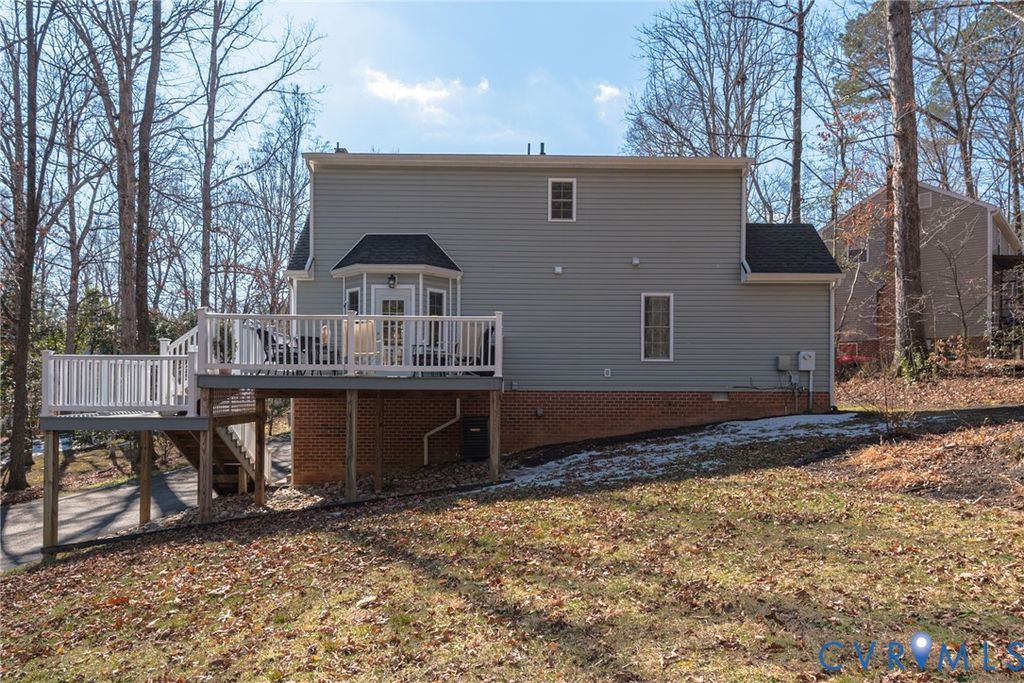 Welcome to this beautifully updated 4 bedroom 2 bath home in the Midlothian area of Chesterfield County located in the established Deer Run community offering 1,554 sq ft of move in ready living space on a spacious .45 acre lot with no HOA. The functional layout features both first floor and second floor primary bedroom options. The first floor primary includes a renovated bath with a large walk in shower. A second bedroom is also located on the first floor with two additional spacious bedrooms upstairs. The kitchen was fully renovated in 2019 with quartz countertops, upgraded cabinetry, new kitchen appliances, and a breakfast bar open to the Great Room creating an ideal flow for everyday living. A secondary washer and dryer hookup on the first floor adds convenience and flexibility. Major improvements have already been completed including a new roof, vinyl siding, new Pella windows, renovated bathrooms, flooring, and interior paint as part of the 2019 renovation. More recent updates include new HVAC in 2023, new hardwood floors on the first floor and whole house interior paint in 2024, plus a newly built 10 x 20 insulated shed. Additional improvements include attic fan, bathroom exhaust fans, disposal, and fresh bathroom paint in 2026. Hot water heater replaced in 2018. Exterior features include a 36 foot front porch, 16 x 14 rear deck, carport, huge paved driveway, and private backyard setting. Fully updated with major systems already replaced, offering space, privacy, and no HOA restrictions in one of Midlothian's most established neighborhoods.