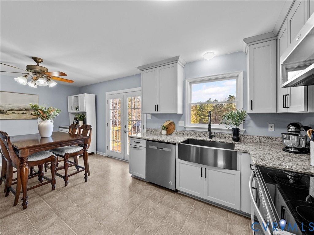 Welcome home to easy, one-level living in the heart of Powhatan. Situated on a spacious 2.66-acre lot, this well-maintained ranch offers the perfect blend of comfort, privacy, and convenience, just minutes from the county's shopping, dining, and parks. Inside, the functional layout features three bedrooms and two full bathrooms, including a private primary suite with its own ensuite bath. The living room, hallway, and bedrooms are comfortably finished with carpet, while both bathrooms have been updated with new fixtures and durable vinyl flooring. The eat-in kitchen was fully updated in 2024 with new cabinetry, countertops, and stainless steel appliances, creating a fresh and inviting space for everyday living. French doors lead directly to the large rear deck, newly built in 2025, providing an ideal setting for relaxing or entertaining while overlooking the fenced backyard and additional open space beyond. This home offers exceptional practicality with a separate laundry room, dedicated storage closet, and generous storage options throughout. Outside, enjoy the welcoming covered front porch, detached storage shed, and expansive yard with plenty of room for hobbies, recreation, or future possibilities. Major system updates add peace of mind, including a new HVAC system in 2025 and a professionally encapsulated crawlspace completed in 2024. The home is also wired for a generator and offers high-speed Xfinity internet availability, ensuring comfort and connectivity year-round. With thoughtful updates, valuable system improvements, and a desirable central Powhatan location, this property presents a rare opportunity to enjoy low-maintenance living with space to spread out.