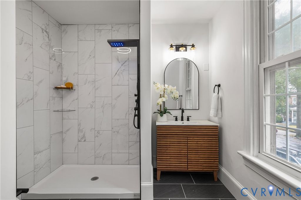 Stunning Renovated, corner-lot home in Richmond's historic Church Hill! This move-in-ready beauty blends original character with modern luxury, featuring refinished hardwood floors, quartz counters, stone & tile finishes, massaging shower towers in every full bath, and stainless appliances that convey. Enjoy two primary bedroom suites (including a first-floor option), a bonus upstairs balcony/utility space, and a backyard ready to become your garden & entertainment oasis. Located on a quiet street surrounded by renovated historic homes and new construction, your investment is set to grow as property values rise. Walk to RVA favorites like Soul & Vinegar, Metzger, Hill Café, Union Market (with free wine tastings), Kahlos, Alewife, Slurp Ramen, and Spotty Dog Ice Cream. Schedule your tour today"”this one won't last!
