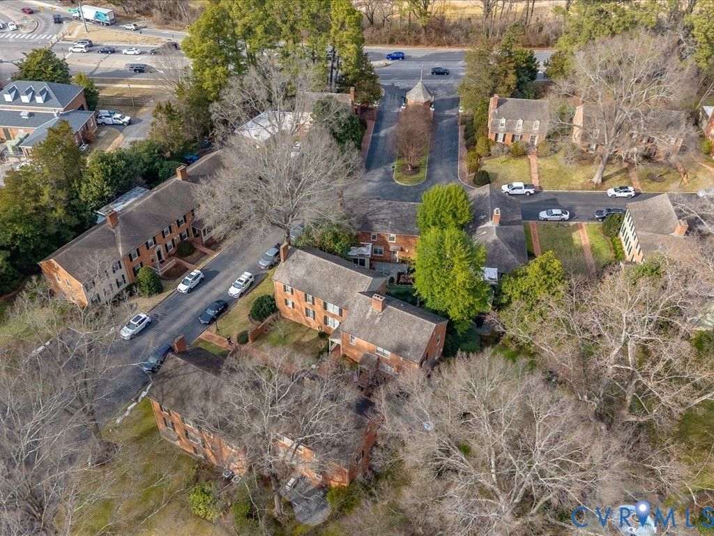 Rare FIRST FLOOR, one-level living in a quiet, private setting within Chatham Square. This spacious unit offers easy access with no interior stairs and a flexible floor plan ideal for a lock-and-leave lifestyle. The light-filled living room features a gas fireplace and flows into the dining area. Enjoy a good book or chat with a friend in the carpeted sunroom with abundant windows and a door leading to the peaceful, park-like backyard. The home features three bedrooms, one currently used as a study, along with two full baths and one half bath. Hardwood floors run throughout the main living areas and bedrooms. The kitchen offers Corian countertops, generous cabinet storage, and space for a small table. Chatham Square is a gated cooperative community set on over 10 acres of beautifully maintained grounds with stately trees, private roads, and charming courtyards. Community amenities include 24-hour on-site security, exterior and grounds maintenance, and a serene setting just across the street from the University of Richmond, Country Club of Virginia, dining, shopping, and neighborhood favorites.