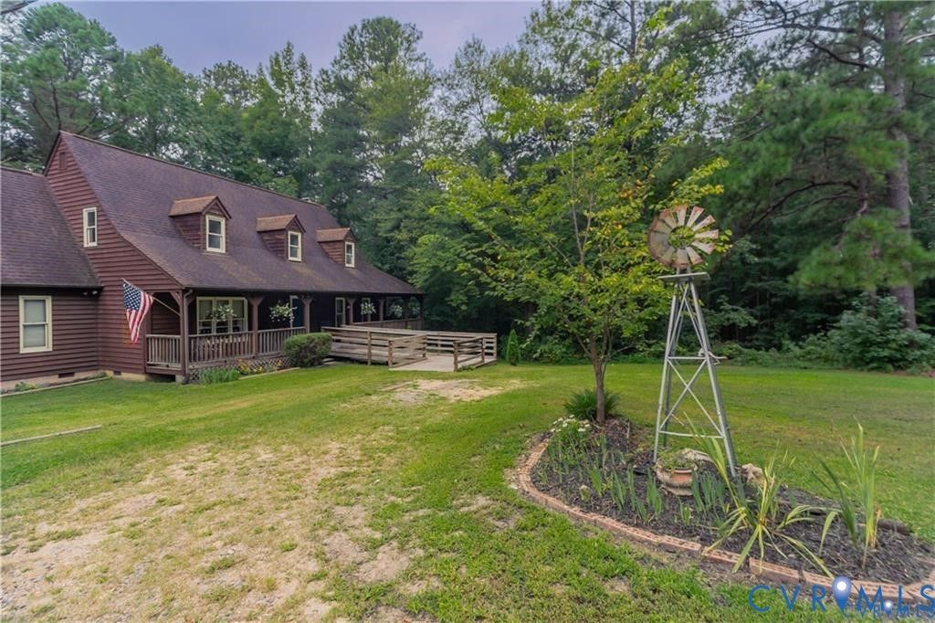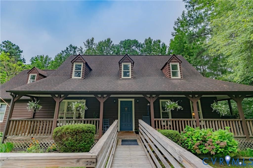 39.13 ACRES in CHESTERFIELD COUNTY! First time offering in 41 years. Looking for privacy or room to expand? Come view this 4 bedroom, 2.5 bath Cedar Cape. Built in 1984, this 2646 sq ft residence features an inviting country front wrap porch, an expansive rear deck for entertaining, wide foyer with closet storage, formal living room and dining room, eat-in kitchen with pantry storage, cozy family room with brick fireplace(wood stove insert), laundry room, half bath, 1st floor primary bedroom with bathroom, and on the 2nd level: 3 ample sized bedrooms, hall bath, loft(flex area), closet storage, pull down attic storage, and knee wall storage. This homestead borders a 1200 acre forest on the right and rear property lines. *19319 River Road(parcel #696640236600000) conveys with the sale of 19321 River Road. Property sold as-is.