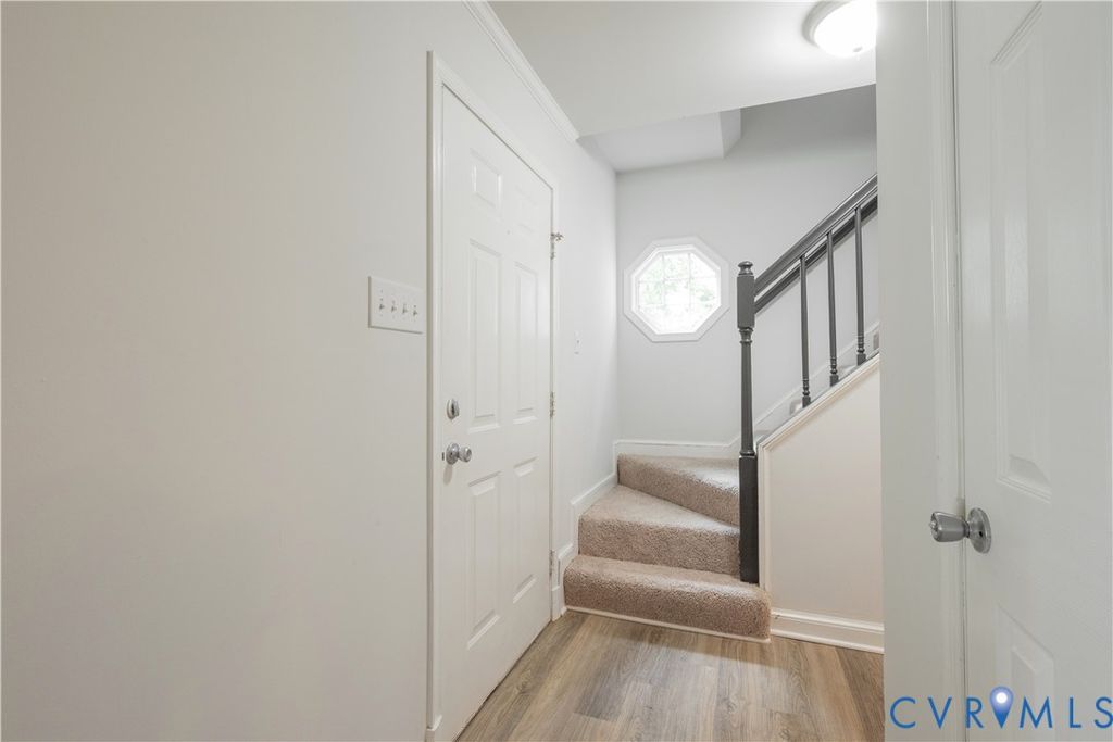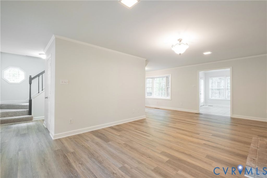 Updates throughout including New Flooring on the main level and new carpet on the second floor. Freshly painted in neutral tones throughout! This open concept home has it all. You will step into the Great Room with enough room for a dining area at one end. Perfect for entertaining family and friends. It has a brick fireplace, access to the garage, laminate flooring, and ample natural light. Connected to the great room is a tiled sunroom overlooking the private back yard. The spacious kitchen has a large sunny eat-in area with a bay window with new lower white cabinets and refurbished upper cabinets, granite counters, ample prep, and storage space with a pantry; double stainless sink and new stainless appliances. The second floor has a primary bedroom with a full bath and walk-in closet with a sitting room attached with two additional closets and a custom cabinet with skylights. Two additional bedrooms with carpet, large closets, and access to a full bath. Additional features include an oversized garage and a large private yard great for play areas or gardening. Convenient location to top dining, shopping, schools, interstates and just minutes to downtown Richmond, Petersburg or Short Pump mall.
