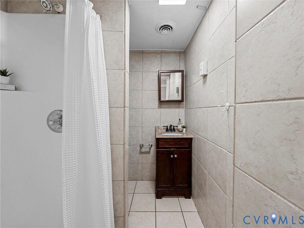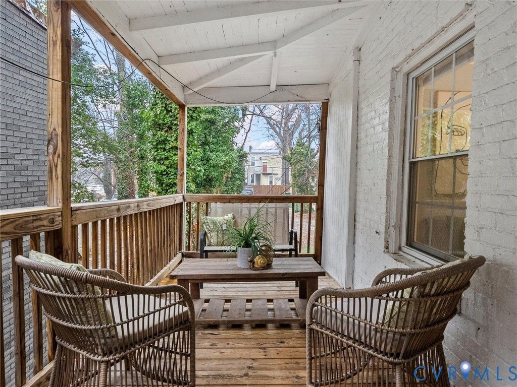 Welcome to 116 S. Pine Street. Conveniently located just one block from VCU and offering FOUR off-street parking spaces, this Oregon Hill charmer is updated and move-in ready. Covered front porch leads into the foyer with gorgeous hardwood floors that continue throughout both levels. Large living room w ceiling fan and pocket doors offers great natural light. Continue to the kitchen with tile floors, granite countertops, dbl sink, appliances incl. refrigerator, and substantial dining space. Laundry area has stack washer/dryer and access to covered side patio. A large bedroom w ceiling fan, and a separate full bath w travertine walls, tile floor, vanity w granite top, & large shower complete the main level. Upstairs are three additional bedrooms, all very generous in size, a large walk-in closet and storage area, a covered balcony with ample seating space, and a second full bath w tub/shower, tile surround w glass doors, travertine walls, & vanity w granite top. Recent upgrades include new HVAC (2024)! An excellent location with four off-street parking spaces (two abreast), this home is an ideal option for VCU students, investors, or anyone looking for convenient city living. Don't wait, this property will not last!