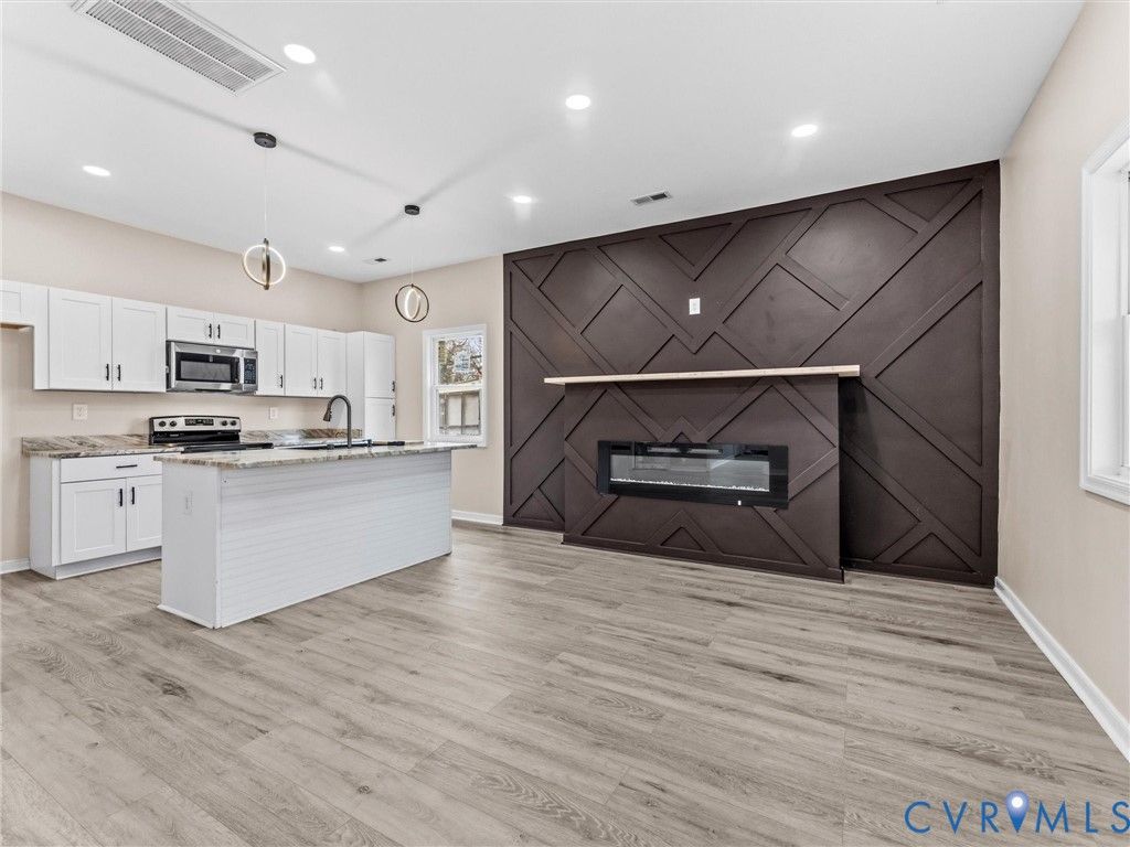 Welcome to this fully renovated 3-bedroom, 2-bath home offering 1,349 square feet of modern comfort and stylish design in the heart of Petersburg. From the moment you arrive, you'll appreciate the inviting front porch and refreshed exterior. Step inside to an open-concept layout featuring luxury vinyl plank flooring, recessed lighting, and a seamless flow between the living room, dining area, and kitchen"”perfect for everyday living and entertaining. The show-stopping accent wall with a sleek electric fireplace creates a bold focal point in the main living area, giving the home a warm yet contemporary feel. The kitchen offers: "¢ White shaker cabinets "¢ Stainless steel appliances "¢ Modern hardware "¢ Spacious island with seating "¢ Stylish countertops and ample prep space The primary suite is a true highlight, featuring a beautifully designed en-suite bathroom with oversized marble-style tile, gold fixtures, dual vanities, and a custom walk-in shower with built-in seating and niche detail. Additional features include: "¢ Dedicated laundry area "¢ Spacious secondary bedrooms "¢ Updated bathrooms with high-end finishes "¢ Rear deck perfect for relaxing or entertaining "¢ Generous backyard space ?? Prime Location Benefits: 128 Grigg Street is conveniently located just minutes from: "¢ I-95 for easy commuting to Richmond, Fort Lee, and surrounding areas "¢ US-460 and Route 1 for quick local access "¢ Downtown Petersburg restaurants and shops "¢ Virginia State University "¢ Southpark Mall "¢ Local parks and everyday conveniences Whether you're a first-time homebuyer, relocating, or looking to add to your portfolio, this move-in ready home offers modern upgrades, thoughtful design, and convenient access to major highways and amenities.