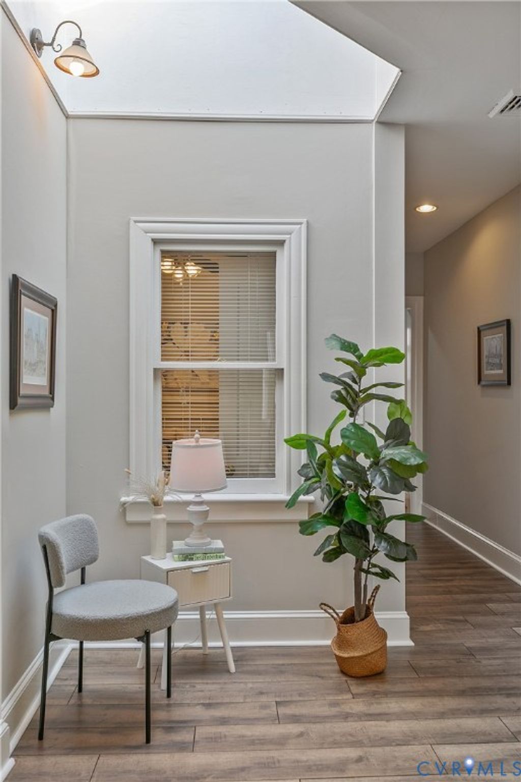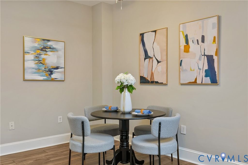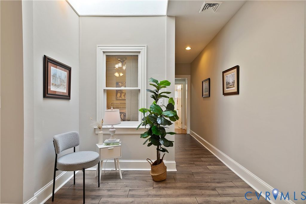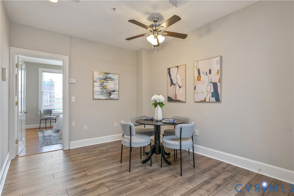 Set in the dynamic heart of downtown Richmond, moments from VCU, the Greater Richmond Convention Center, and MCV Hospital, this freshly painted condominium offers a refined urban retreat with immediate access to I-95. Positioned on the second level above boutique storefronts, the residence pairs architectural character with modern sophistication. A curated palette of hardwood and new luxury vinyl plank flooring anchors the interiors, while a classic tiled bath adds timeless appeal. Dramatic ceiling heights, expansive windows, and a statement skylight infuse the main living space with abundant natural light, creating an airy, loft-inspired ambiance. Central air and ceiling fans ensure seamless year-round comfort.The streamlined galley kitchen is both elegant and functional, appointed with maple cabinetry, quartz countertops, stainless steel appliances, a gas range, dishwasher, microwave, and an LG Inverter washer/dryer combo "” delivering elevated design without compromising"‹"‹"Œ"‹"‹"‹"‹"Œ"‹"Œ"‹"‹"‹"‹"Œ"‹"‹"Œ"‹"‹"‹"‹"Œ"Œ efficiency.