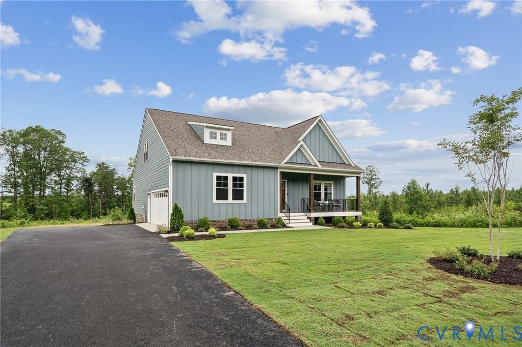THIS IS A QUICKER MOVE HOME. Expected delivery July, call Sales Agent for more details. This Randolph floor plan is a rustic yet modern home that seamlessly blends timeless charm with contemporary flair, offering 2,431 sqft, 3BR and 2.5ba on a 1.89-acre homesite. Step onto a covered front porch (24'X5') and through the front door into a quaint foyer that exudes warmth. A flex space is ready to meet your needs as a home office or more. Includes a convenient powder room, stand-alone laundry, and a side load two-car garage. Inside, the open-concept design unfolds into a living room, kitchen, dinette, and rear covered porch (16'10"x8'). The spacious kitchen features a large island, quartz counters, crown molding on the cabinets, backsplash, stainless steel dishwasher, microwave, range, refined finishes and central walk-in pantry. First floor primary suite features an ensuite bathroom complete with double vanity, frameless glass walk-in shower, private water closet, linen closet and large walk-in-closet. 2nd Floor includes a spacious loft with storage area, bedroom 2, bedroom 3, plus and full bath. The exterior of the home is the farmhouse elevation WITH wrap porch a dormer. This home is in Green Spring Estates, near parks, unique hiking trails, and just a 20-minute drive from Charlottesville. Photos used for advertising purposes and not of the actual house, they may include upgrades not part of the advertised price.