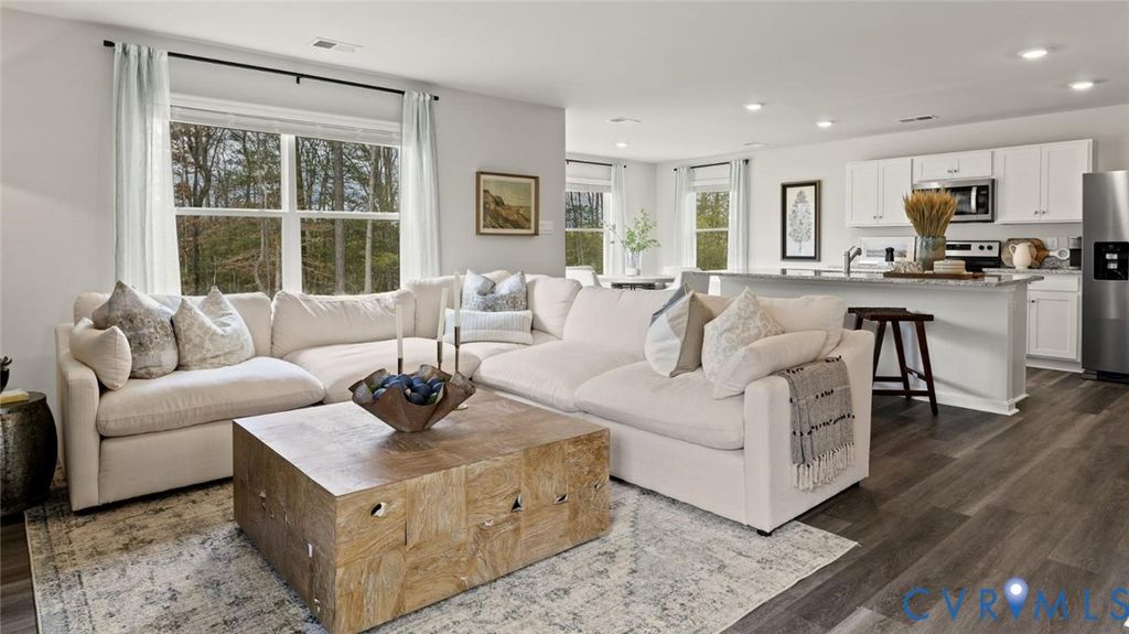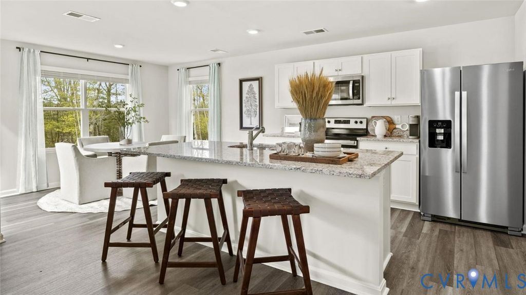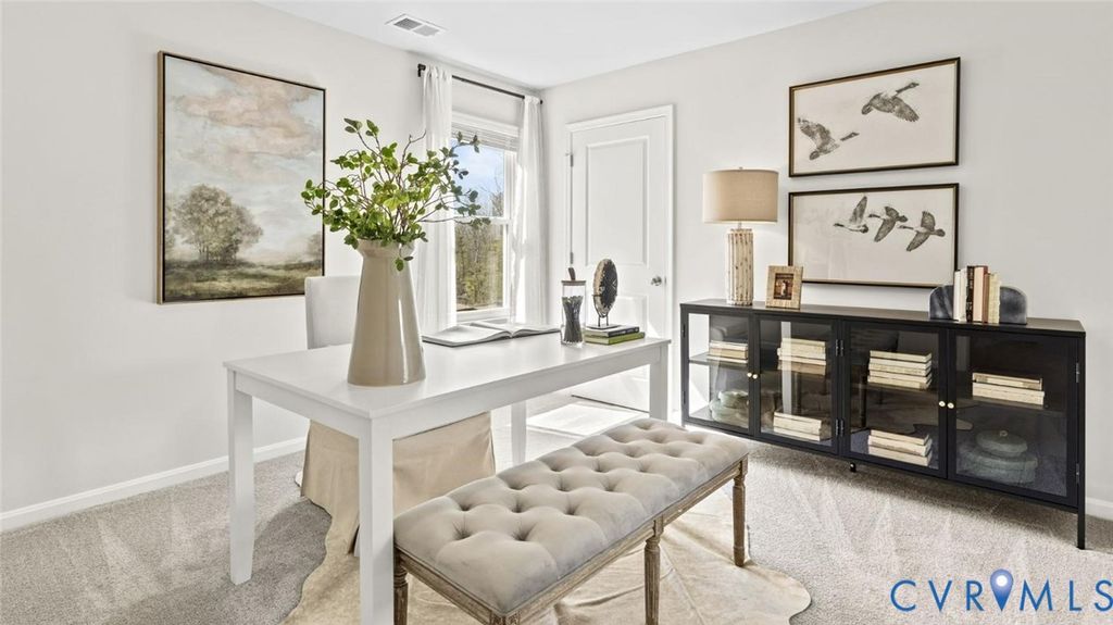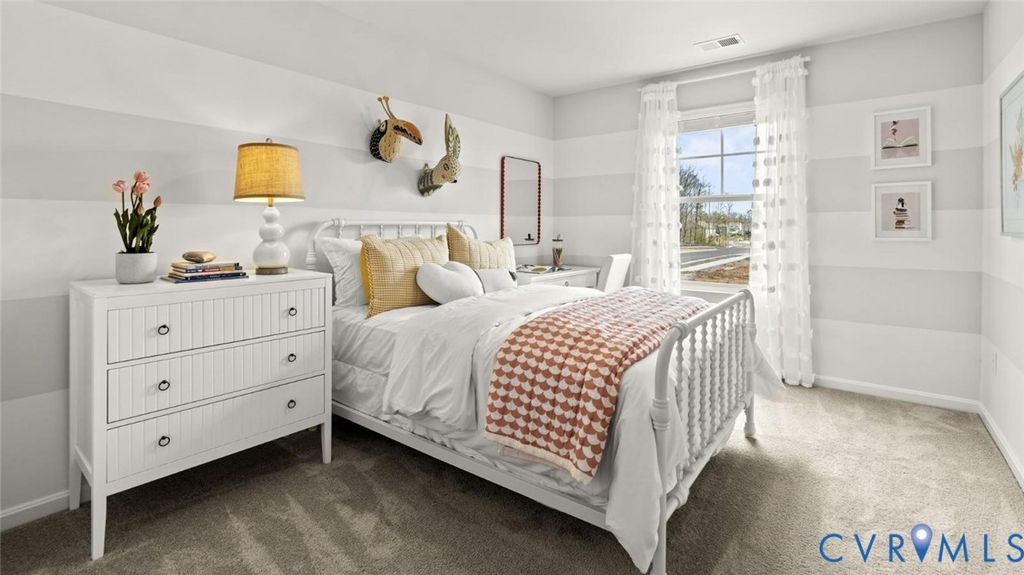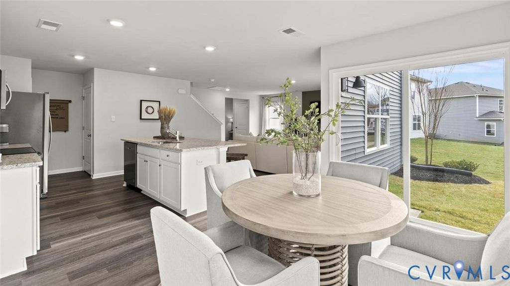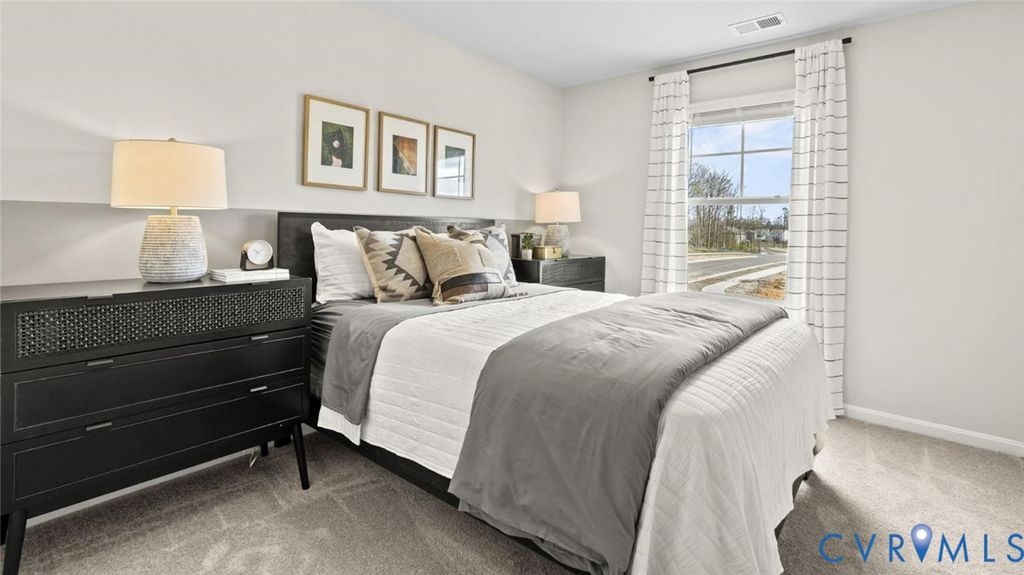 Welcome to Chappell Creek in Prince George, VA! This established community offers spacious homesites, open floorplans, and a family-friendly atmosphere just minutes from Fort Lee, Petersburg, and Richmond. Welcome to The Pine, a stunning 1,953 sq ft open-concept home that perfectly blends comfort and functionality. This beautifully designed home features four spacious bedrooms, two and a half bathrooms, and a two-car garage, offering ample space for your family to grow and thrive. As you enter, you'll be greeted by a welcoming foyer with a convenient powder room and coat closet. The open floor plan allows for seamless flow between the living room, casual dining area, and kitchen, creating the ideal space for family gatherings and entertaining. The spacious kitchen is a highlight, with a large island offering plenty of seating, an impressive corner pantry, and stainless steel appliances. It overlooks the living and dining areas, and a sliding glass door provides easy access to the backyard. Upstairs, the owner's suite offers a private bath with a double bowl vanity and two oversized walk-in closets, creating a luxurious retreat. The three additional bedrooms are generously sized, providing ample privacy, and share access to the second full bathroom. The laundry room is conveniently located on the second floor, along with an extra hallway closet that could serve as additional storage or a linen closet. The Pine offers the perfect blend of spacious living, modern design, and practical features, making it the ideal choice for families seeking comfort and functionality in a home.