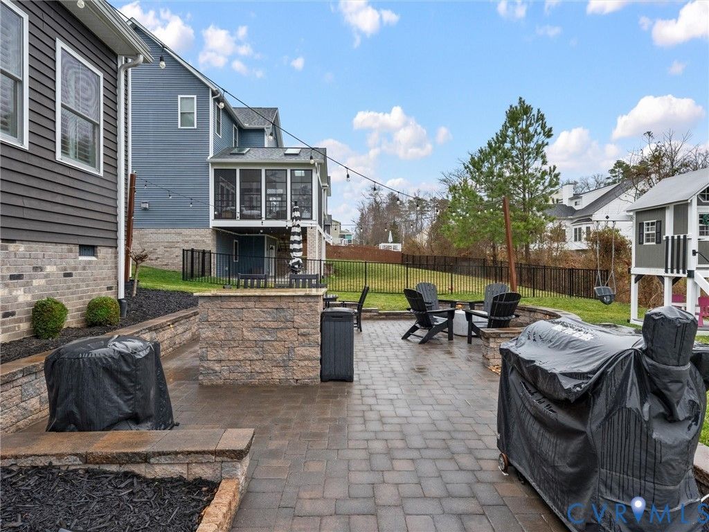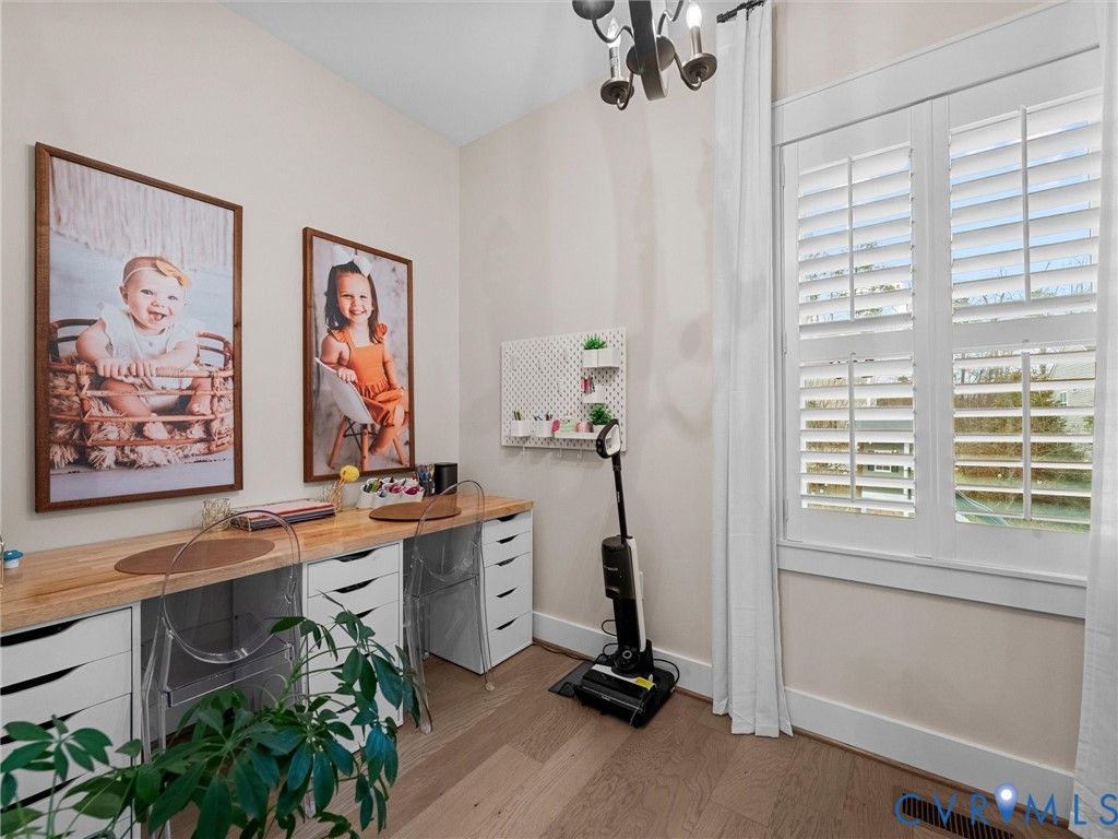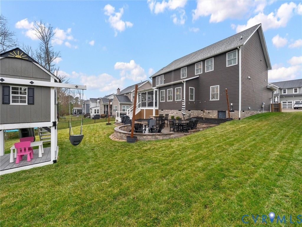 Welcome to this stunning custom-built home in the highly sought-after Rountrey community! This beautifully designed residence offers four spacious bedrooms with the potential for a fifth, three full baths, and one half bath"”providing flexible space for growing families, guests, or a home office. The main level features gleaming hardwood floors throughout and includes a private first-floor bedroom with its own ensuite bath"”perfect for guests or multigenerational living. The heart of the home boasts custom cabinetry, a huge island with leathered granite countertops, thoughtful built-ins, and a functional pocket office ideal for working from home or staying organized. A generously sized pantry with additional cabinetry and a countertop adds everyday convenience. The primary bedroom features hardwood floors, a massive walk-in closet with custom organization, and a huge en-suite bathroom complete with a large custom shower, dual vanities, and a freestanding bathtub. Step outside to enjoy the screened-in porch overlooking a massive custom patio"”perfect for entertaining, relaxing, or watching the kids play on the backyard playset. With walkable access to the Swift Creek Reservoir, you'll love being just steps from peaceful water views and outdoor recreation. Living in Rountrey means enjoying top-notch amenities including pools, clubhouses, social events, a fitness center, tennis courts, and playgrounds. Schedule your showing today"”you won't want to miss this one!