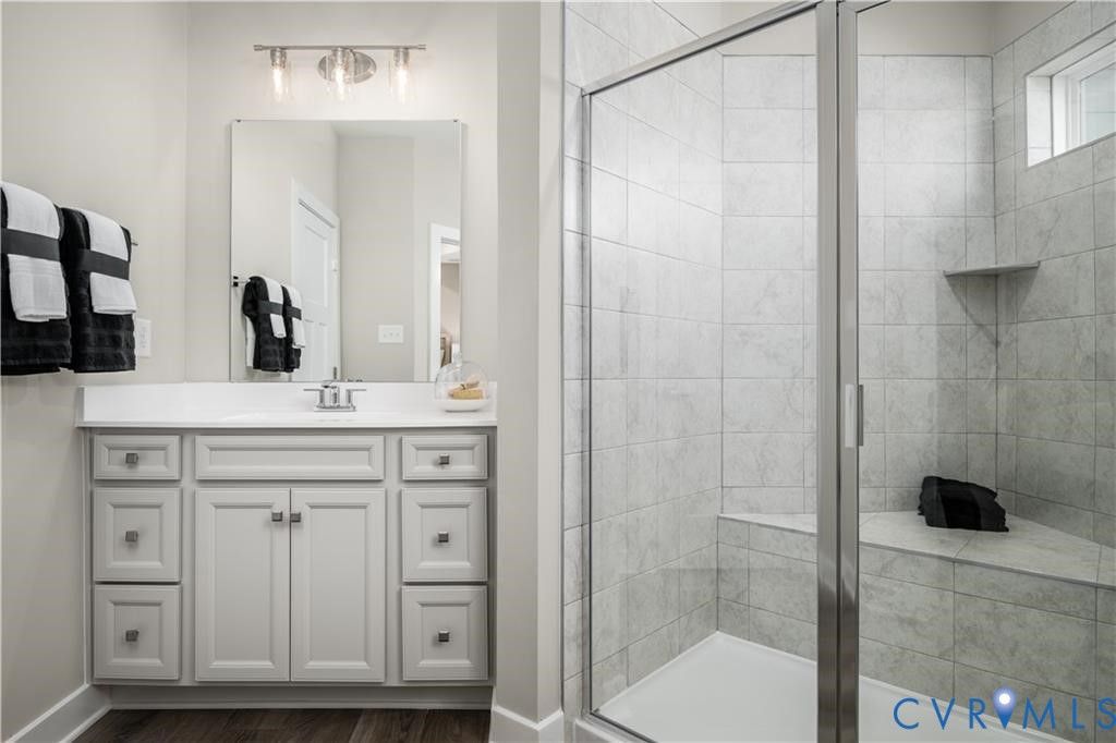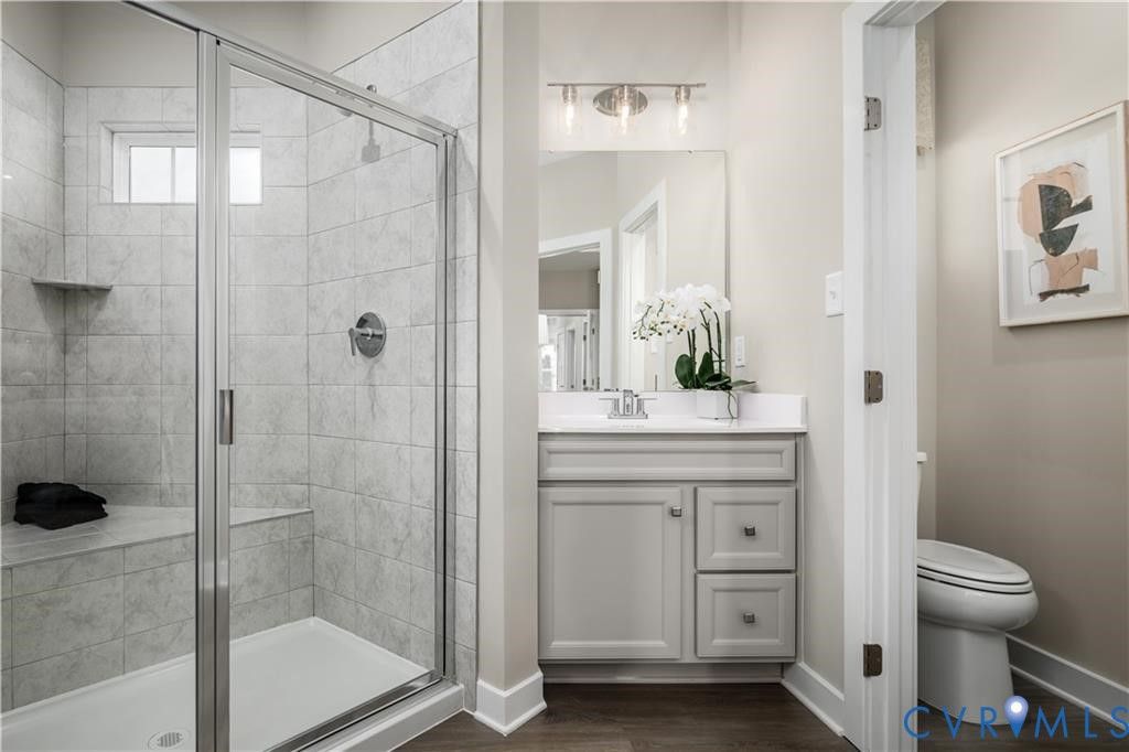 QUICK MOVE-IN! Have you seen the Picasso? This luxury townhome style condo lives like a single-family home with over 2600 square feet of living space. Words cannot describe the elegance that this multi-level home offers. Entertaining will be a dream in your chef's kitchen with oversized island, quartz countertops, stainless steel appliances and LVP flooring throughout. A large open great room with 9-foot ceilings throughout leads to your oasis in the sky as you step out to your covered porch with enough space for outdoor dining, morning coffee, or family game night. Looking for peace and quiet. Retreat to your grand owner's suite equipped with sitting area, trey ceiling, 2 large walk-in closets and spa like owner's bath. Just down the hall from your bedroom, is your laundry room with front load washer and dryer included. Two additional spacious secondary bedrooms provide the perfect space for the kids or home office. With an attached garage, private driveway and plenty of additional parking hosting family and friends for your next pickleball or cornhole tournament will be a breeze. Start putting more time back in your day at Moore's Lake. With all exterior maintenance included you can start living the lifestyle you have always dreamed of. Location, location location.....with easy convenient access to restaurants, shopping, entertainment and major interstates 95,295, and 288 as well as downtown Richmond, everything you need will be right outside your doorstep. So, what are you waiting for? Move into this home APRIL/MAY and start getting MORE at Moore's Lake and living the lifestyle you deserve!
