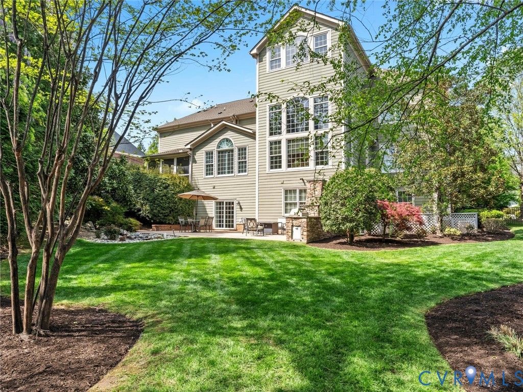 Originally built as the Orleans Homebuilders model home, this custom brick and stone residence offers 7,521 square feet of finished living space plus an additional 1,144 square feet of unfinished walk-in storage, all situated on nearly a half-acre lot. Exterior highlights include aggregate concrete walkways and driveway, a rear patio with stone fireplace, irrigation system, waterfall feature, and a three-car side-entry garage. Inside, the floor plan begins with a dramatic two-story foyer with marble flooring and a curved staircase. Formal living and dining rooms feature elegant moldings, while a private home office offers built-ins and glass French doors.The two-story family room opens to the kitchen and features a gas fireplace with new quartz surround flanked by built-in cabinetry. The kitchen offers a center island, walk-in pantry, Wolf and Sub-Zero appliances, and new quartz countertops. A vaulted eat-in area with additional cabinetry and bar seating adjoins the kitchen and opens onto a screened porch. Leading into the dining room is a bar area with ice maker, sink, and beverage center. The primary suite offers separate his-and-her bathrooms and walk-in closets, plus a sitting area with built-ins, breakfast bar, Sub-Zero mini refrigerator, and sink. Her bath includes a jetted tub, walk-in shower, oversized vanity, and private water closet, while his bath offers a walk-in shower. The second floor includes an ensuite bedroom, two additional bedrooms with a Jack-and-Jill bath, and a loft with built-in desk area. The walk-up third floor can serve as a fifth bedroom, recreation room, or flex space. The walk-out basement offers a spacious recreation room with kitchenette, pool table area, and walk-in wine closet. Freshly painted throughout with new carpet. Located in the coveted Freeman High School district and near many of the area's top private schools, just off Sleepy Hollow Road connecting River Road and Derbyshire with easy access to Patterson Avenue, Tuckahoe Shopping Center, and Stony Point Fashion Park.