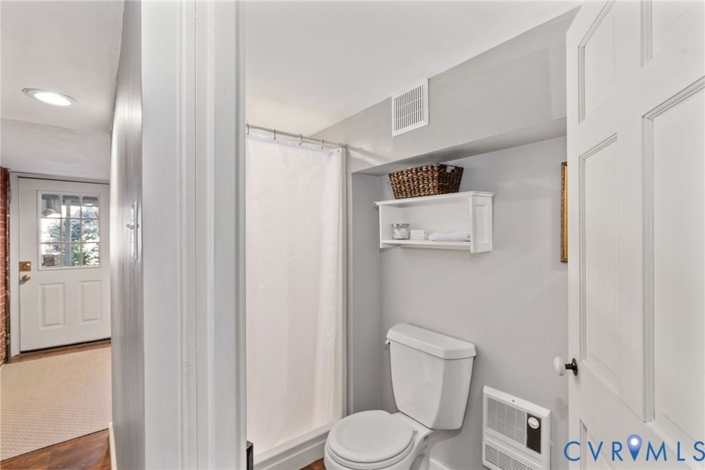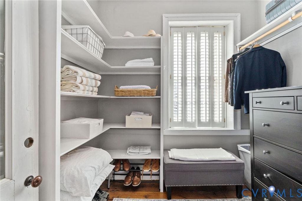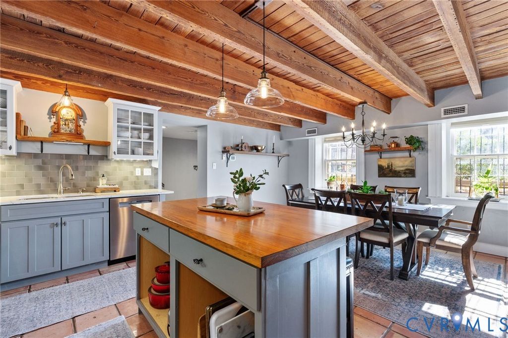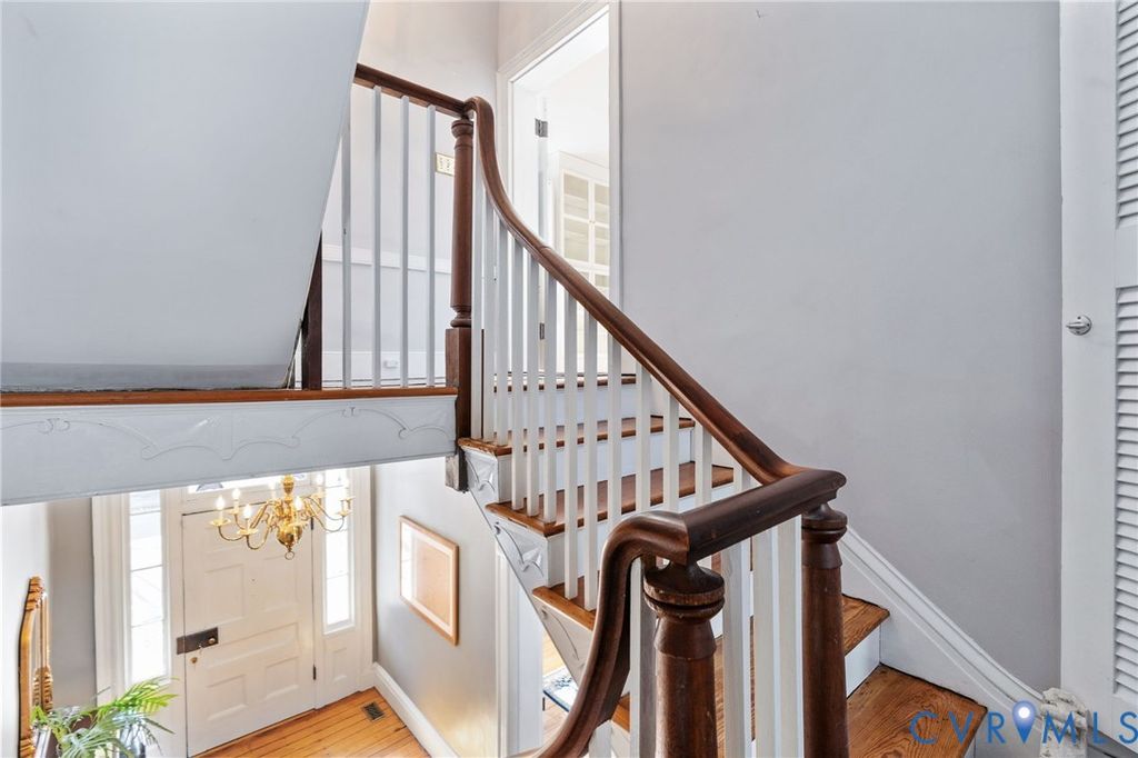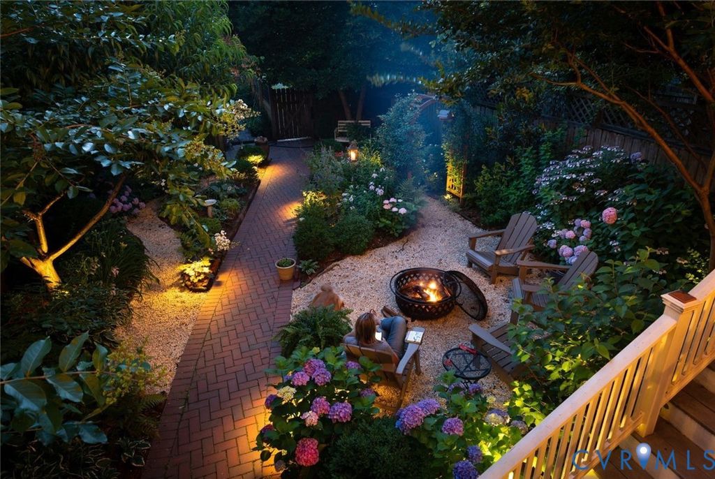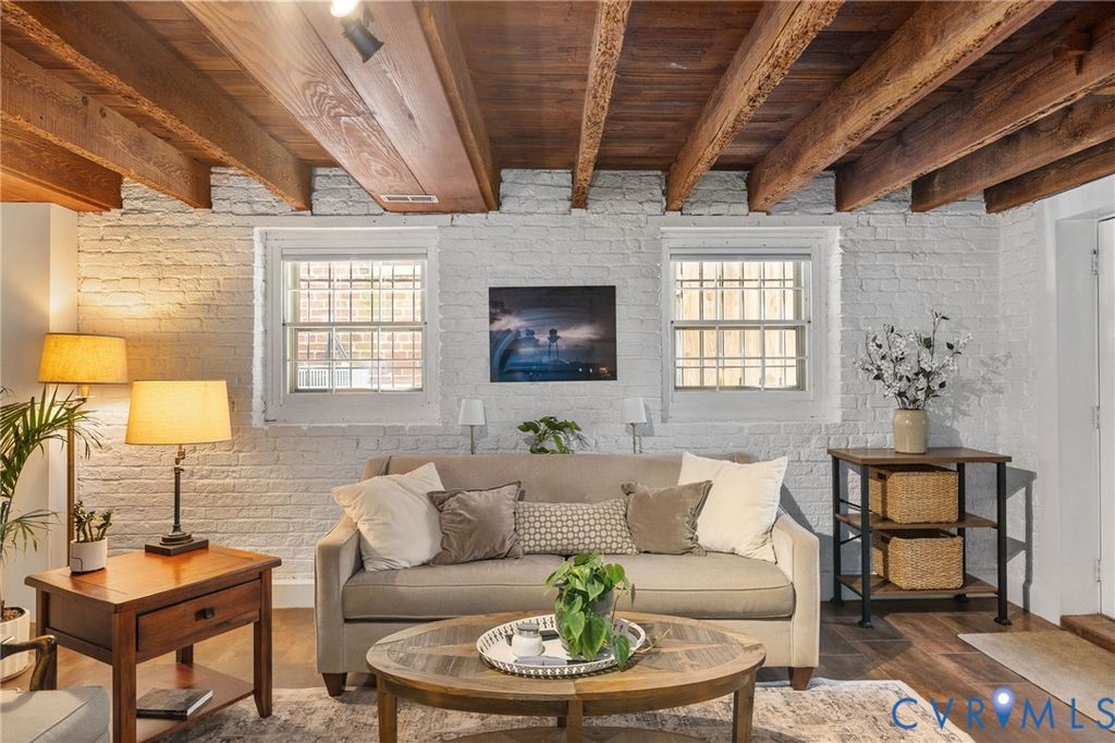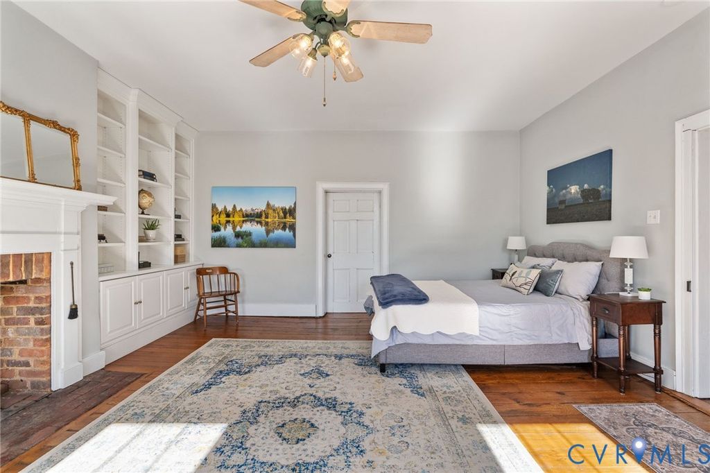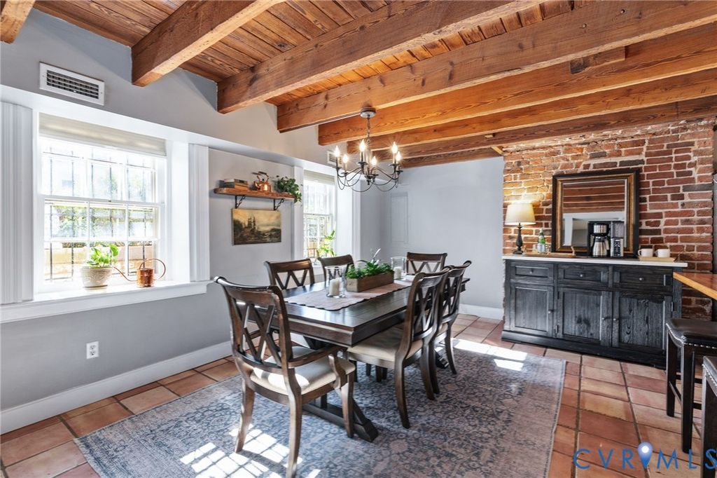 Looking for a truly historic gem? The Adams-Crump House (c. 1813) stands as one of the neighborhood's finest examples of early Federal architecture with later Greek Revival influence. This beautifully restored brick residence offers approximately 3,800 square feet across four finished levels, including a finished English basement, and retains remarkable original details such as heart pine floors, original hardware, multiple fireplaces, and historically appropriate moldings. The main level features a gracious entry hall with the original staircase, a formal living room at the front, and a large rear office or library with fireplace and built-in bookcases. Original working French doors allow the spaces to flow together or remain private. A light-filled morning room overlooks the garden. The finished English basement showcases exposed brick and beams, a spacious eat-in kitchen, and a welcoming family room centered around an antique stove, with direct walk-out access to the garden. The second floor includes two generous bedrooms with fireplaces, a primary bath, and a traditional trunk room ideal as a dressing room or closet. The third floor offers a private retreat with a bedroom, fireplace, sitting room, exposed beams, and additional attic storage. A three-story rear veranda with double balconies overlooks the mature backyard garden and offers sweeping city views and spectacular sunset vistas. The landscaped grounds feature established perennials, front and rear irrigation, and a dedicated fire pit area. A tool and storage shed adds convenience. The fenced rear yard also includes two off-street parking spaces on a private parking pad with a 30-amp RV hookup. Located on wide, tree-lined 27th Street and walkable to parks, restaurants, coffee shops, and neighborhood shops, this is a rare opportunity to own a true Church Hill landmark. Fire in the fireplaces has been digitally added to the photos.