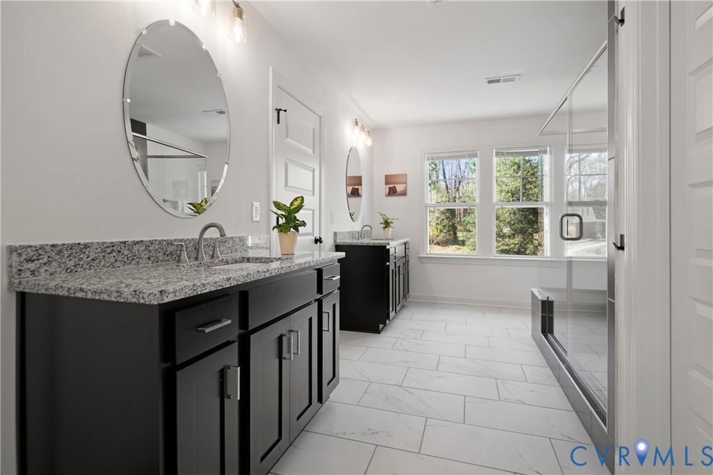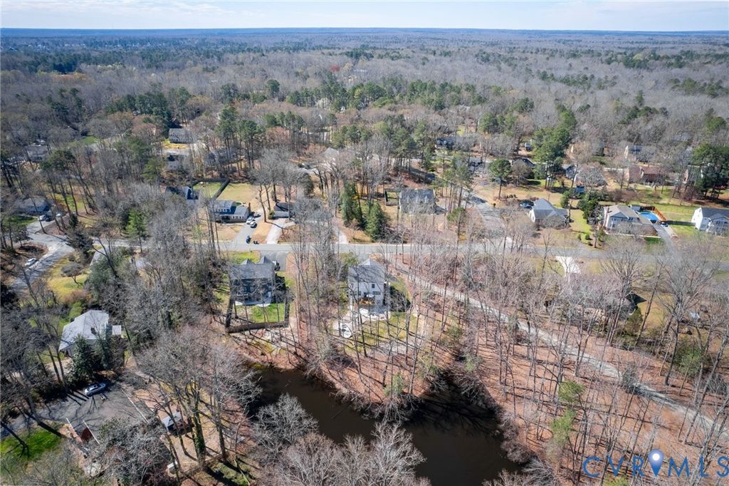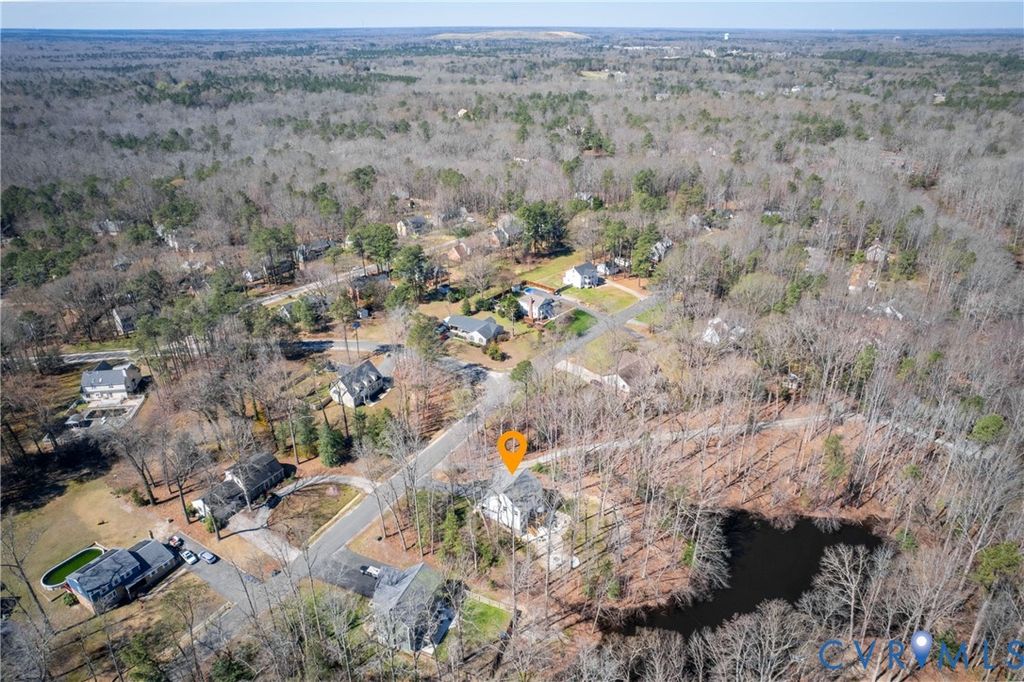 Modern farmhouse perfection overlooking a serene pond! Avoid the wait of new construction with this three-years young home that perfectly captures contemporary rural charm! The heart of the home features an open layout where the living room fireplace invites relaxation near the dining area and gourmet kitchen. Culinary enthusiasts will appreciate the granite countertops, stainless steel appliances, and large center island. Close by deck access invites in a ton of natural light and encourages gatherings al fresco. French doors reveal a dedicated office space, perfect for remote professionals utilizing the available high speed internet. Retreat to the upper level to find a primary suite defined by tray ceilings, dual walk-in closets, and a spa-like bath with double vanities and a spacious tiled shower. Three additional bedrooms and a dedicated second floor laundry room ensure daily tasks are effortless. The finished walk out basement adds versatile living space and a third full bathroom, complemented by a massive unfinished area for dry storage. Transition outdoors to an impressive multi level oasis featuring a deck and a patio with a fire pit. Beyond the lawn, enjoy private access to a tranquil pond tucked into the woods. Located in central Chester, residents enjoy quick access to Route 10 and Interstate 95 for easy commutes to Fort Gregg-Adams, local boutiques, and diverse dining options. Schedule your visit today to see why this turnkey property is the one you have been waiting for!