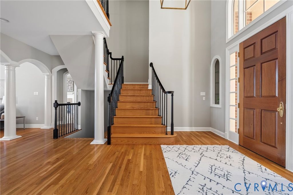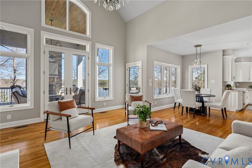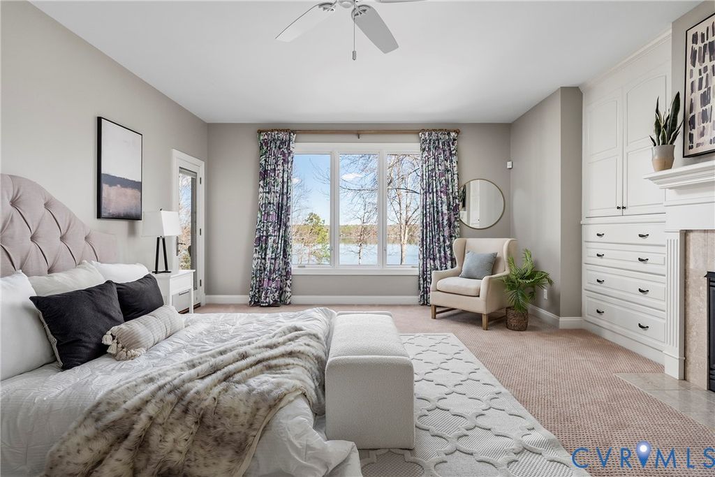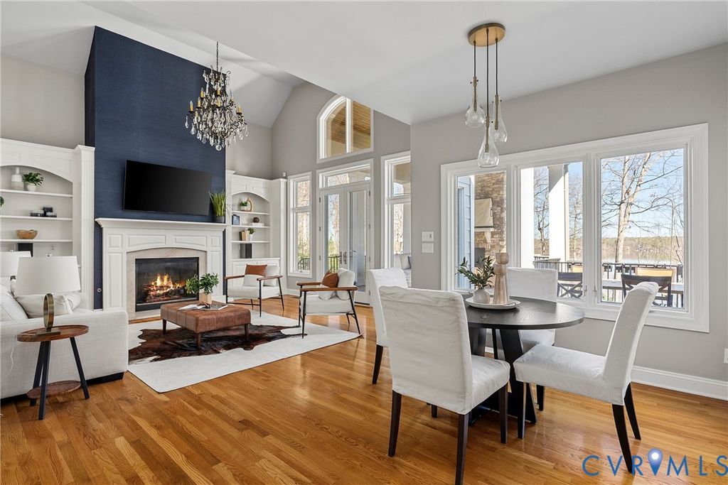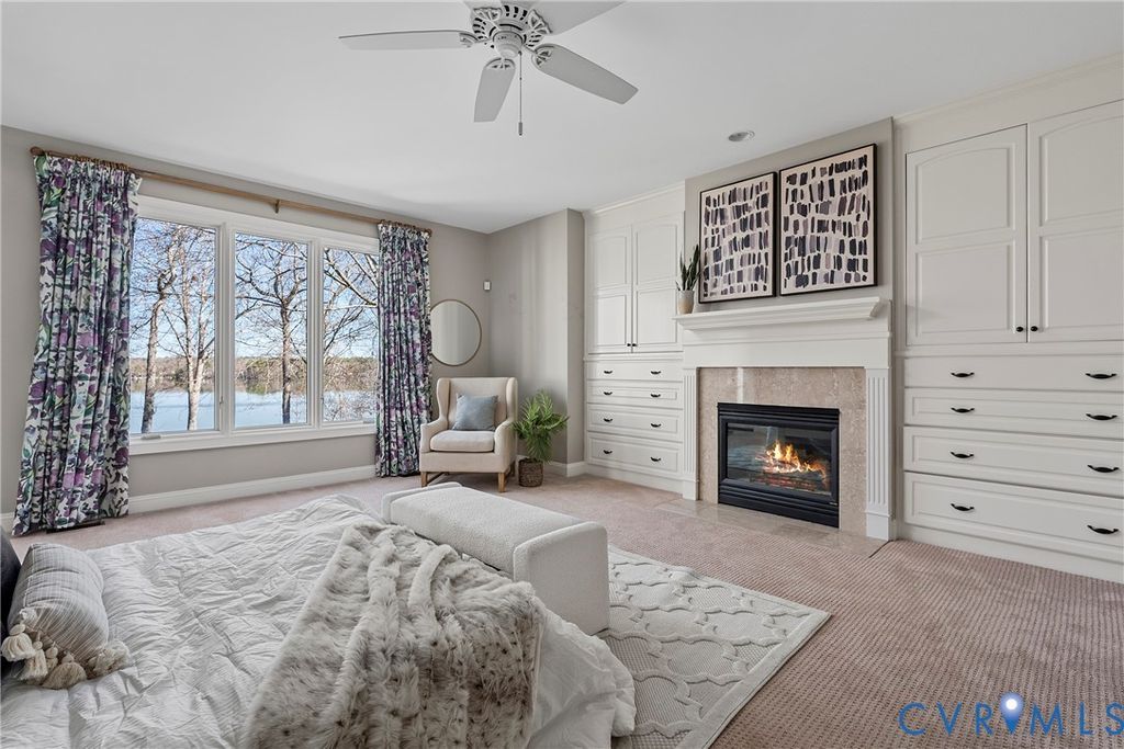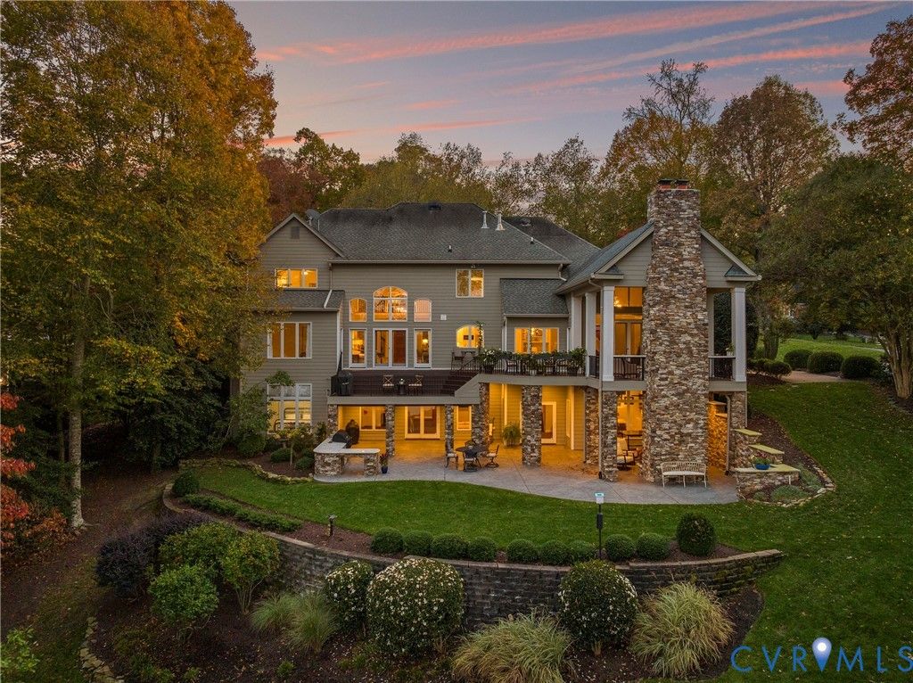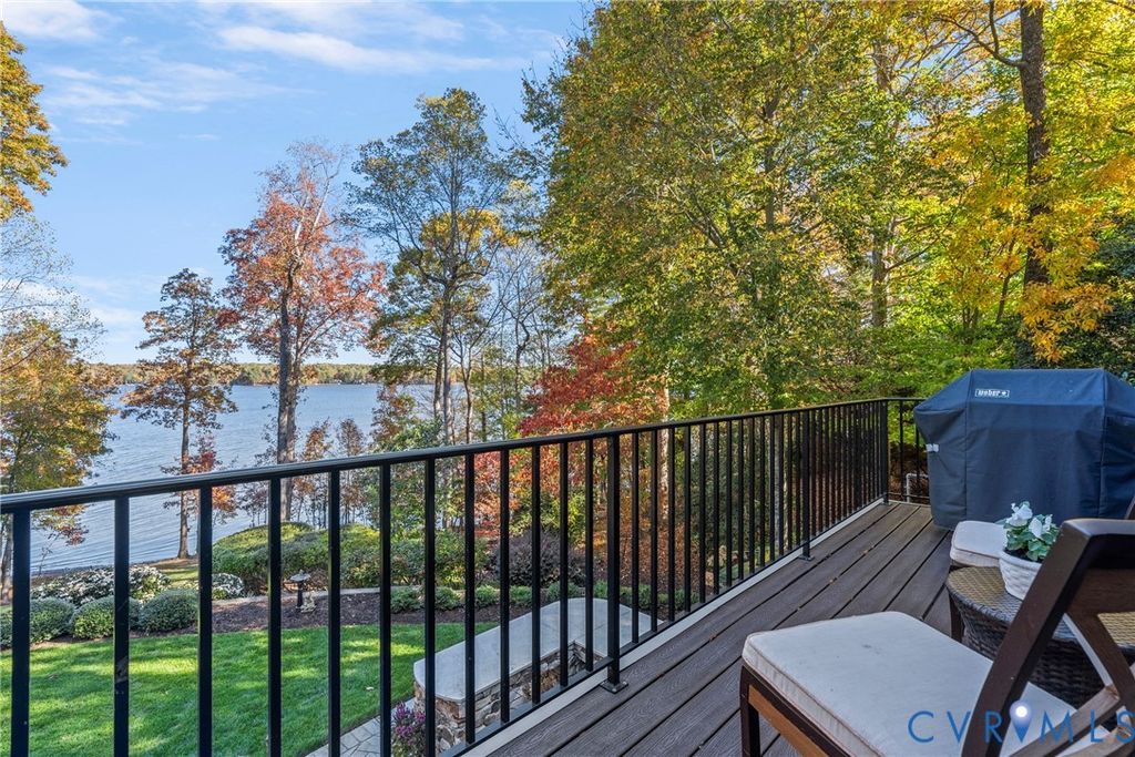 Welcome to this exceptional waterfront 5,884 sq ft home in the heart of Woodlake, offering panoramic water views and luxury at every turn. This 5-bedroom, 4.5-bath home sits on one of the best lots on the Swift Creek Reservoir, with multi-level outdoor spaces designed to take full advantage of the peaceful, private setting. The elegant entryway opens to a grand dining room with detailed trim and moldings. Soaring 10-foot ceilings and floor-to-ceiling windows in the formal living room showcase breathtaking views of the reservoir, while the inviting family room features a gas fireplace and custom-built bookcases. The bright, open kitchen has been freshly painted in 2024 and includes a large center island, new range, and expansive breakfast area"”ideal for entertaining. The first-floor primary suite is a true retreat, offering abundant built-in storage, a gas fireplace, and a spa-inspired bath with tiled floors and a soaking tub with tile surround. Upstairs, you'll find three spacious bedrooms"”including one with a private ensuite bath and walk-in closet. The finished walkout basement is an entertainer's dream and adds another layer of luxury with a fifth bedroom suite, a full bar, gas fireplace, den, exercise room with mirrors, and direct access to multiple outdoor living spaces. Relax year-round on the breezy covered porch with gas fireplace or unwind on the lower patio with stamped concrete, wood burning fireplace and a new built-in Alfresco grill. Additional highlights include a freshly painted interior and trim (2024), three interior fireplaces, and a convenient 3-bay side-entry garage. Enjoy the full Woodlake lifestyle with access to miles of paved trails, tennis and swim clubs, fitness center, parks, fishing docks, boat launch ramps, and more. Homes like this rarely come to market"”don't miss your chance to experience premier waterfront living in one of Chesterfield's most desirable communities.