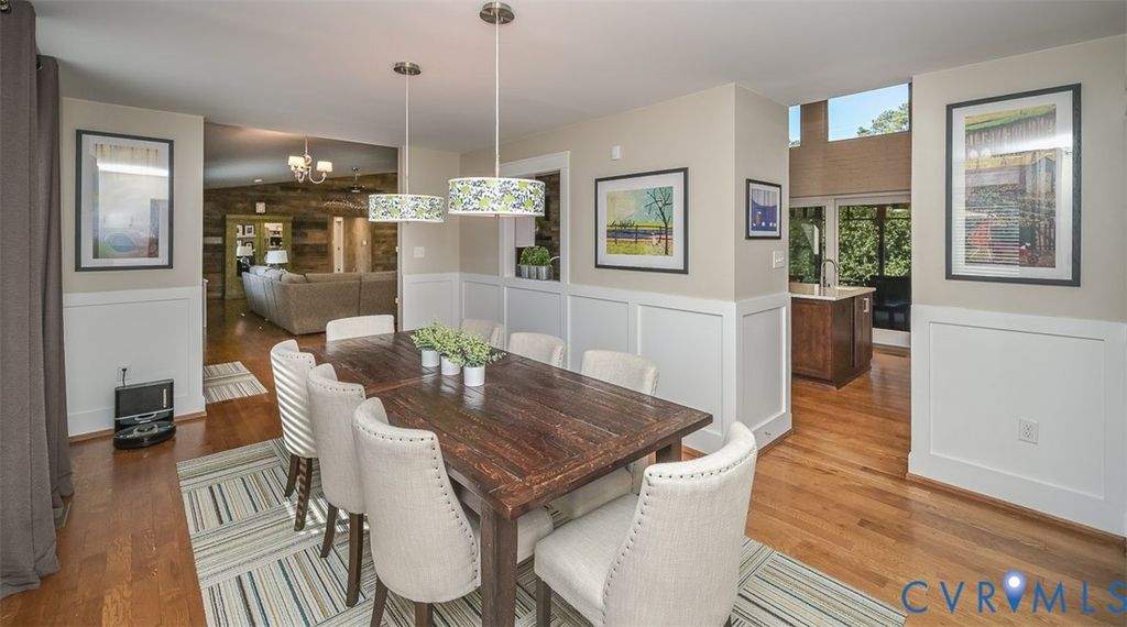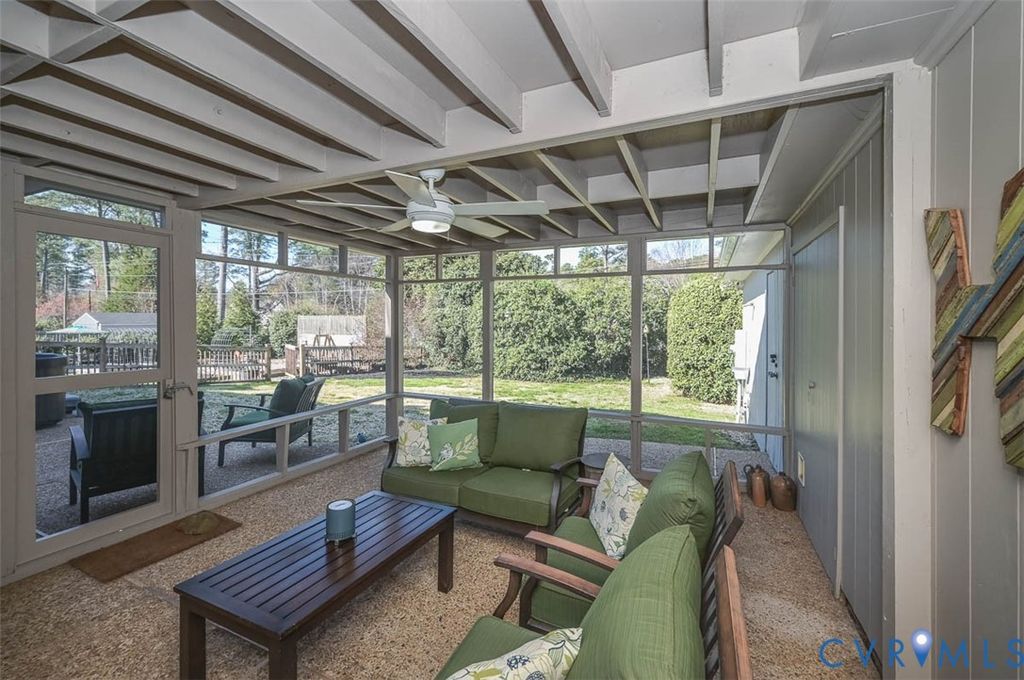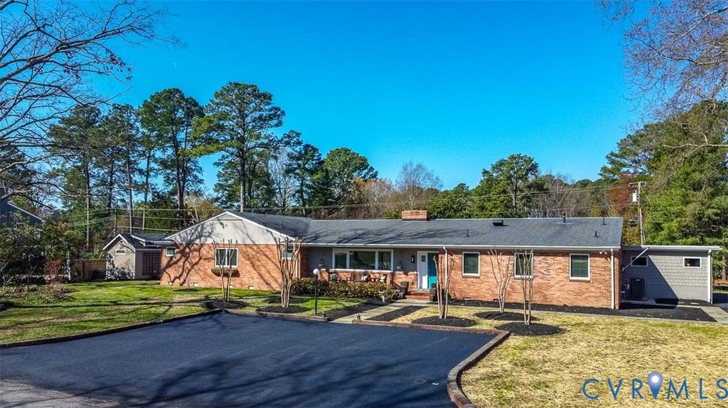 Sleepy Hollow! One-of-a-kind mid-century California-style ranch custom built by Tommy Harris. Completely rebuilt to the studs 2013-14. Solid brick-over-block construction on .66 acres w/a fenced, private rear yard. One block to Collegiate School - 2 miles to U of R! The living room is filled with natural light, featuring an expansive front window and a stunning 47-foot vaulted wall of glass across the back with transoms, three 8' wide sliding glass doors, and stone fireplace. Morning light pours in from the east, while western sunsets can be enjoyed from the back of the home, in the garden and from the screened porch. Seamless hardwood floors run throughout the living areas, complemented by solid-core doors, custom wood trim, 28 recessed lights (many dimmable), & 6 ceiling fans. The kitchen is built for gathering with custom cherry & maple cabinetry, quartz counters, a 10' island with seating for five, 6-burner professional gas stove top, double convection ovens, a walk-in pantry plus appliance pantry, and a new dishwasher (2026). The dining room comfortably seats 10-12 guests. The primary suite offers a spa-like bath with a cast-iron freestanding tub, solid-surface shower walls/ceiling, frameless glass door, quartz counters, and a 13' x 12' walk-in closet w/integrated washer/dryer hook-ups. Major systems updated: 1-HVAC (12/2024), Rinnai tankless H2O heater (12/2025), whole-home generator serviced yearly, and a new roof on the garage & screen porch (2023). Plumbing and electrical fully replaced in 2014 w/400 amp service. Anderson thermal windows/doors. Central vac. 3-Bay garage w/storage closets, Hardiplank siding, and insulated garage door. Extras: Freshly painted exterior doors, driveways repaved (3/26), abundant storage inside & out, Japanese maple garden in front, a farm garden w/irrigation/electric in back w/lots of additional yard space, offering flexibility for a future pool. Screened porch off the kitchen (possible future sunroom conversion). Encapsulated crawl space. See pictures and virtual tour.