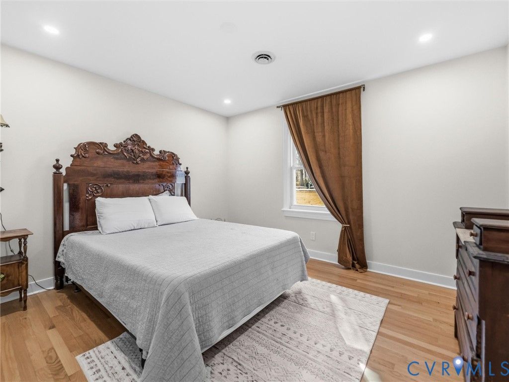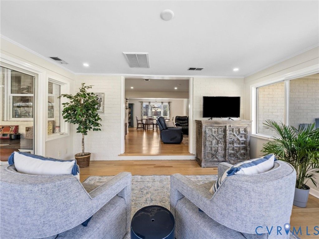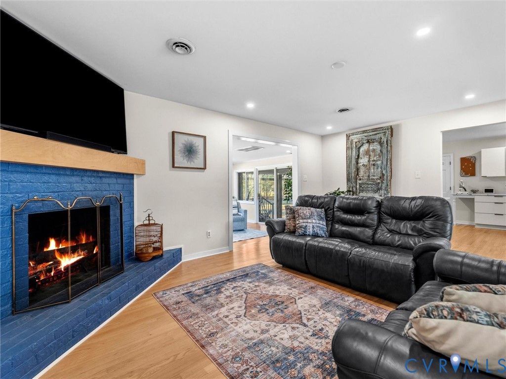 Welcome to this thoughtfully designed one-level home in the heart of Midlothian, offering a rare combination of character, space, and convenience. Situated on an expansive 1.3 acre lot"”an uncommon find in this highly desirable and growing area"”this property provides the perfect blend of privacy and accessibility. Inside, bright hardwood floors and recessed lighting run throughout the home, creating a warm and inviting atmosphere. The spacious living areas are designed for both connection and flexibility, with pocket doors that allow for privacy when desired. The kitchen features new quartz countertops, custom cabinetry and shelving, and a layout that provides a focused and functional culinary workspace. Just off the kitchen, a practical mudroom and laundry area offer convenient access to the semi-enclosed carport and outdoor spaces. The natural flow of the home continues into a sun-filled sunroom and then into the expansive three-season room"”an ideal space for relaxing or entertaining. This inviting area features stamped concrete floors, a wood-burning fireplace, and a built-in bar, creating a unique indoor-outdoor gathering space that can be enjoyed throughout much of the year. The single-level layout includes a spacious primary suite with a beautifully renovated ensuite bath featuring a double vanity, heated tile floors, heated towel rack, bidet toilet, and a laundry chute connected directly to the laundry room. Three additional bedrooms provide flexibility for family, guests, or home office needs, including a private guest suite with its own en-suite bathroom. All bathrooms have been tastefully renovated with updated tile and fixtures. Step outside to enjoy a secluded, park-like backyard where mature trees and open space create a peaceful retreat rarely found in this location. Major systems have been thoughtfully maintained, including a new HVAC system installed in 2023. Homes offering this much space, privacy, and single-level living in such a convenient Midlothian location are increasingly hard to find.
