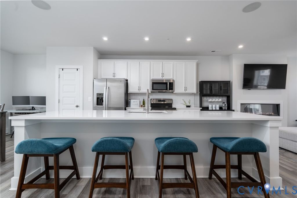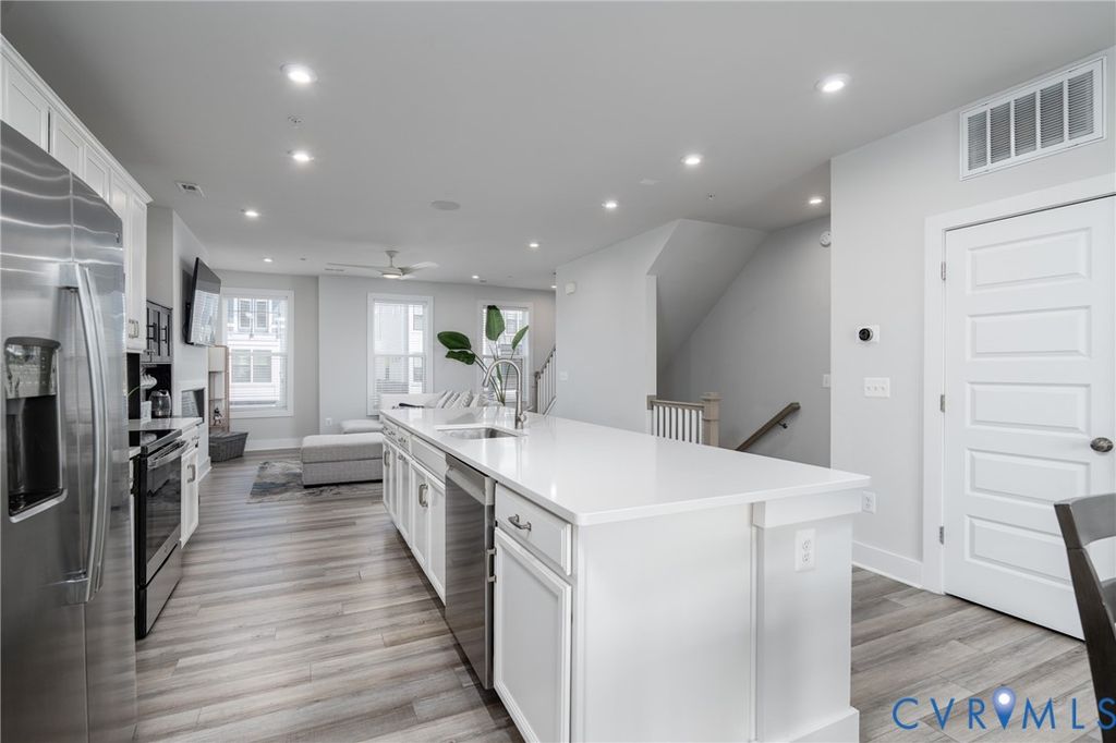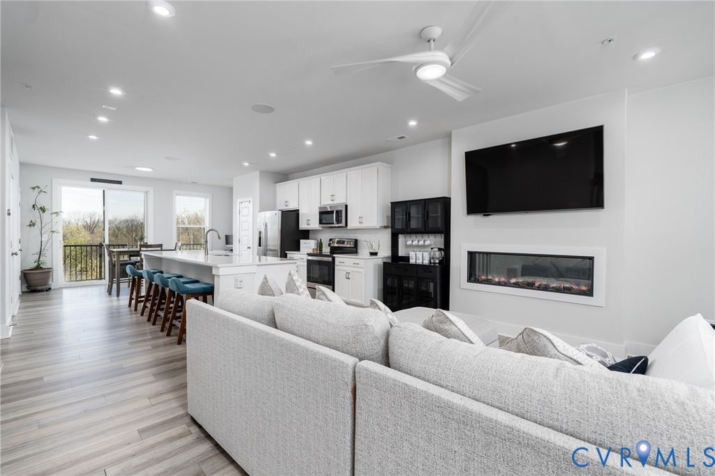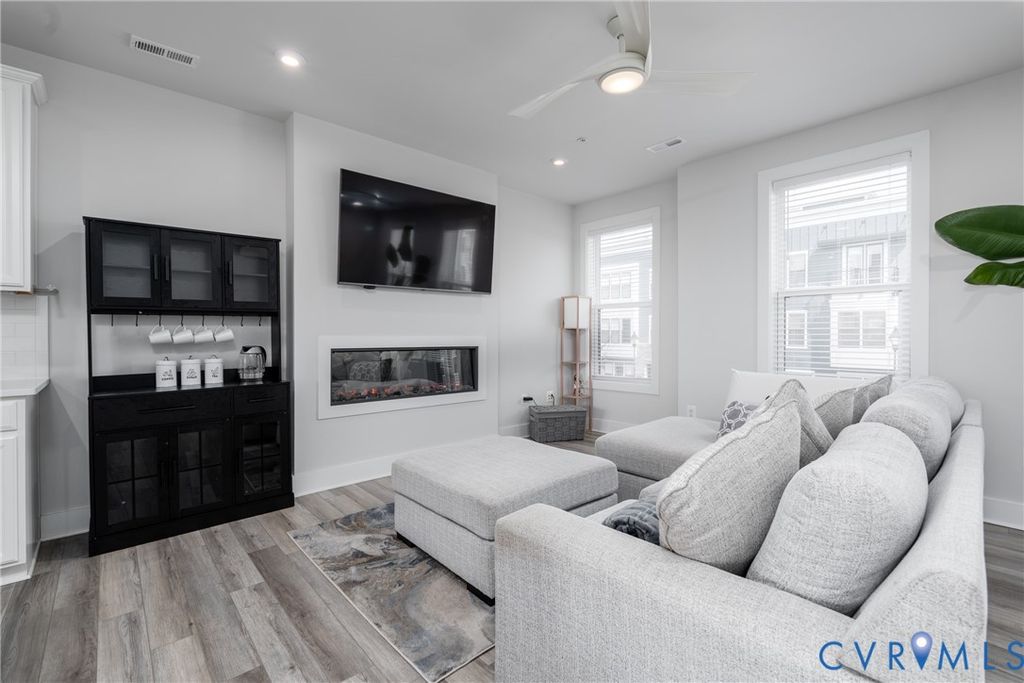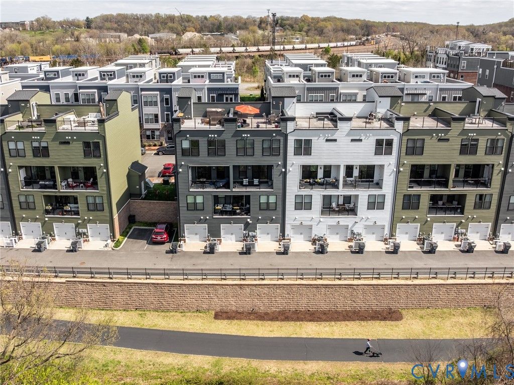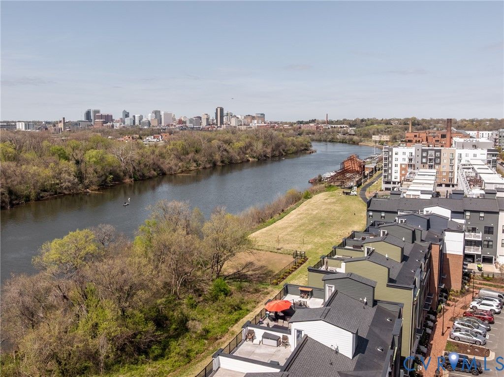 Experience elevated city living in this exceptional modern 3 Bed 3 Bath townhouse, where striking design meets an unbeatable location along the scenic riverfront. Perfectly positioned overlooking the Virginia Capital Trail, this home offers a rare blend of urban energy and natural beauty, just steps from top-rated restaurants, local breweries, and boutique shops. From the moment you enter, you're greeted by a thoughtfully designed, open-concept layout filled with natural light and framed by "unbelievable James River and skyline views". Expansive windows showcase wide water view from nearly every level, creating a seamless connection between indoor living and the breathtaking surroundings. The main living level is an entertainer's dream, featuring a sleek, modern kitchen with quartz countertops, premium stainless steel appliances, custom cabinetry, and a generous island that flows effortlessly into the living and dining areas, all set against a stunning river and city backdrop. Upstairs, the bedrooms continue to impress with "panoramic water, city and skyline views", offering a tranquil retreat above it all. The primary suite is a true sanctuary, complete with a spa-inspired bath and refined finishes designed for comfort and style. the lower level offers home theater and workout space with access to the garage. Crowning the home is a spectacular rooftop terrace, where wide-open views of the "James River and downtown skyline" create an unforgettable setting for relaxing evenings, entertaining guests, or simply soaking in the beauty of the city. With direct access to the Virginia Capital Trail and walkability to dining, breweries, and shopping, this modern townhouse delivers a lifestyle that is as vibrant as it is serene. A rare opportunity to own a home where almost every level offers a view, and every day feels extraordinary.