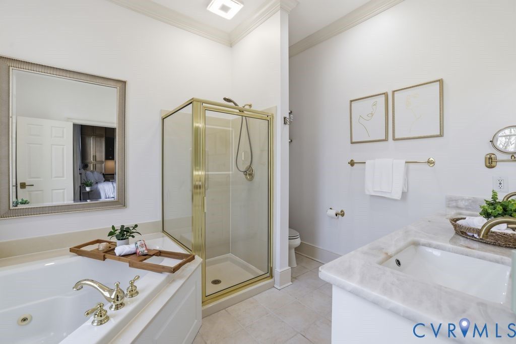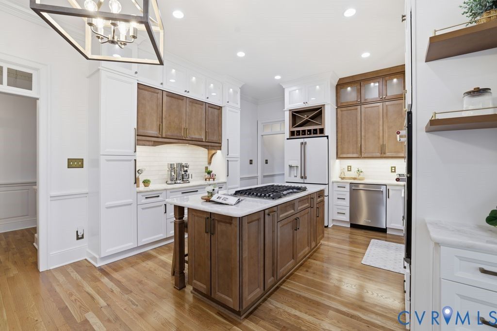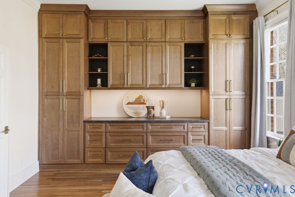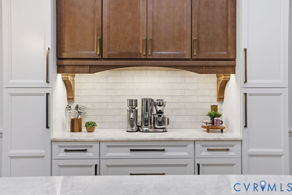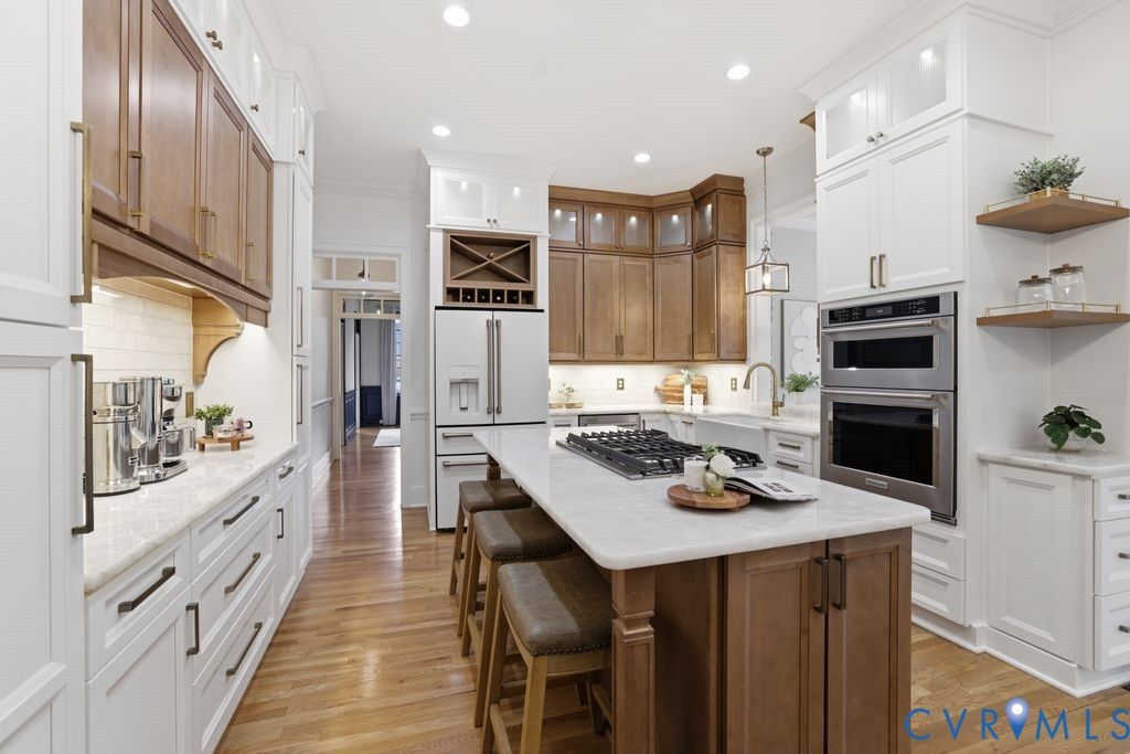 Nestled within the prestigious Woodland Pond community, this custom-built J.D. Robbins home captures the Williamsburg-inspired architecture while seamlessly incorporating today's classic modern elegance. Privately situated on a 2.4 acre oasis which directly borders Virginia's largest state park, "Pocahontas State Park" and framed by lush landscaping, this home offers a rare combination of refined craftsmanship and estate-style living just minutes from Richmond and modern conveniences. The quality is unmistakable, with 10-foot ceilings on the main level, 9-foot ceilings on the second, wide hallways, trim packages, detailed brick hearths and period-style millwork create a sense of integrity that is increasingly hard to find. The thoughtfully renovated kitchen is a dream with "Crystallo Superiore" quartzite countertops, beautiful modern cabinets, Kraus farmhouse sink, Kitchen-Aid appliances including a built-in oven, 5-burner gas cooktop with direct vent, built-in pantry and microwave with convection/air fry capability. Retreat to the first-floor primary suite that offers a floor to ceiling modern wardrobe wall unit, soaking tub, dual vanities and a generous walk-in closet. Secondary spaces are equally well-appointed, with spacious bathrooms featuring new vanities and quartzite countertop. The outdoor setting is as compelling as the interior with a massive covered porch overlooking the stamped concrete patio, two gardens - one designed for seasonal plantings and the other is ideal for cultivating fresh herbs/vegetables for homegrown living. There's also abundant storage in the oversized garage with transfer switch ready for generator or RV hook up and detached shed with new cabinetry and electrical. Highlights: Over $200k in updates since 2017, Complete Kitchen & Pantry & Laundry reno 2025, Paint 2025, Carpet 2025, Refinish Hardwood 2025, Vanities 2025, HVACs 2013 & 2020, Roof 2017, Water Heater 2016. Complete list of updates in supplements. Pool/Tennis/Pickleball/Clubhouse can be acquired through Woodland Pond.