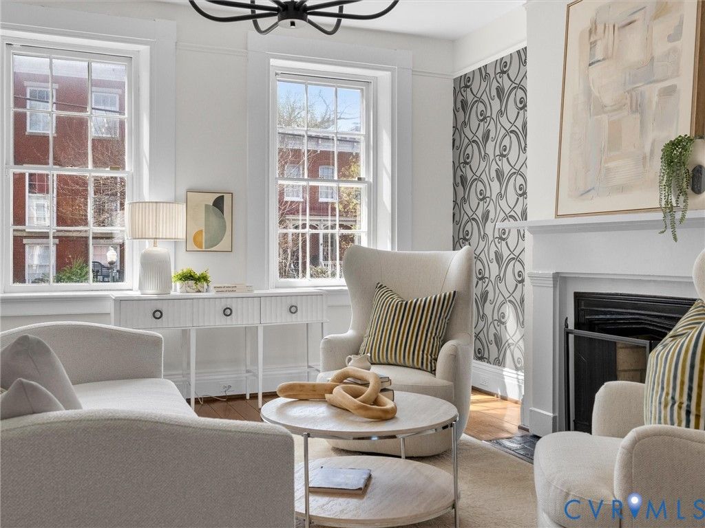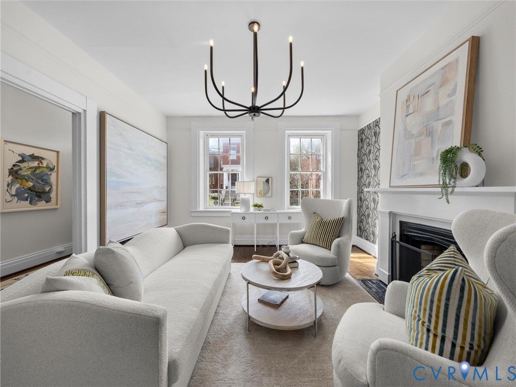 Nestled in the heart of historic Church Hill, this remarkable circa-1845 antebellum row home offers a rare opportunity to own a truly special piece of Richmond history. Rich with character and timeless appeal, this 4-bedroom, 2.5-bath residence blends classic architectural details with everyday livability in one of the city's most sought-after neighborhoods. Inside, you'll be welcomed with soaring ceilings, beautiful wood floors, and gracious living spaces full of warmth and charm, including two inviting living rooms on the main level, as well as an impressive seven fireplaces that further highlight the home's historic character. The English basement features a dining room, half bath, and kitchen, offering a unique and functional layout ideal for both daily living and entertaining. The upper two levels each offer two spacious bedrooms and a full bath providing flexibility and room to spread out. Freshly painted from top to bottom, the interior feels refreshed while still honoring the home's historic soul. Step outside to a peaceful rear porch overlooking a large backyard, with the added bonus of private rear parking spaces and EV charging station. All of this in a prime location just moments from St. John's Church, VCU Hospital, Downtown Richmond and many beloved Church Hill restaurants, cafés, and neighborhood gems.