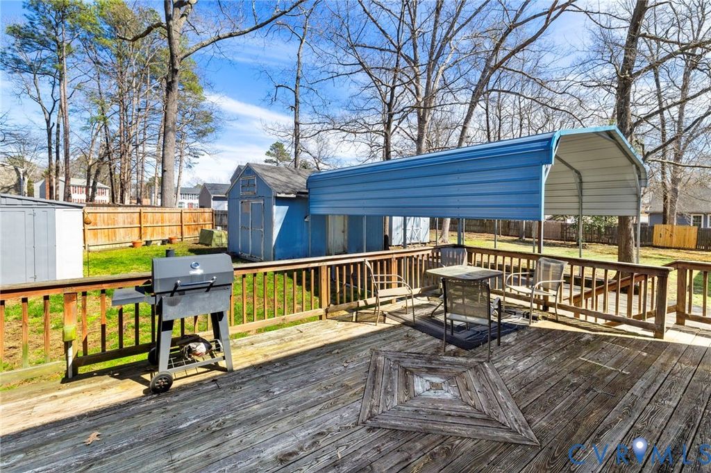 Tucked away on a private cul-de-sac lot, this charming Cape-style home offers the perfect blend of comfort, functionality, and inviting spaces. With 3 bedrooms, 2 full baths, and 1,374 square feet, this home is thoughtfully designed to maximize both living and entertaining. Step inside to a dramatic two-story family room filled with natural light, creating an open and airy feel. An interior balcony from the upper-level loft overlooks the main living space, adding architectural interest and charm. The gourmet kitchen features granite countertops, a stylish tile backsplash, contemporary cabinetry, and a dedicated dining area, with easy access to the rear deck, perfect for indoor-outdoor living. Two first-floor guest bedrooms provides flexibility for in-laws or out-of-town guests, along with a full hall bath complete with a vanity and tub/shower combo. Upstairs, retreat to a spacious loft area ideal for a home office, playroom, or additional living space. The primary suite offers a walk-in closet and a private en suite bath with a vanity and a walk-in shower with glass enclosure. Outdoor living shines with a large rear deck overlooking an expansive, fully fenced backyard with privacy fencing, perfect for relaxing, entertaining, or play. Additional features include a detached storage shed, carport, and detached shed for all your storage and parking needs. Don't miss this unique opportunity to own a beautifully designed home in a peaceful cul-de-sac setting!