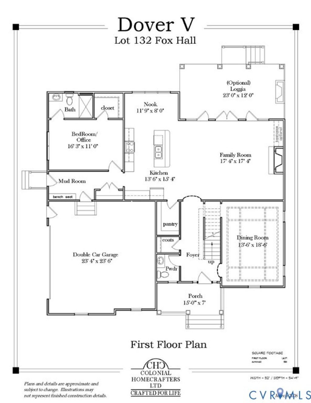 Brand new plan featuring FIRST FLOOR BEDROOM / FULL BATH/ WALKIN CLOSET(or Office)TO BE BUILT by Colonial Homecrafters, Ltd. The spacious family room with gas fireplace flows seamlessly into the designer kitchen equipped with Wolf appliances/ Miele dishwasher. An inviting morning/breakfast room is drenched in natural light through a triple window. The stunning dining room showcases a coffered ceiling and panel molding. Upstairs, the primary suite awaits boasting crown molding and luxurious bath and 2 large walk in closets. Three additional bedrooms and two full baths can be enjoyed on the second floor. For even more space, the third floor can be finished to include a recreation room plus bedroom/office and bath, adding 758 sq ft for an additional cost. Situated on a flat, irrigated lot with a 2-car garage, this home is estimated for completion 12 months from contract ratification. Home will not be started until it is under contract so plenty of time to make your own selections. FoxHall amenities include a pool( renovation for 2026), clubhouse, tennis courts, sidewalks, and soccer fields"”just minutes from top eateries, Short Pump Mall, and Routes 288/64. Optional 12' x 23' loggia available at additional cost. perfect for evening relaxation.
