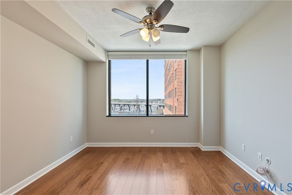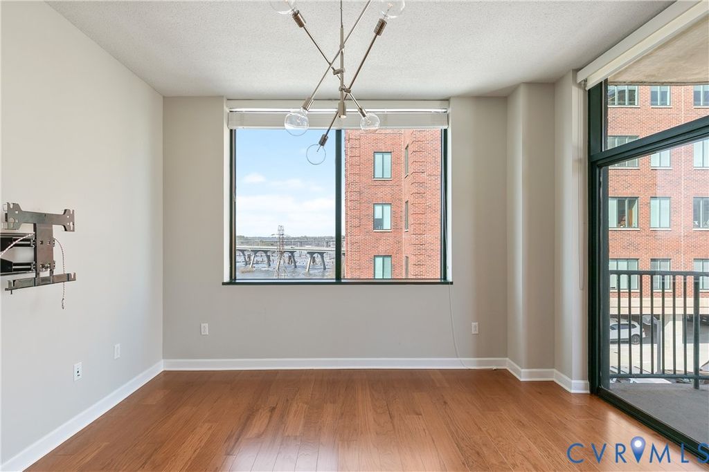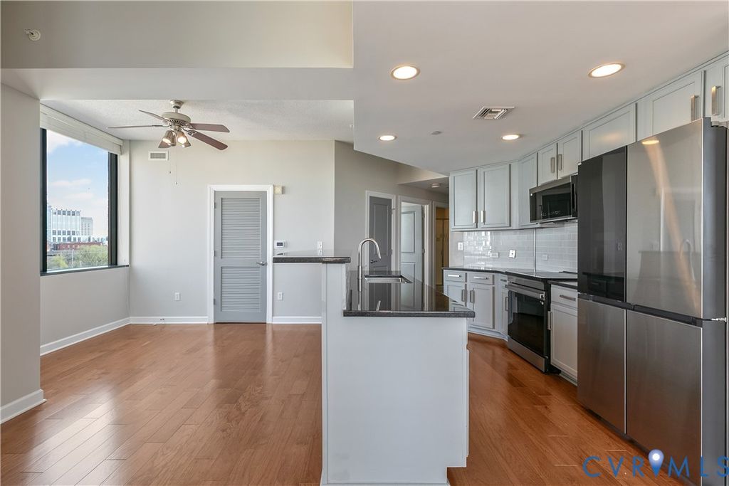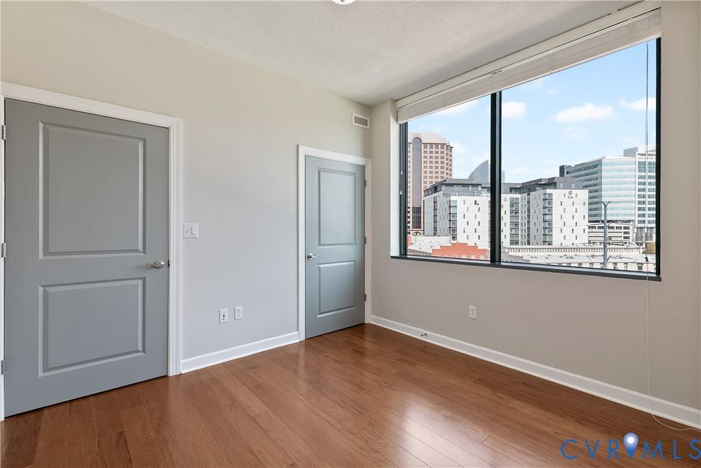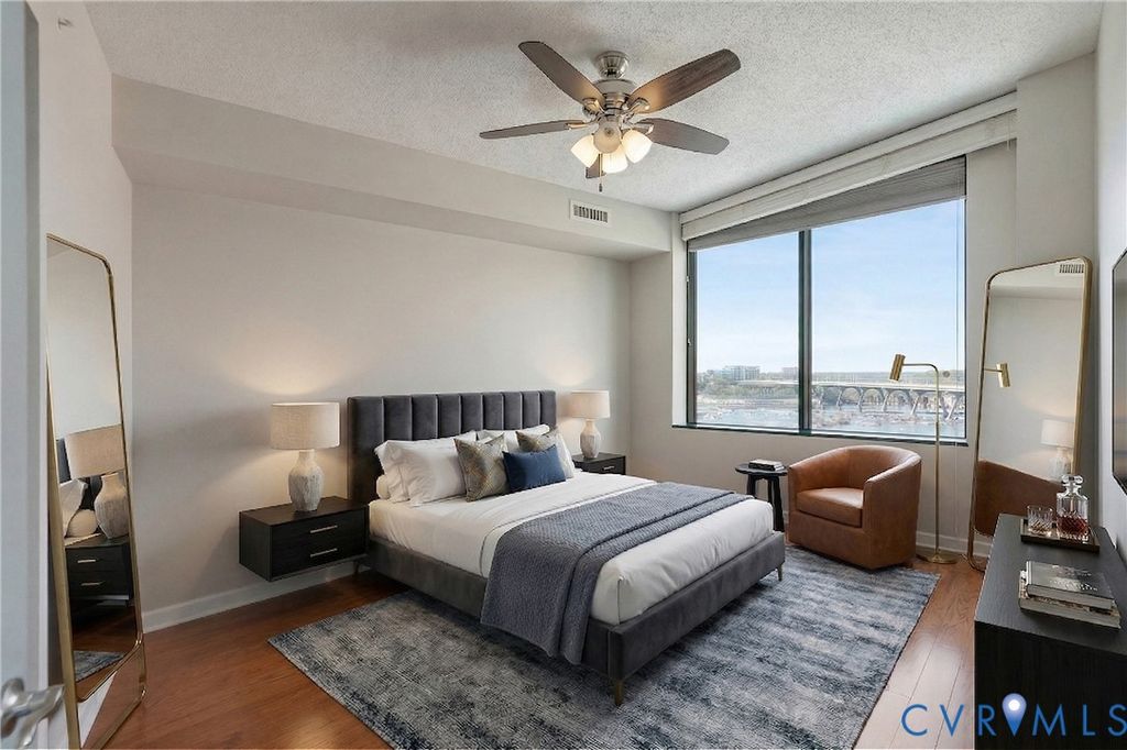 Welcome to Richmond living that feels effortless, elevated, walkable, and quietly impressive. Perched on the 8th floor of Riverside on the James, this residence offers the kind of views that rarely come available. To one side, the Richmond skyline. To the other, the James River. It's a home that feels both energized and grounded, depending on where you stand. Inside, the space is clean, modern, and tastefully updated. Hardwood floors run throughout, complemented by granite countertops and a full suite of brand new Samsung appliances. The open layout creates an inspiring, light-filled space during the day, and a moody, cinematic retreat at night as the glow of the Richmond skyline comes alive just beyond your windows. The primary suite is a calm, private retreat with a walk-in closet and an en suite bath featuring a double vanity, glass-enclosed shower, and tub to wind down at the end of the day. The additional bedroom and full bath offer flexible space, easily adapting to the way you live and work. What distinguishes this home is not just the interior, it's the lifestyle. Step outside and you're immediately connected to some of the most walkable and scenic paths in the city, including the Virginia Capital Trail and the Richmond Canal Walk. Enjoy dinner and drinks at Casa del Barco and Smokestack Pizza & Bar, or socialize with friends over a game of pickleball at Padel Plant. From there, it's a short walk to Brown's Island, the T. Tyler Potterfield Memorial Bridge, and Belle Isle. The Financial District, Shockoe Bottom, and VCU Medical Center are all within easy reach, making this location as practical as it is inspiring. For the buyer who values time, access, and design, this home removes friction. The building's private gym, in-unit washer and dryer, and two assigned, covered parking spaces add extra layers of everyday ease. This is more than a condo. It's a way of fully stepping into everything Richmond has to offer, with the city's energy, culture, and waterfront just outside your door.
