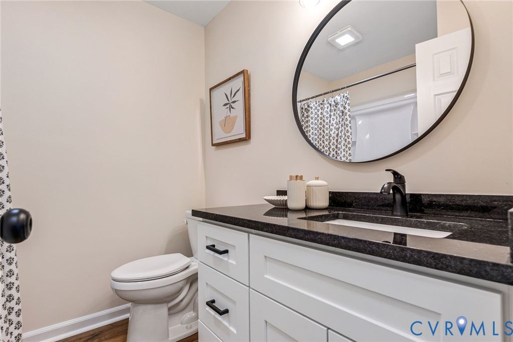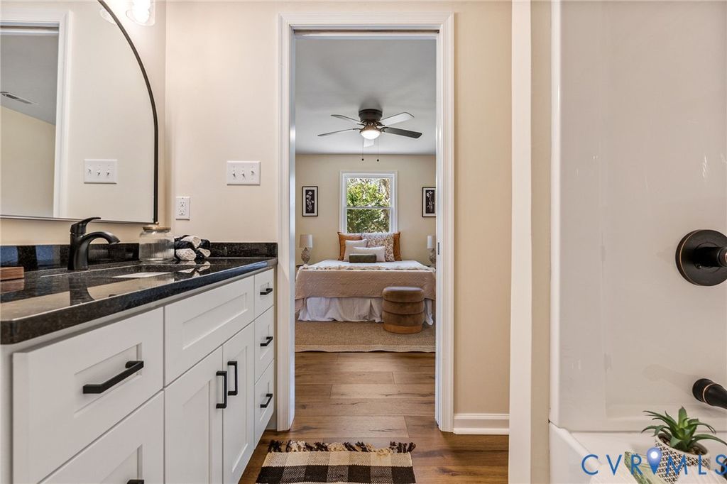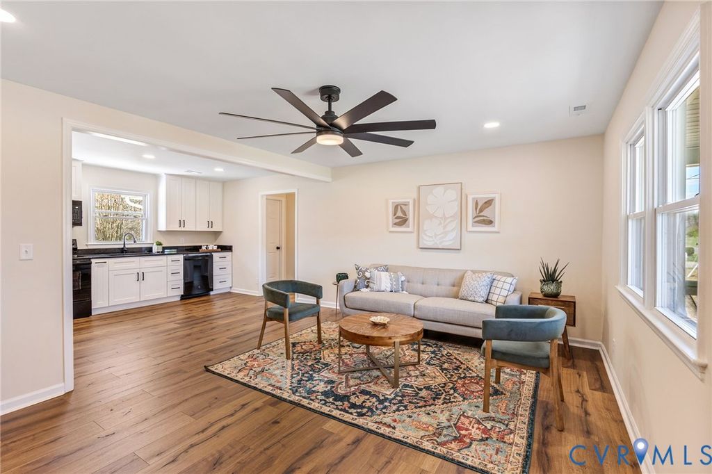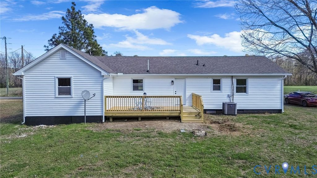 Beautifully updated ranch-style home situated on a full acre in Dinwiddie County! This move-in ready property features brand new LVP flooring, fresh paint throughout, and updated ceiling fans and light fixtures, offering a modern and cohesive feel from the moment you step inside. A charming front porch welcomes you into a spacious, open living room that flows seamlessly into the completely renovated kitchen. The kitchen boasts white cabinetry, black granite countertops, and brand new black appliances"”perfect for both everyday living and entertaining. The home offers a thoughtfully designed layout with bedrooms split between two wings. On the right side, you'll find the primary suite featuring a fully updated en-suite bathroom with a new vanity with a granite countertop, along with an additional generously sized bedroom. The left wing includes an oversized laundry room, three additional bedrooms"”one with its own private half bathroom"”and a beautifully updated hall bathroom. Step outside to enjoy the brand new back deck overlooking a large, private backyard with plenty of space to relax, entertain, or explore. With a roof less than 5 years old and extensive updates throughout, this home offers peace of mind and modern comfort in a serene setting. Don't miss this incredible opportunity!