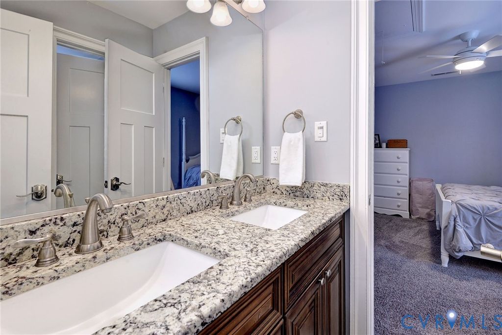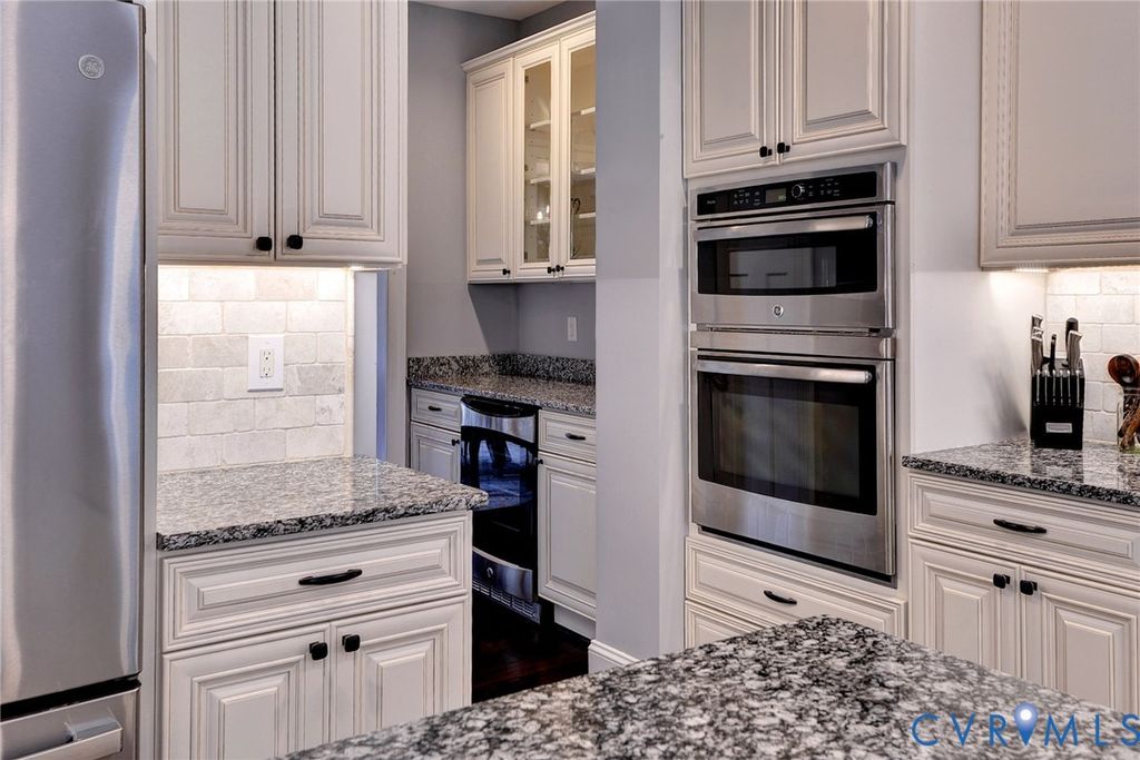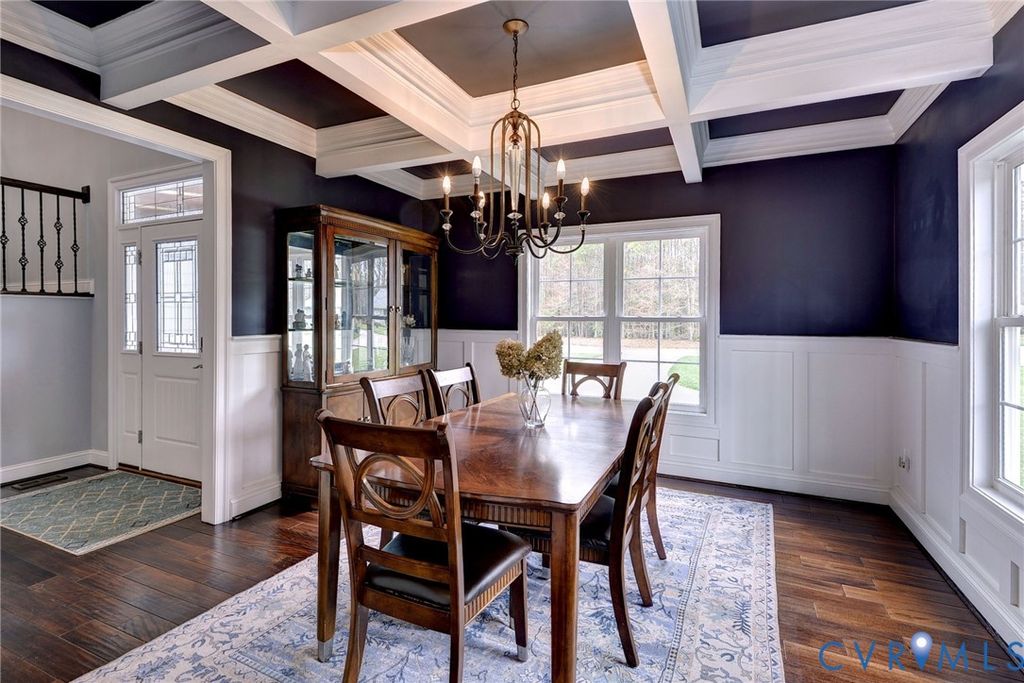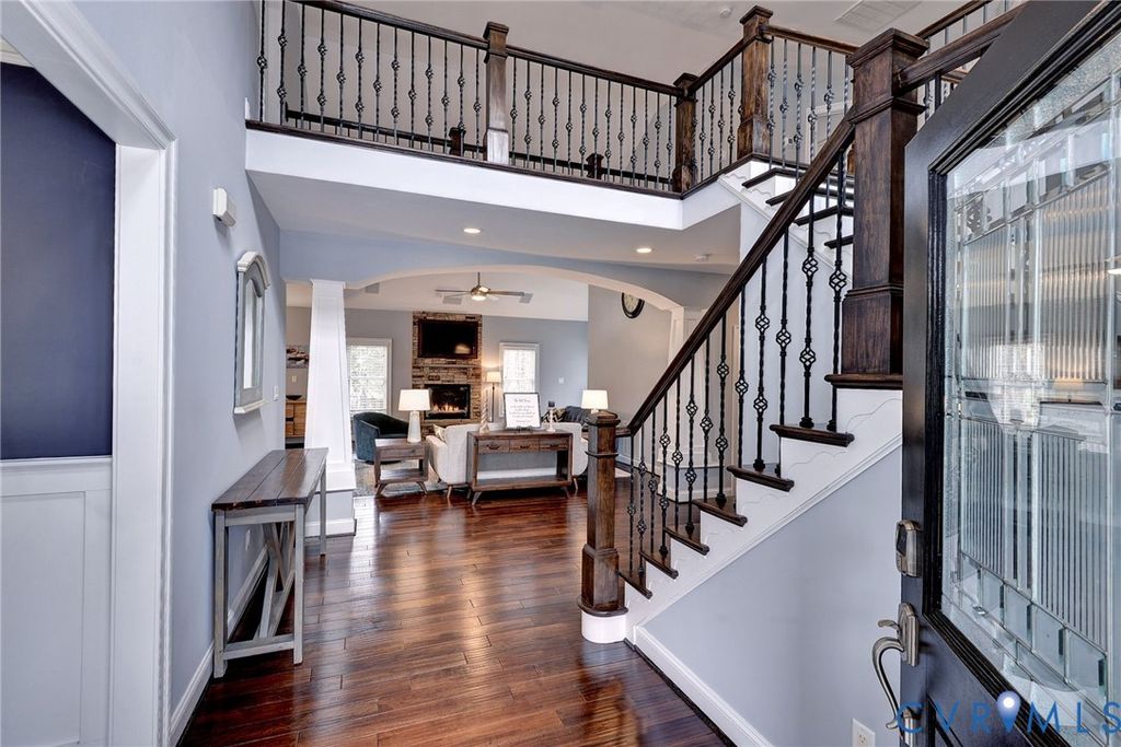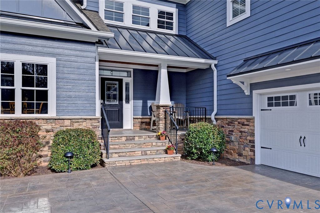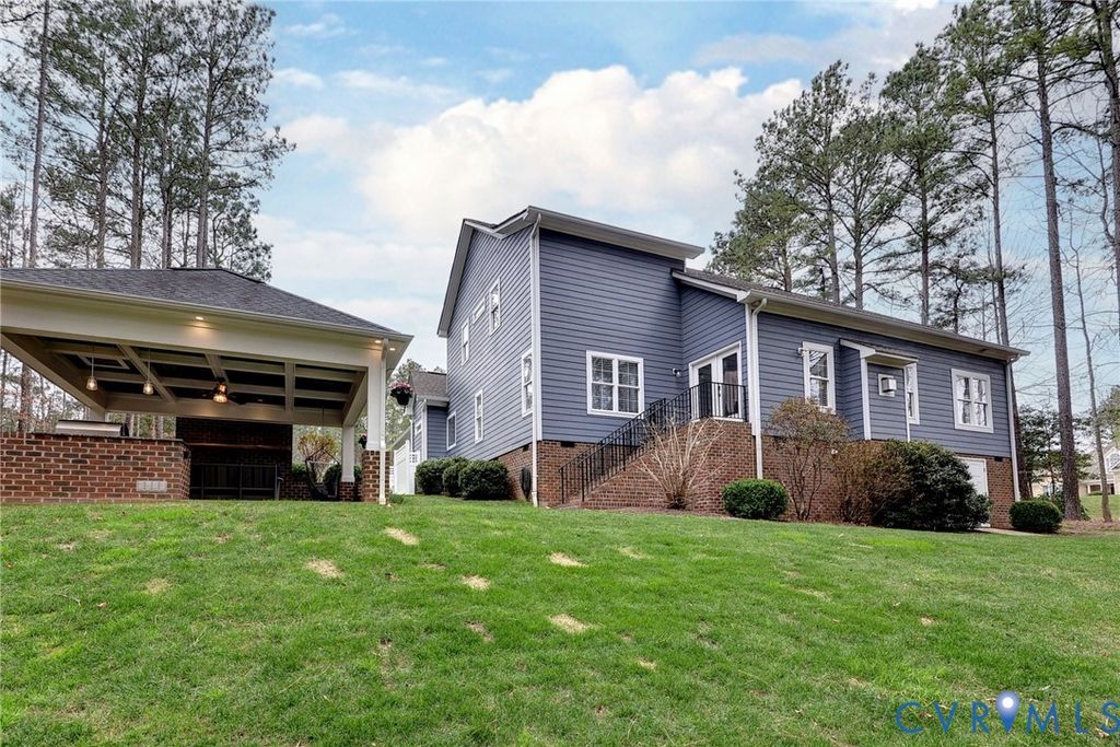Beautifully landscaped 0.84 acre corner lot in cul-de-sac. Grand foyer w/black rail staircase, spacious open balcony overlook. 5 bedrooms, 4.5 bath, primary suite w/tray ceiling, walk-in closets, spa inspired bath w/oversized shower, soaking tub & towel warmer. Family room flows into gourmet kit, gas fireplace w/river rock insert. Kitchen w/granite counter, custom cabinet, stainless steel appliances, breakfast area, Butler pantry w/beverage fridge, large pantry connect kitchen to formal dining room. Laundry rm w/folding table & storage. Oversized 2 car garage w/epoxy floor, built in cabinets, EV 50 amp receptacle, mini split system, & upgrades.4 bedrooms, 2 w/new carpet & 3 full baths,1 w/walk-in storage. Covered porch w/coffered lighted ceiling, brick wood burn fireplace, built in grill, & treehouse. Tall crawlspace w/garden equip storage. Whole house Generac generator. Access to golf course, tennis court, trails, pool, fitness center, dining, & more, I-64,I-295,I-95, Rhmd, Wburg, Wash D.C., VA Bch, Military bases, shopping, medical.