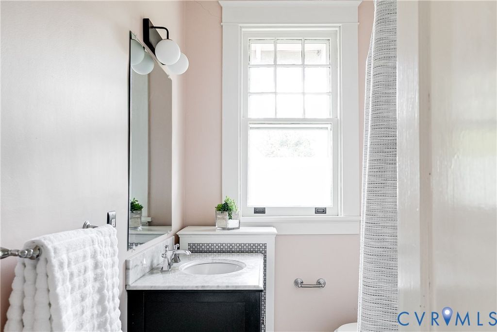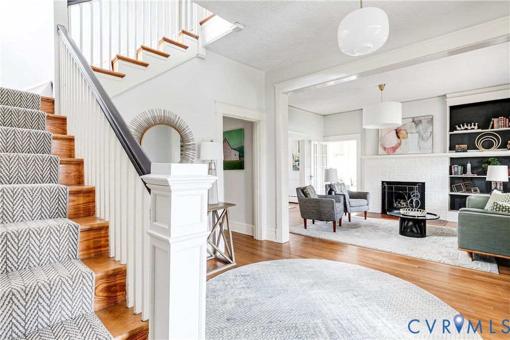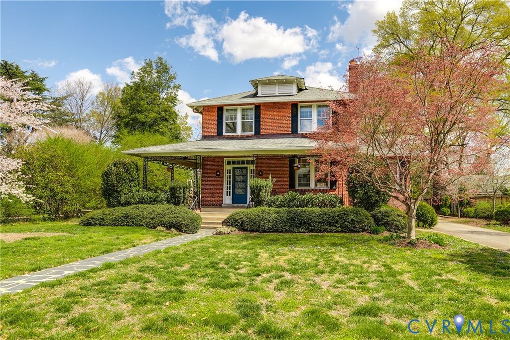 Welcome to 3917 Seminary Avenue, a stately home full of historic charm and modern updates in Ginter Park. This all-brick house features a gracious wrap-around front porch, hardwood floors throughout, 9-foot ceilings, and plenty of original details, all beautifully sited on a 1/2 acre lot. Enter into the light-filled home where the generous foyer flows into the spacious living room, which has a modern light fixture, a working gas fireplace, and built-in bookshelves. Adjacent to the living room is a lovely dining room with multiple windows, an updated powder room, and a sunroom with windows on three sides that gets incredible light. The classic kitchen has marble counters, soft green cabinetry, and a butler's pantry. The first floor is complete with a rear screened porch that opens onto the fully fenced-in backyard with beautiful gardens, mature landscaping and a two-car brick garage. On the second level you will find the primary bedroom with a huge ensuite bathroom with walk-in shower and a dreamy walk-in-closet. Upstairs also includes two other bedrooms and another full shower/tub bathroom in classic black and white tile. The 950 square foot basement is partially finished and has one tiled room with a half bath, offering tons of potential for a family room, home gym, or workshop. Another tiled section of the basement has the washer/dryer, along with walk-out access to outside, which makes it a great area for storing bikes, kayaks, outdoor gear - you name it! Need a workshop? This could be the place! NOTE: The basement has been professionally waterproofed by A&R Waterproofing. Outside, the half-acre lot is ready for hosting your guests with lighting, irrigation, and plenty of mature landscaping. Recent updates include: interior paint, exterior trim paint and repair, a re-lined furnace flue, and a newer HVAC and water heater. All of this, plus a location that is only blocks from the restaurants and shops of Bellevue! Do not miss the opportunity to see this Seminary Avenue gem!