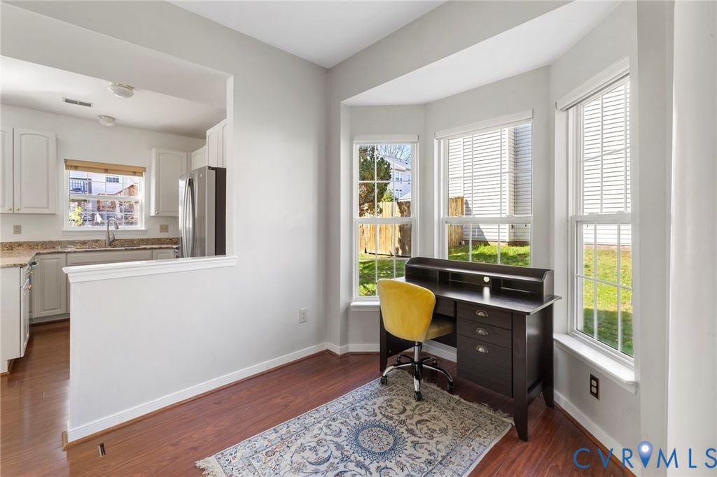 End-unit townhouse in a prime Henrico location"”privacy, light, and convenience all in one. Inside, you'll find a spacious living room and a flexible dining room with a bay window, currently set up as the perfect home office. The kitchen features granite countertops, a new stainless steel refrigerator, stove, and microwave, plus a dishwasher, and opens to a large dining nook with direct access to the rear deck"”ideal for everyday living and easy entertaining. Washer, dryer, and refrigerator all convey. Upstairs offers three bedrooms, including a roomy primary suite with a vaulted ceiling and private bath. Freshly cleaned carpet and neutral décor make this home completely move-in ready. Step outside to a fenced rear yard with a deck and storage shed"”hard-to-find outdoor space for a townhouse. Two assigned parking spaces plus plenty of guest parking add to the appeal. Low maintenance living in a location that keeps you close to everything"”shopping, dining, and major roadways just minutes away.