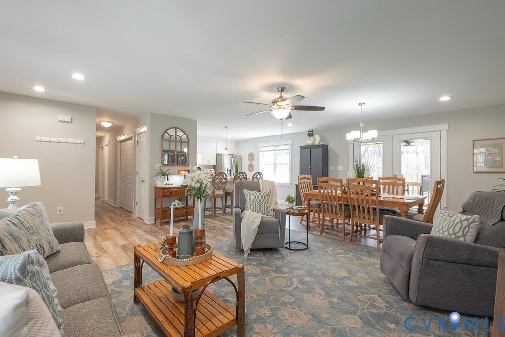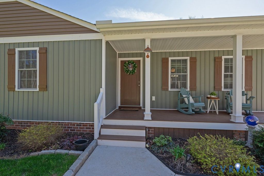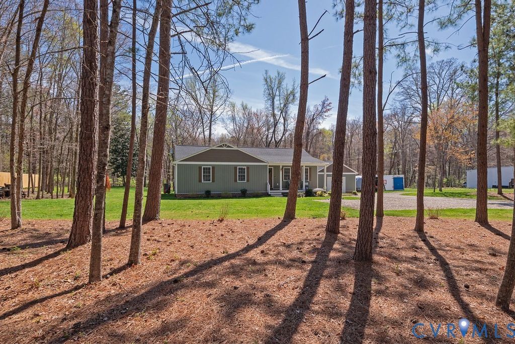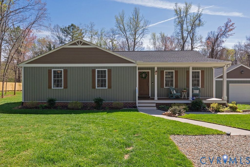 Welcome home to this beautiful better than new three bedroom two bath rancher on a sprawling 1.2+ wooded acre lot, where you can enjoy the peace of country living without the restrictions of an HOA. The home is thoughtfully designed for both comfort and efficiency, featuring a low maintenance exterior, a conditioned crawl space and a spacious front porch with durable Trex decking. Inside, you'll find an extra-large great room perfect for entertaining, with stylish LVP wood flooring flowing throughout the main living areas and cozy carpet in the bedrooms. The bright kitchen is outfitted with crisp white cabinetry, granite counters, gorgeous tile backsplash, and all stainless steel appliances. The stylish primary suite features an en-suite bath with a double vanity and shower with sliding glass door! You'll also find two additional bedrooms and a full hall bath with on trend finishes! Walk through the double French doors to watch the deer go by while you sip your coffee on the screened in porch or enjoy the sunshine on the concrete patio! You'll love pulling in to the oversized detached garage with room for storage and a workshop! With its prime location near Route 60 and Route 711, you're just minutes away from Powhatan's award-winning schools and the best dining and shopping the area has to offer!