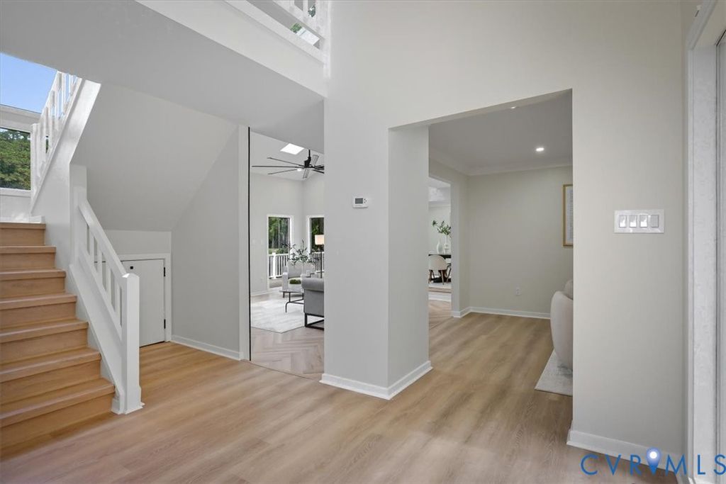 Welcome to your new home in the coveted neighborhood of Brandermill - complete with a golf-course view! This property has been thoughtfully renovated and located on a premium, private cul-de-sac lot with unobstructed views of the 16th hole at Brandermill Golf Course! Enjoy a bright, open floor plan with BRAND-NEW LVP flooring, vaulted ceilings, and stylish finishes throughout. The family room features herringbone flooring, a large accent wall, and new sliding glass doors that showcase the incredible golf course scenery. The renovated kitchen includes granite countertops, custom cabinets, tile backsplash, and stainless-steel appliances, with both formal and casual dining areas. Retreat to the luxurious second-floor primary suite with a vaulted ceiling, two skylights, and a private balcony overlooking the golf course. The spa-like ensuite boasts heated tile floors, double vanity, skylight, and a stunning double shower with rain heads and body sprays. Enjoy the outdoors on your expansive new back deck, perfect for relaxing or entertaining with breathtaking views. With a new roof, maintenance-free siding, updated bathrooms, and access to Brandermill's top-rated amenities, this home offers low-maintenance living in a truly special setting. This isn't just a home"”it's a lifestyle!