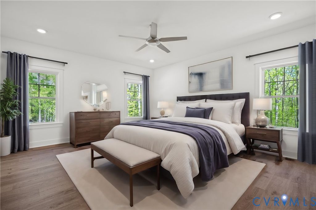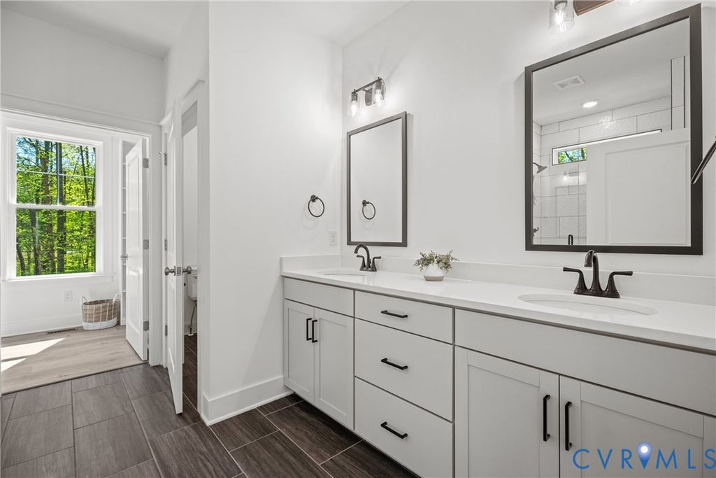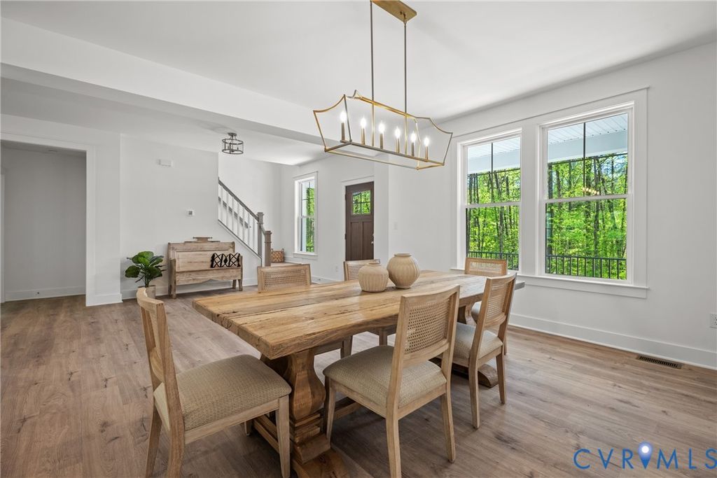 THIS IS A TO BE BUILT HOME. Ask about structural options and homesites. The Leigh has quickly become a favorite among homeowners, offering a perfect blend of open gathering spaces and private retreats. The open-concept layout offers clear sight lines carry your view from foyer through the dining area to the family room and kitchen, creating an expansive, connected feel. The kitchen boasts a large island with extra cabinets, quartz tops, backsplash, a gas cooktop, vent hood, wall oven and cove molding on the cabinets. There is a gas fireplace with slate surround, painted mantel. Adjacent to the kitchen area you'll find a 1st floor suite and full bath off the well-placed hall leading to the 2-car garage, which provides easy access to the laundry room (cabinets included), mudroom with cubbies, and large walk-in pantry. The primary suite occupies a full wing on the main floor. It features a walk-in closet and ensuite with dual vanity, tiled shower and 5' frameless shower door, linen closet, and private water closet. Upstairs, there is a secondary gathering area, three additional bedrooms, and a centrally located full bathroom. Bedroom 4 has an attached ensuite bath. The Leigh can be customized to lifestyle and personal aesthetics. The home is being built in Compass Cove, where luxury living meets water access to the beauty of Lake Anna. Whether this is your forever home or an investment opportunity, Compass Cove is an exciting new neighborhood for both. Photos used for advertising purposes and not of the actual house and may include upgrades not part of the advertised price.