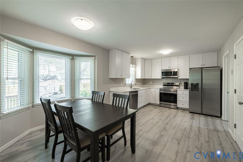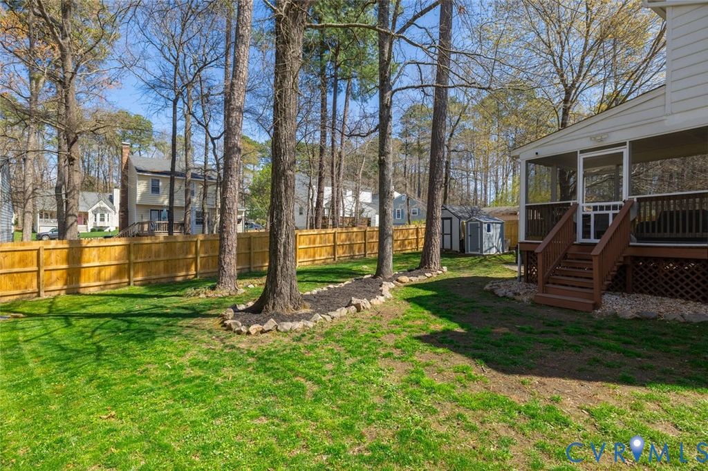 Renovated and well-maintained, this 3 bed, 2.5 bath home just minutes from Short Pump is ready for its new owners! The kitchen features luxury vinyl plank flooring, quartz countertops, newer cabinetry, and stainless steel appliances. Enjoy the eat-in dining space with bay window overlooking the backyard. You'll love the extra storage in the pantry and huge laundry room just off the kitchen! The spacious living room runs from the front of the house to the back and features a wood-burning fireplace! Upstairs you will find two large bedrooms, and renovated full bath. The primary suite rounds out the upstairs with en-suite renovated bathroom, and double custom closets! You will love entertaining in the backyard with large screened-in porch, deck, and patio! Upgrades include: 6ft privacy fence w/ double door gates (2025); vapor barrier in crawl space (2024); All new windows (2024); Downstairs HVAC (2022) Upstairs HVAC (2023); new porch stairs and back deck stairs (2026); new outside doors to screen-in deck (2026); roof (2022).