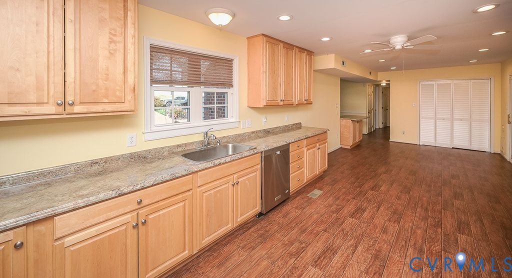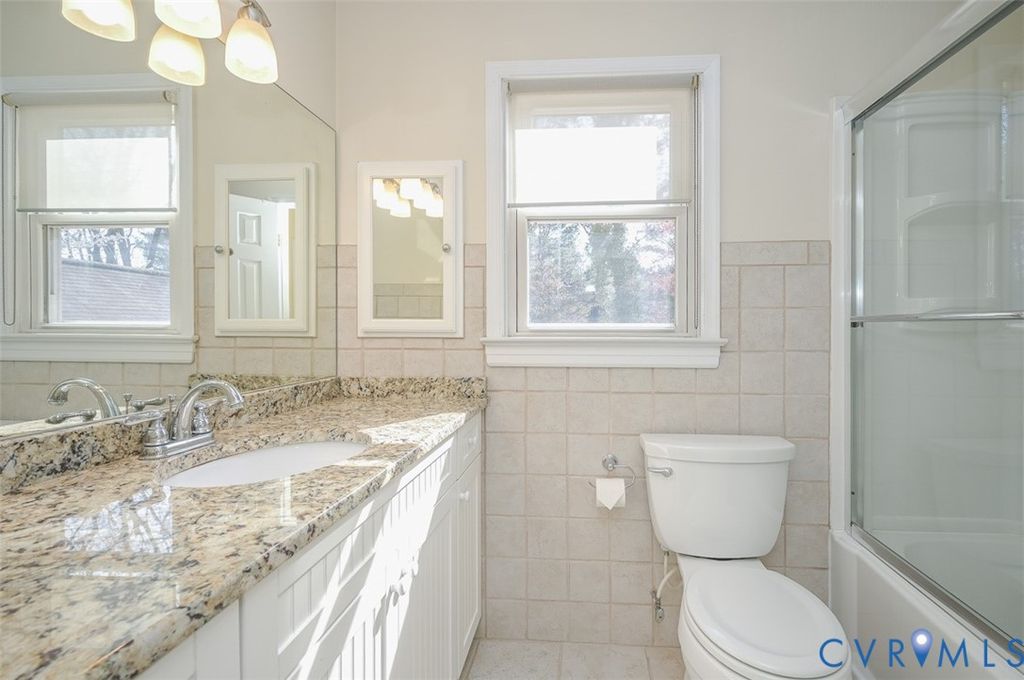 Modified Cape Cod in the West End offering flexible living across all three levels. The main floor features a large eat-in kitchen with breakfast bar and a huge dining area, open to the living room with access to the screened porch - perfect for indoor/outdoor entertaining. This thoughtful floor plan ensures privacy for everyone, with the primary bedroom tucked away in the rear of the home, complete with a five-piece bath, granite counter, a wall of closets, and a walk-in closet. Two additional bedrooms are located on the opposite side, sharing a fully updated bath with shower, with two other bright and airy bedrooms upstairs which share a fully updated hall bath - this level could could easily serves as an ideal guest/roommate space or caregiver level, if needed. There's also a walk-in closet on the second level providing additional storage space. The finished basement offers a large room with built-in book shelves with its own private entrance, making it well-suited for a home business, teen hangout, homeschool classroom, studio, or potential in-law suite. This separate access also creates an ideal option for a roommate situation or a college student needing their own space. Of course, it could also be the ideal man cave (pool table and TV convey). An additional room off the rec area could serve as a home office, craft room, or large storage space, with the potential to be converted into a future bathroom. Outside, enjoy multiple gathering areas including a covered screened porch out back and a front patio, along with a well-maintained yard supported by irrigation and perennial plantings. The paved driveway provides ample parking. EXTRA: whole house generator, vinyl siding, new instant hot water heater, all appliances convey, irrigation, beautifully landscaped w/mature landscaping, bulbs and perennials, 2 under-stairs closets for extra storage, built-in ironing board, 2 built-in safes, walking distance to middle school, a short drive to Deep Run Park, restaurants, medical services, & close proximity to I-64.
