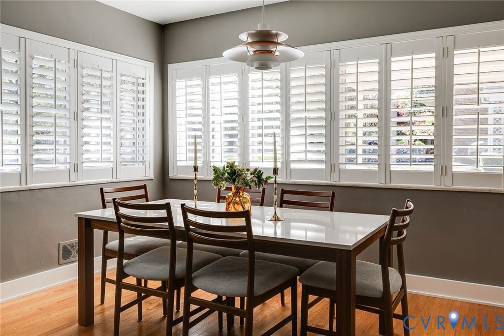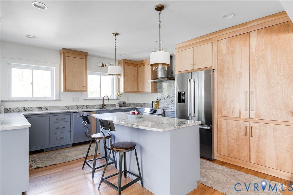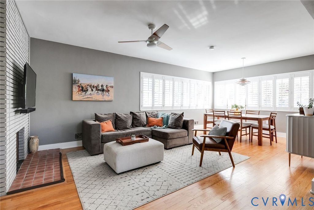 Discover the very picture of midcentury design thoughtfully reimagined to provide every modern amenity in the heart of Willow Lawn, just inside the Henrico County border. This brick ranch with a finished walk out basement features original refinished hardwood floors, new windows, HVAC (2024 & 2025), water heater (2025), sump pump, electrical panel (2022) and fresh paint throughout. A statement fireplace serves as a stunning focal point from the open kitchen, living and dining room. The kitchen is a showpiece with custom Oxford blue and natural maple cabinetry with interior and under mount lighting, stainless Bosh appliances, induction cooking, Quartzite counters with a large central island and new but period appropriate lighting. The new owner will appreciate all of the thoughtful detail such as the solid core doors, granite window sills, intricate wainscoting and shiplap, new stair tresses, and gutter guards. The all season sunroom with French doors leads out to the Trex deck with retractable awning and fully fenced back yard. Downstairs provides a fully finished media lounge with new carpet, office, renovated half bathroom, laundry room and workshop with new vinyl flooring. This well laid out home is a dream come true. There's nothing left to do but move in and start your new life within blocks from Willow Lawn, Libby/Grove and Carytown's best shopping, groceries and restaurants, while enjoying Henrico County schools and taxes!