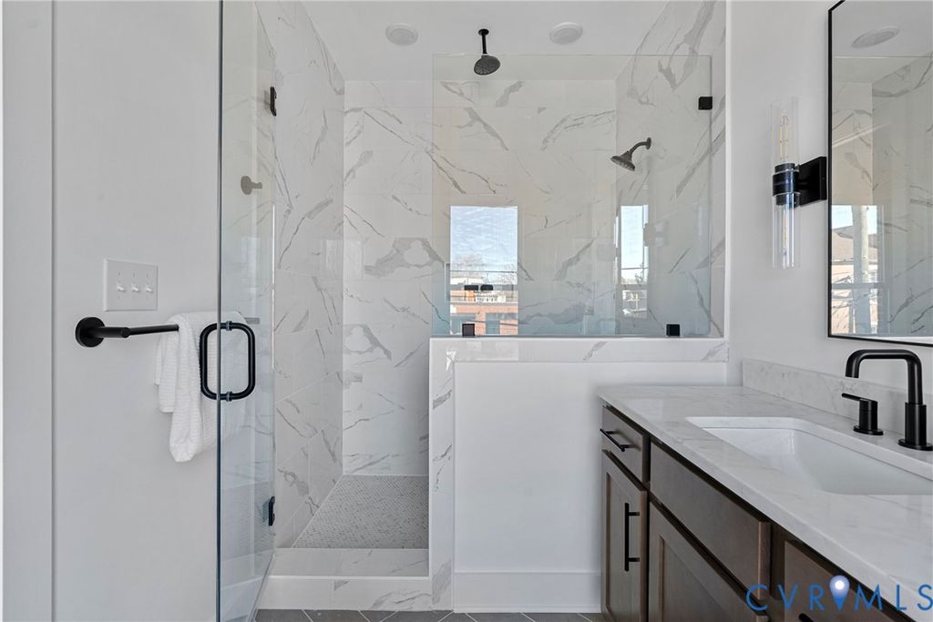 Set against the historic charm of Church Hill, 2525 M St is a new construction home offering an unbeatable location! From the moment you arrive, the clean architectural lines, modern façade, and inviting front porch create a striking first impression and hint at the level of craftsmanship found throughout. Inside, the main level is both open and refined, featuring 10' ceilings, recessed lighting, and rich hardwood floors. The sun-filled living room flows straight into the dining area and a thoughtfully designed kitchen featuring custom soft-close cabinetry with dovetail construction, Quartz countertops, high-end stainless appliances with gas cooking and a microwave drawer, a large island with pendant lighting, and two spacious pantries with wood shelving. Expansive glass doors flood the space with natural light and open to a generous rear deck. A stylish powder room with wainscoting and a Quartz vanity completes the level. The second floor offers two well-appointed primary suites. The rear suite features dual closets and a private ensuite, while the front bedroom boasts an oversized walk-in closet and a beautifully finished bath with a Quartz vanity and a frameless walk-in shower wrapped in designer tile. Upstairs, the third level opens to a bright loft-style living area with a custom dry bar and oversized sliding doors that extend the living space onto a stunning terrace with city views. A third primary suite with a Quartz-topped ensuite completes this level. A rare find in Church Hill, the finished BASEMENT offers tall ceilings, recessed lighting, and a full bath"”ideal for a media room, guest suite, or additional bedroom. The two-car garage adds exceptional convenience and includes a dedicated electrical panel and 220V EV outlet. Just steps from neighborhood cafés, incredible restaurants, parks, and local favorites, this home delivers a seamless blend of modern luxury and walkable city living.