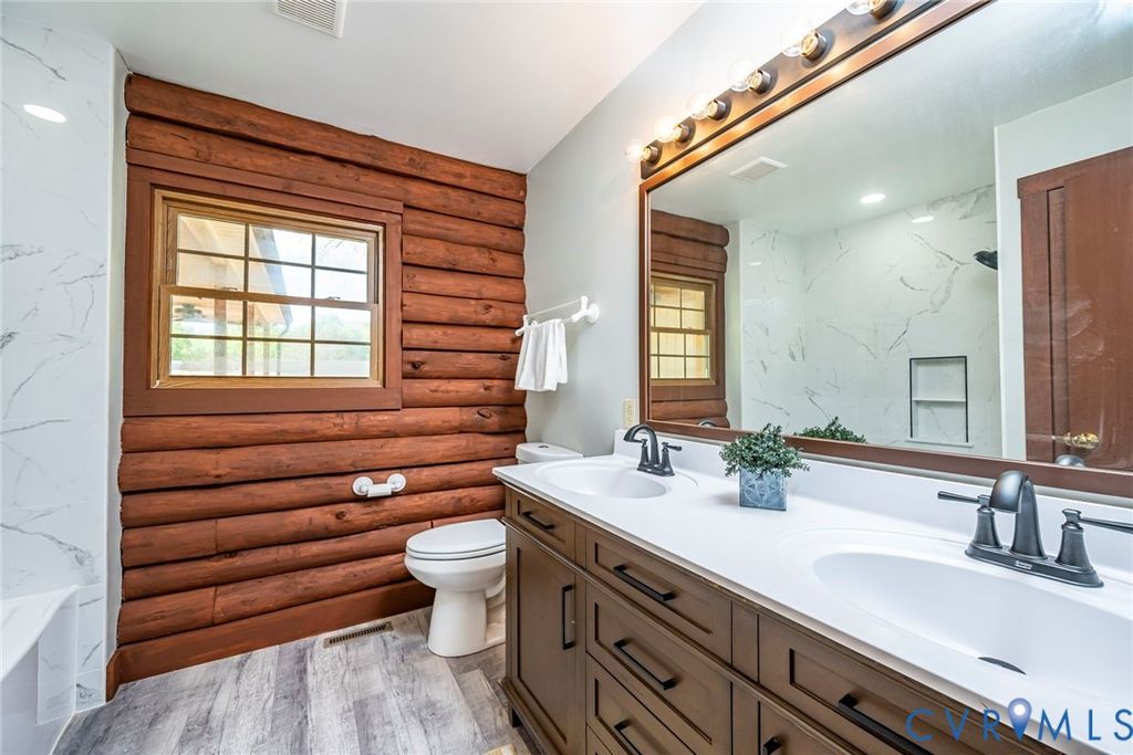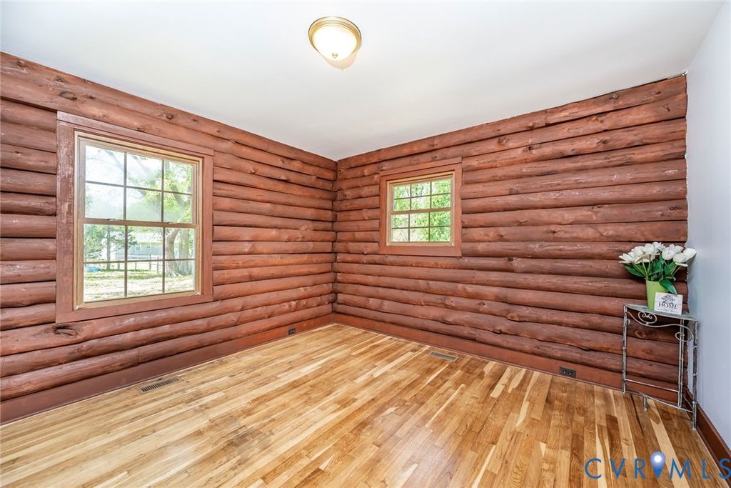 Welcome to your next home - a charming 3-bedroom, 2 full bath log cabin home with 1,901 square feet of warm, open living space. This inviting home offers a perfect blend of rustic charm and everyday comfort. Step outside and enjoy peaceful outdoor living on the wraparound rear deck or cool off in the shade of the side porch, complete with two ceiling fans for those warmer days. Inside, the spacious family room welcomes you through rear French doors, featuring a convenient closet, full bath, and a kitchen pass-through window - perfect for entertaining or casual gatherings. While the kitchen is more compact in size, it's thoughtfully laid out for efficient use and easy access to the main living areas. At the front of the home, the cozy living room features a classic brick wood-burning fireplace, ample recessed lighting, and a side entrance that brings you right into the kitchen area - perfect for unloading groceries with ease. The 3 bedrooms offer a quiet retreat, complete with a full hallway bath that includes a double vanity and a tiled tub/shower combination. Enjoy the best of both worlds - a quiet rural setting with the convenience of nearby shopping, dining, and a quick interstate access. Out back you will find a new privacy fence and love the oversized paved parking area with room for multiple vehicles or activities/projects. No HOA. Come see what makes this home special - it's ready for you to move in and make it your own, all under a brand-NEW ROOF!