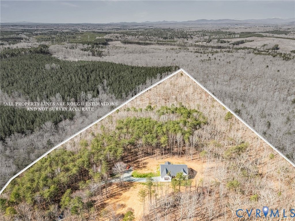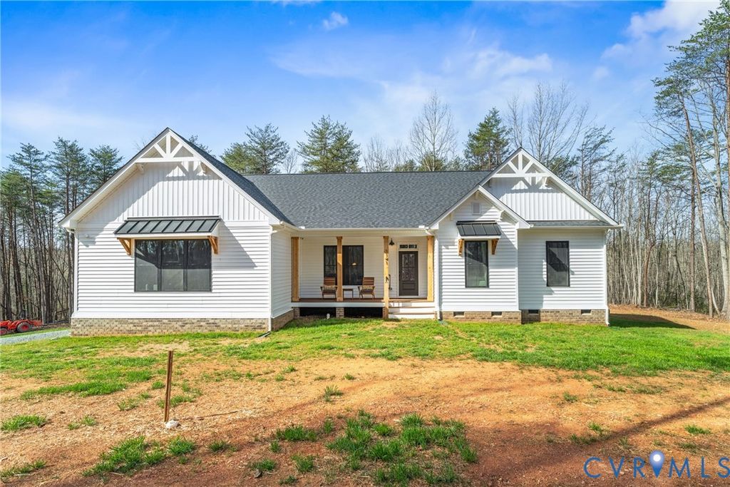 Welcome to 3141 Polecat Creek Ln. A private and secluded escape on over 15 acres located in Scottsville on the outskirts of Charlottesville. The 2025 built ranch style home boasts 4 bedrooms, 2.5 bathrooms, and nearly 2,400 square feet of living space. Upon entry from the Trex deck covered front porch, you will be greeted by LVP flooring covering the entirety of the home. The main hallway leads into the spacious open concept style cathedral ceiling living room and kitchen. The kitchen features quartz countertops, stainless steel appliances, an island, pantry closet, and dining area with access to the rear deck. Off of the kitchen is the formal dining room enhanced by the tray ceiling and laundry room leading out to the attached 2-car garage. The primary bedroom resides on the left side of the home separate from the remaining bedrooms, and is equipped with its own tray ceiling, walk-in closet, and full en-suite bathroom. On the opposite end of the home are the remaining 3 bedrooms and a full hall bathroom, along with a spare office/rec room that could serve as a 5th bedroom if needed. The home comes with a transferable warranty and includes a whole house generator serviced by a propane tank that includes a dual regulator for grilling capability. A natural stream cuts through the rear of the lot creating scenic and tranquil views. Schedule your tour to come see what this property has in store for you!